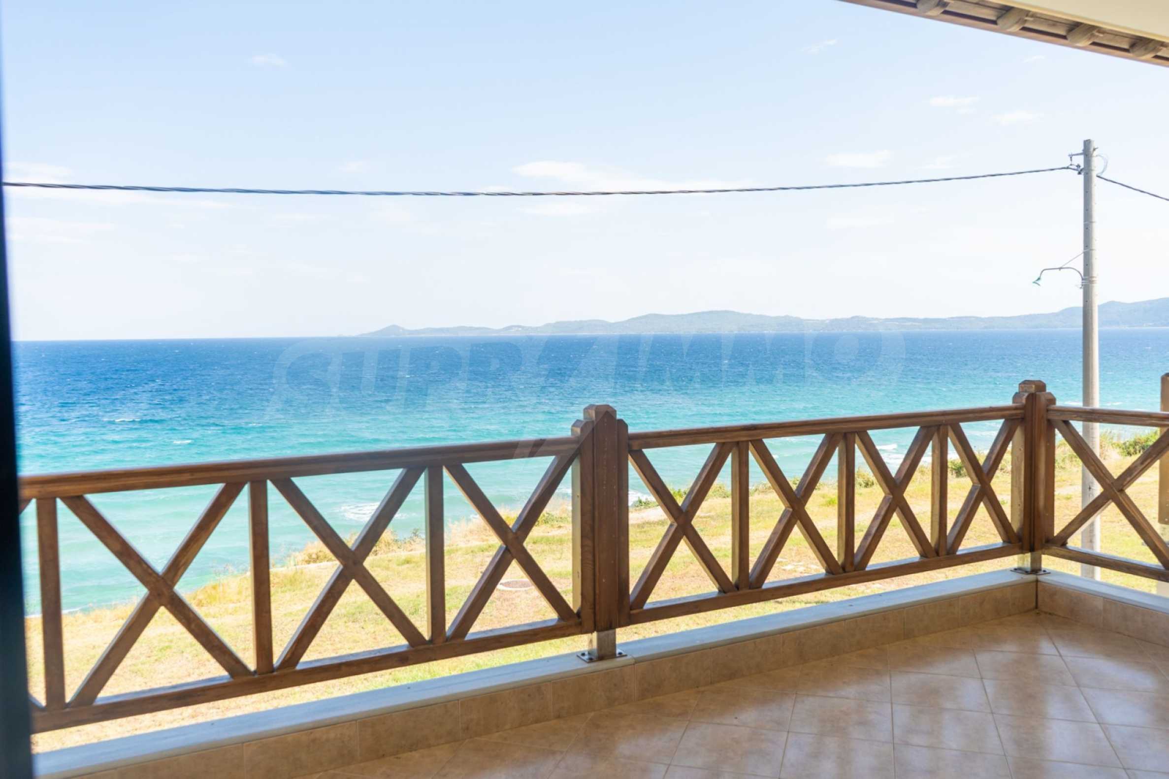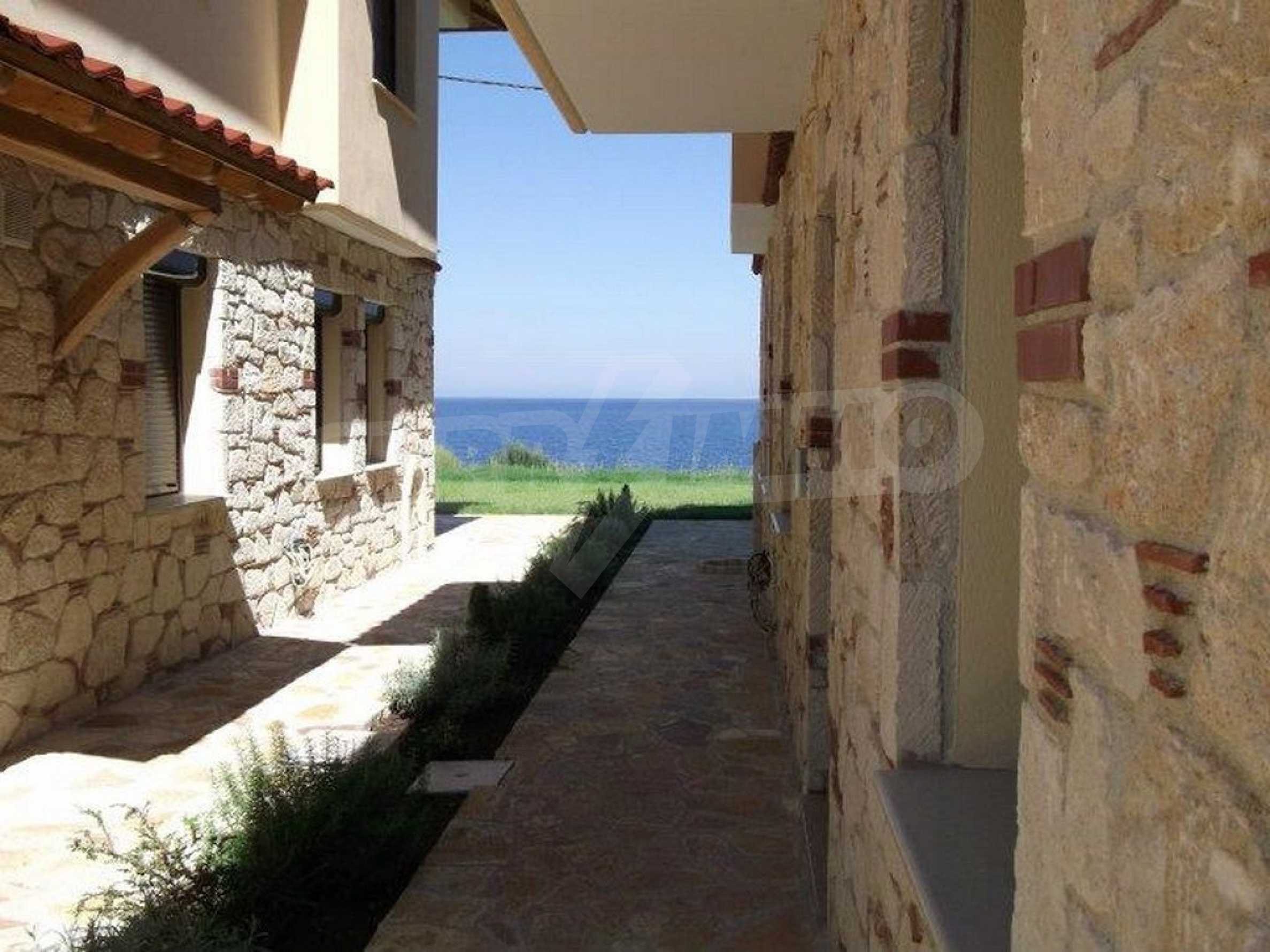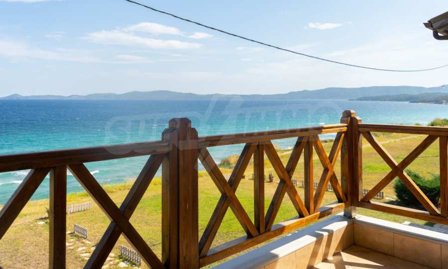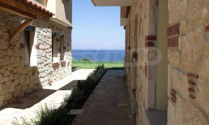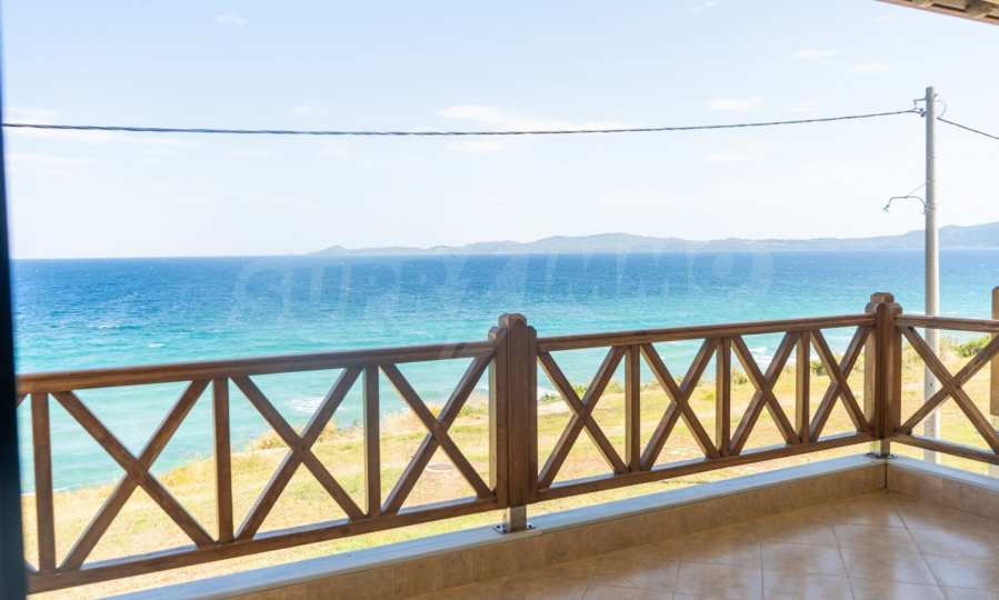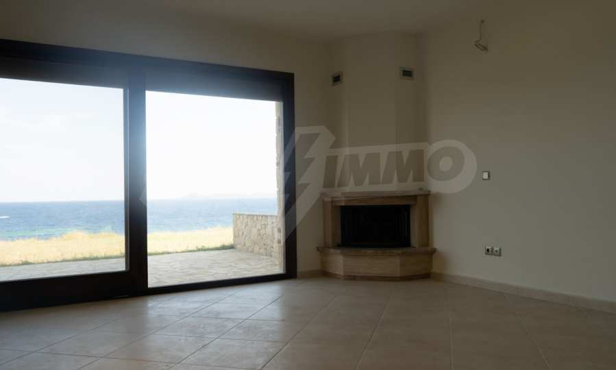 Новопостроено жилище в Неа Рода, Атон, Халкидики. Селото е разположено в югоизточната част на Халкидическия полуостров, в най-тясната част на провлака на Света гора, на 6 км югоизточно от Йерисос. Имотът се простира върху 130 кв.м., на първа линия от плажа (10 метра), с изключителна гледка към морето.