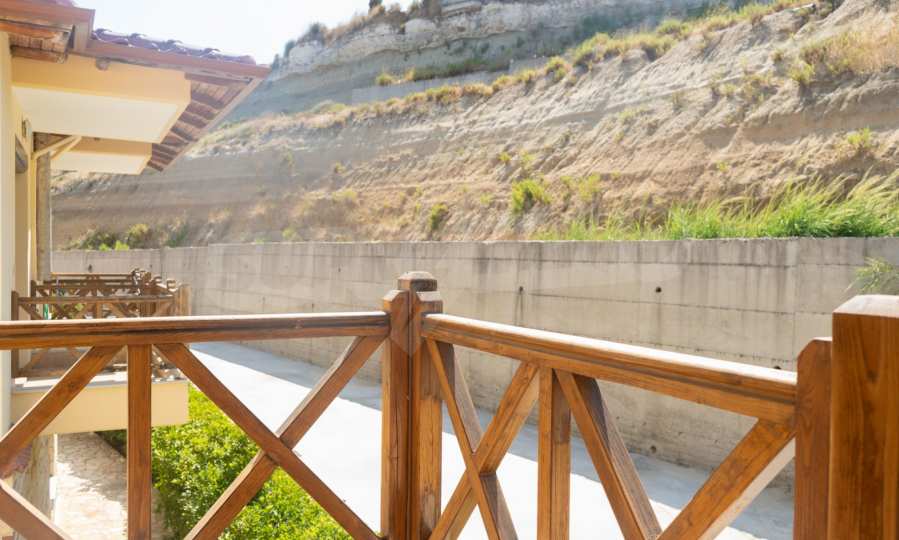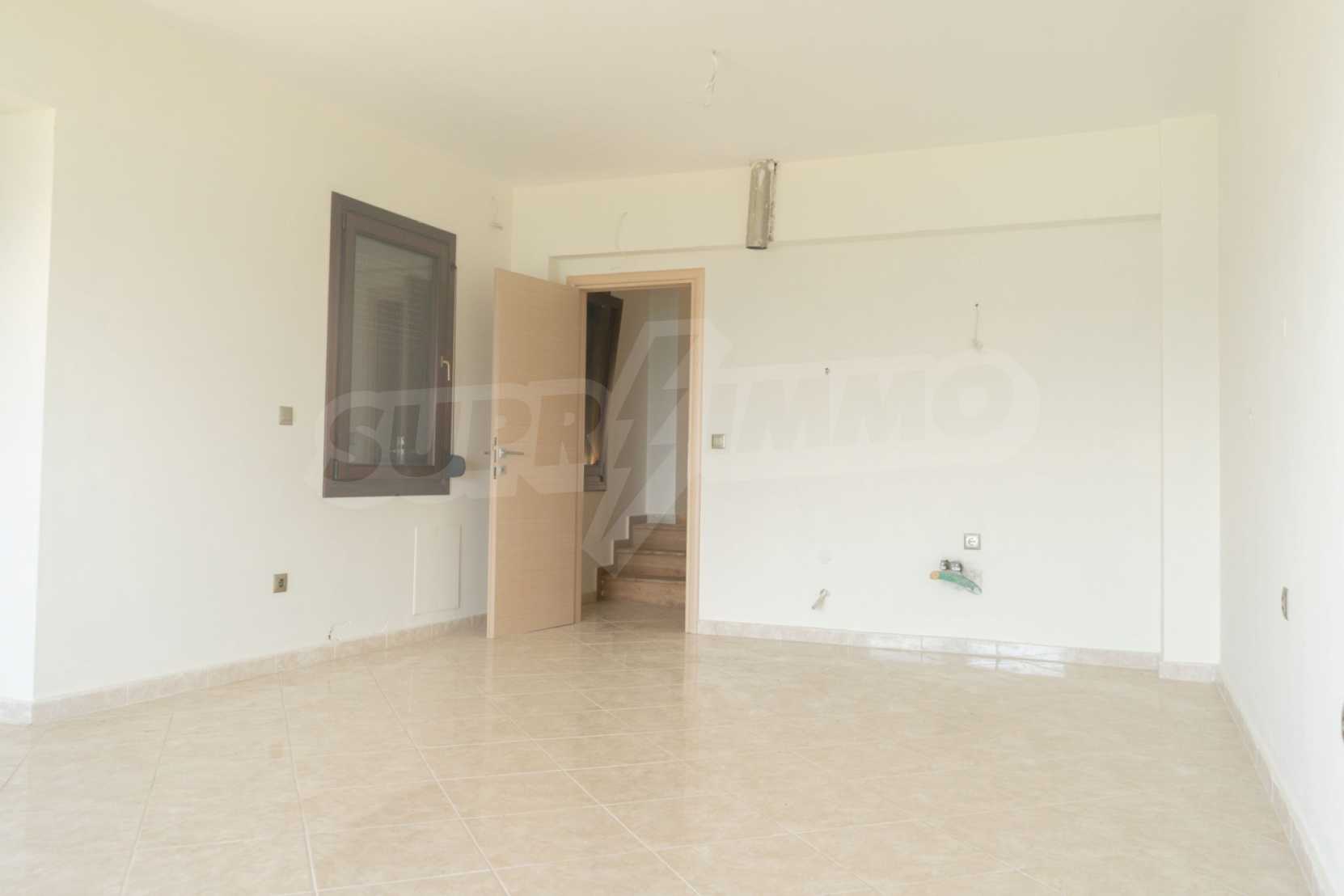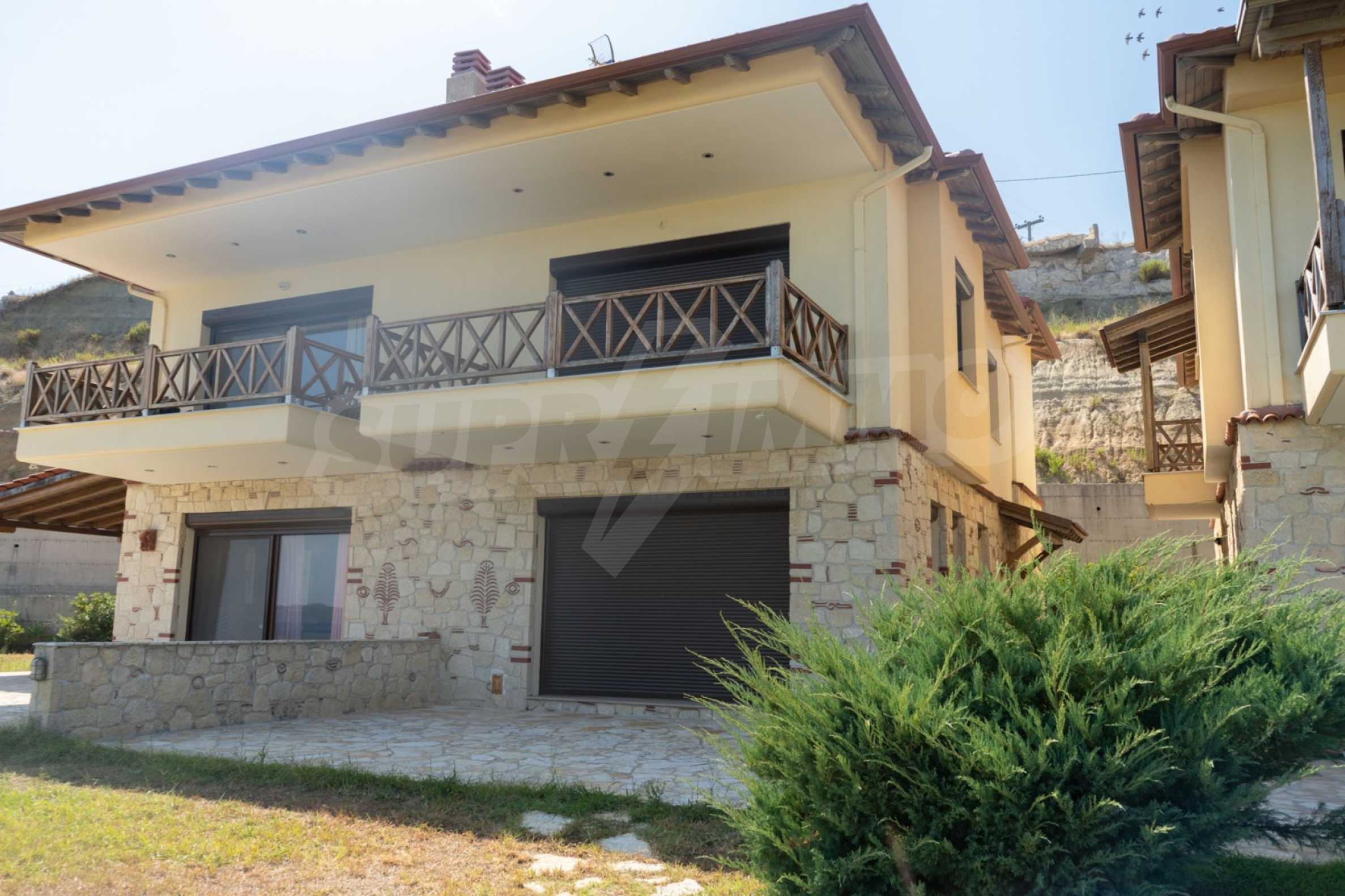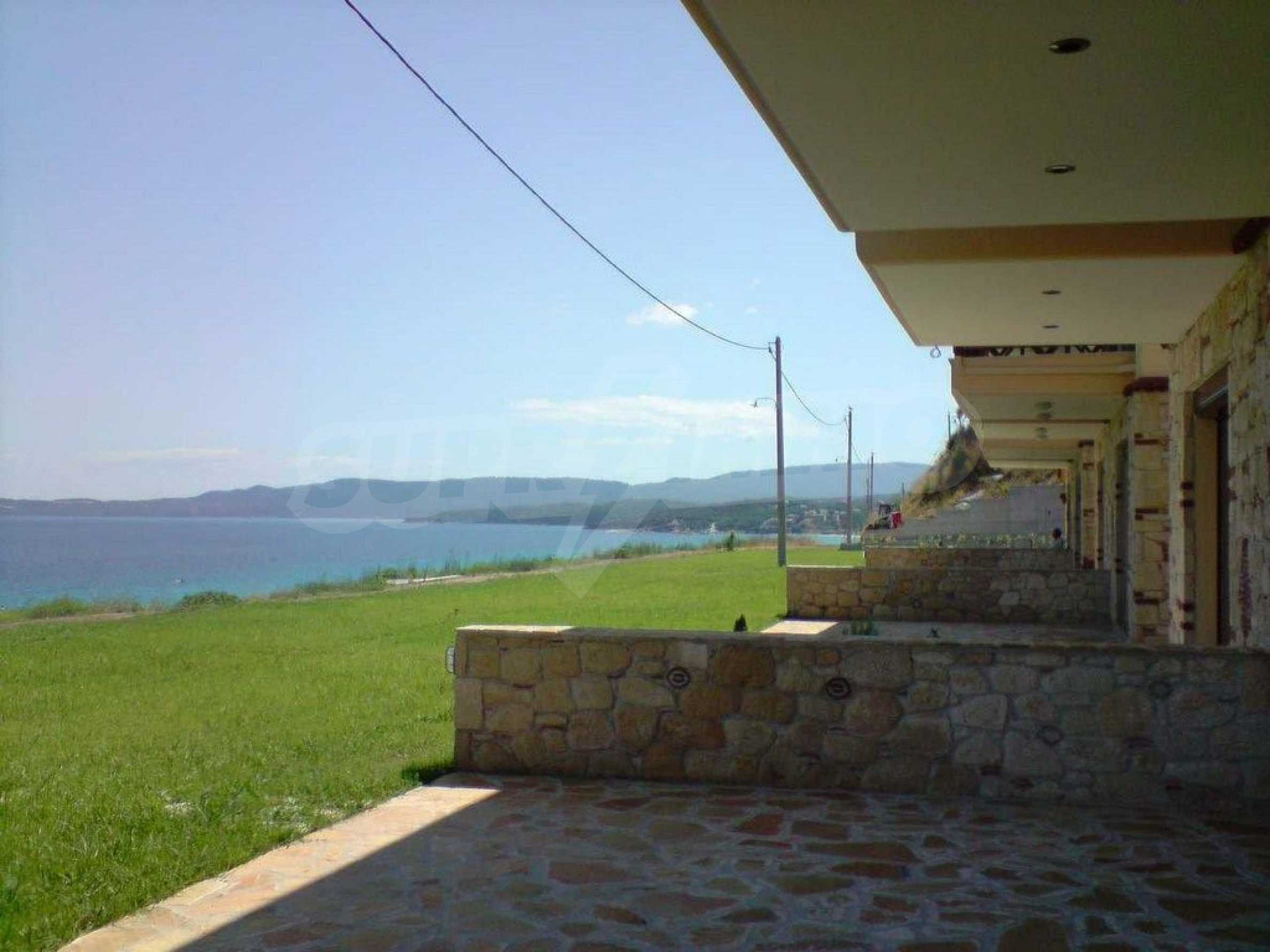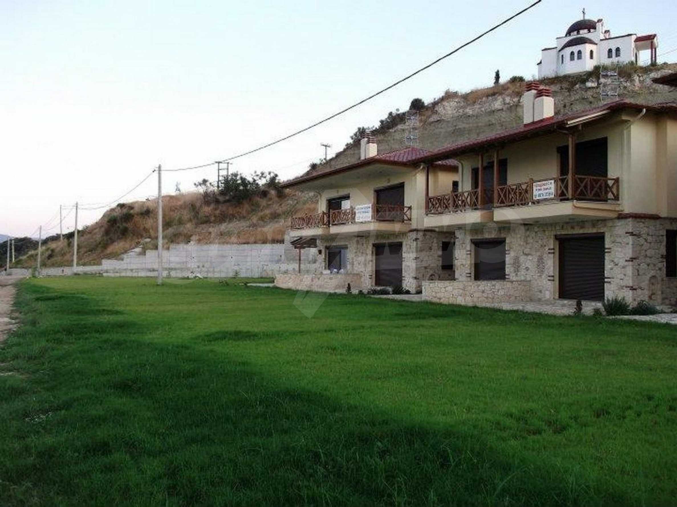 Новопостроено жилище в Неа Рода, Атон, Халкидики. Селото е разположено в югоизточната част на Халкидическия полуостров, в най-тясната част на провлака на Света гора, на 6 км югоизточно от Йерисос. Имотът се простира върху 130 кв.м., на първа линия от плажа (10 метра), с изключителна гледка към морето.