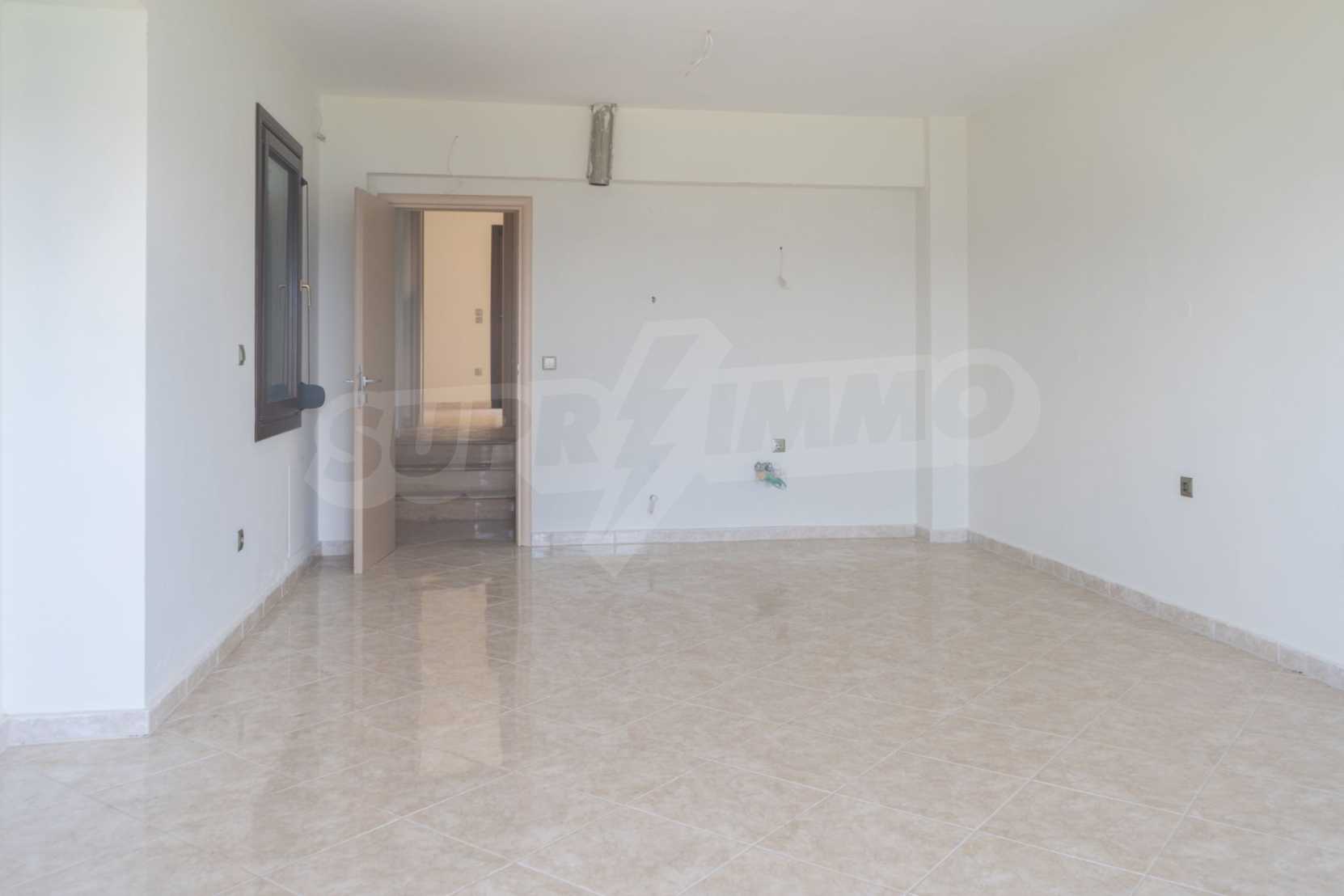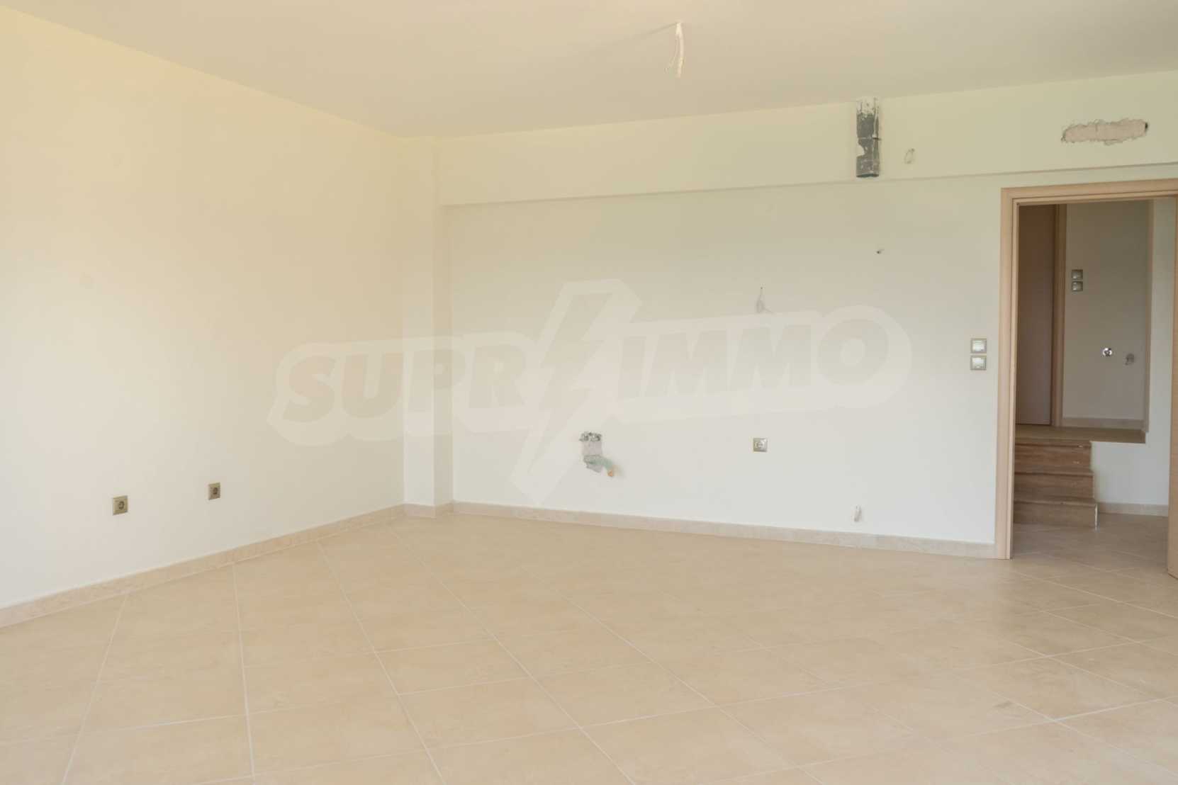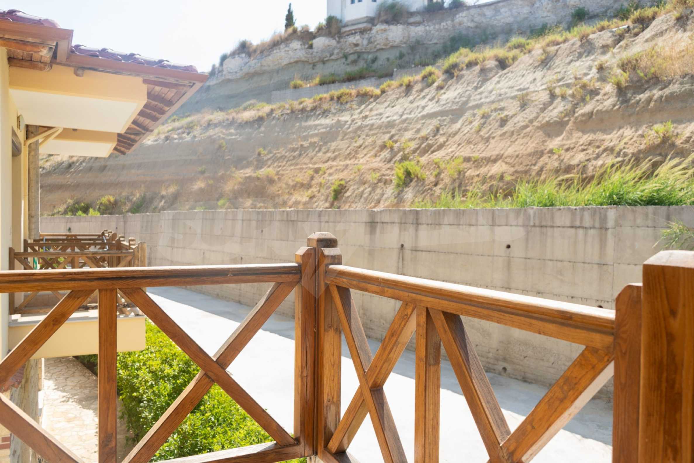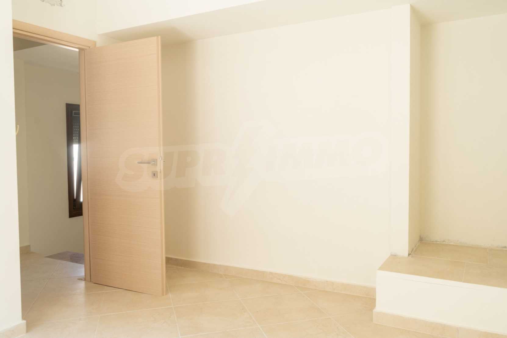 Новопостроено жилище в Неа Рода, Атон, Халкидики. Селото е разположено в югоизточната част на Халкидическия полуостров, в най-тясната част на провлака на Света гора, на 6 км югоизточно от Йерисос. Имотът се простира върху 130 кв.м., на първа линия от плажа (10 метра), с изключителна гледка към морето.