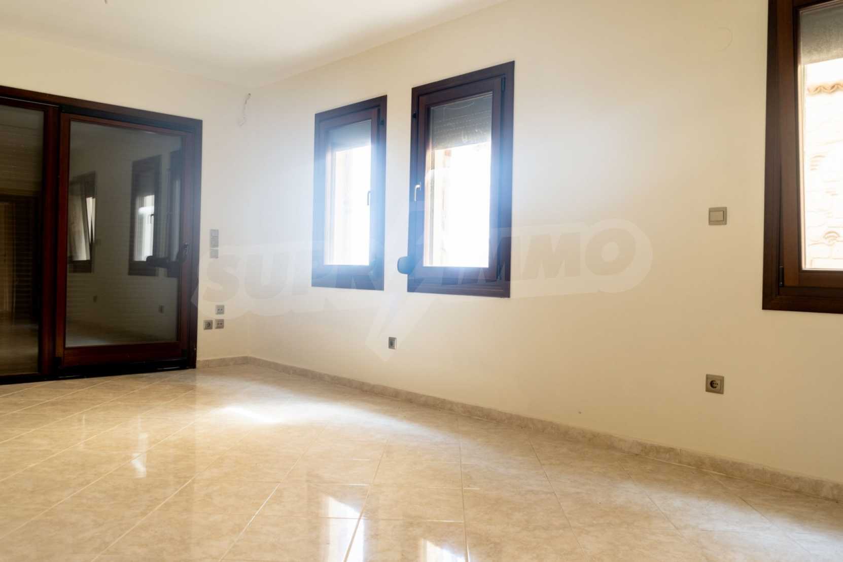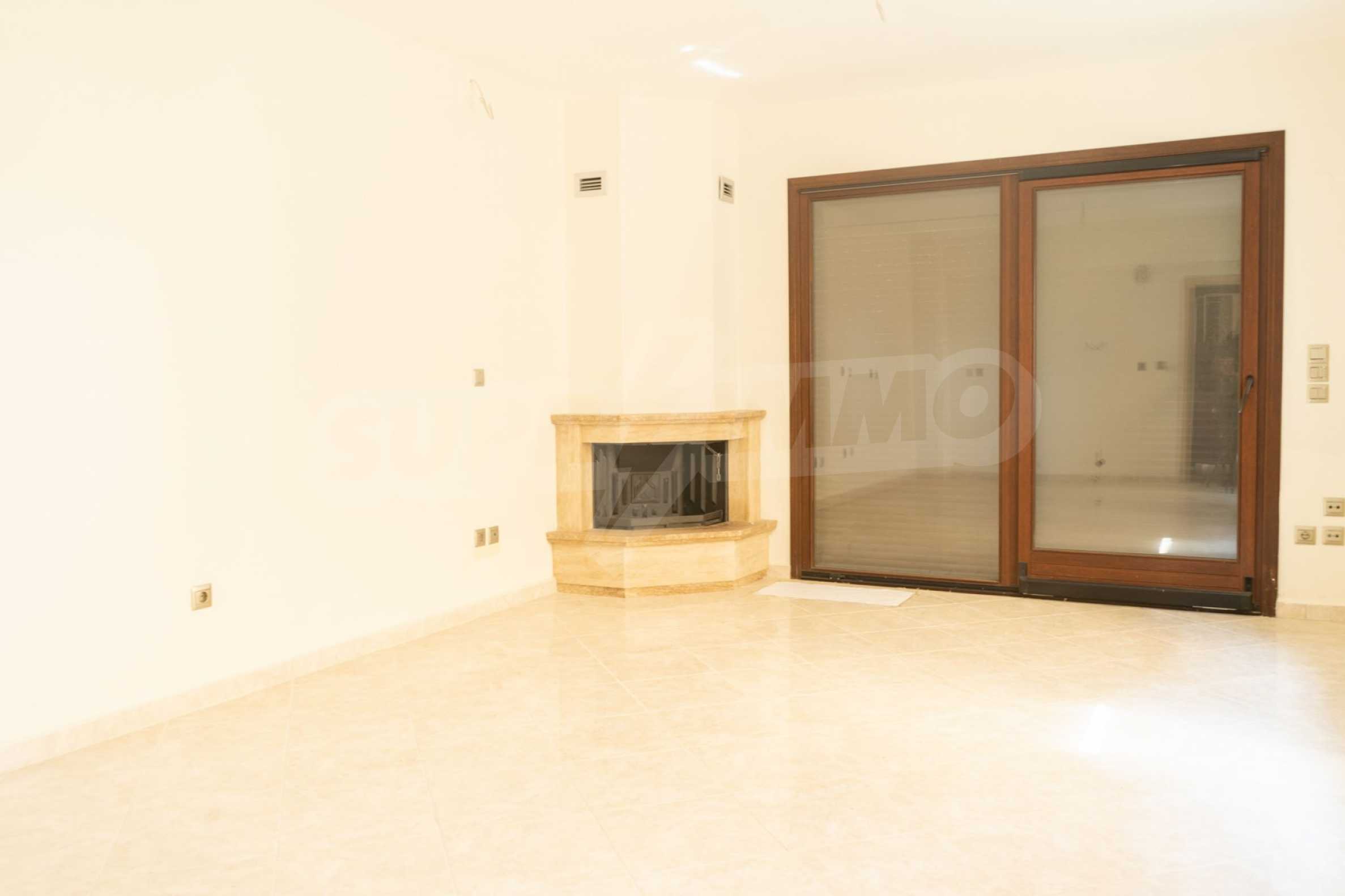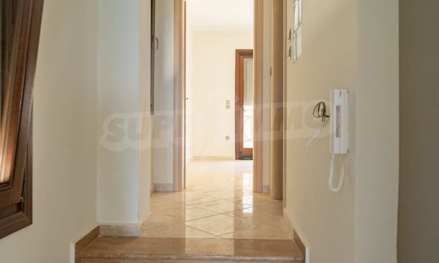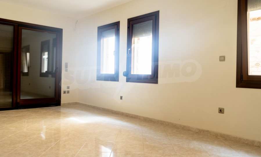 Състои се от три спални, хол, кухня и две бани. Подовете са с гранитни плочки, дограмите са дървени. Луксозното жилище предлага и други модерни удобства – воден масаж, джакузи, камина и просторни веранди. В допълнение имотът е ограден от 120 кв.м. градина, добре поддържана с автоматично напояване. Разполага с едно паркомясто.