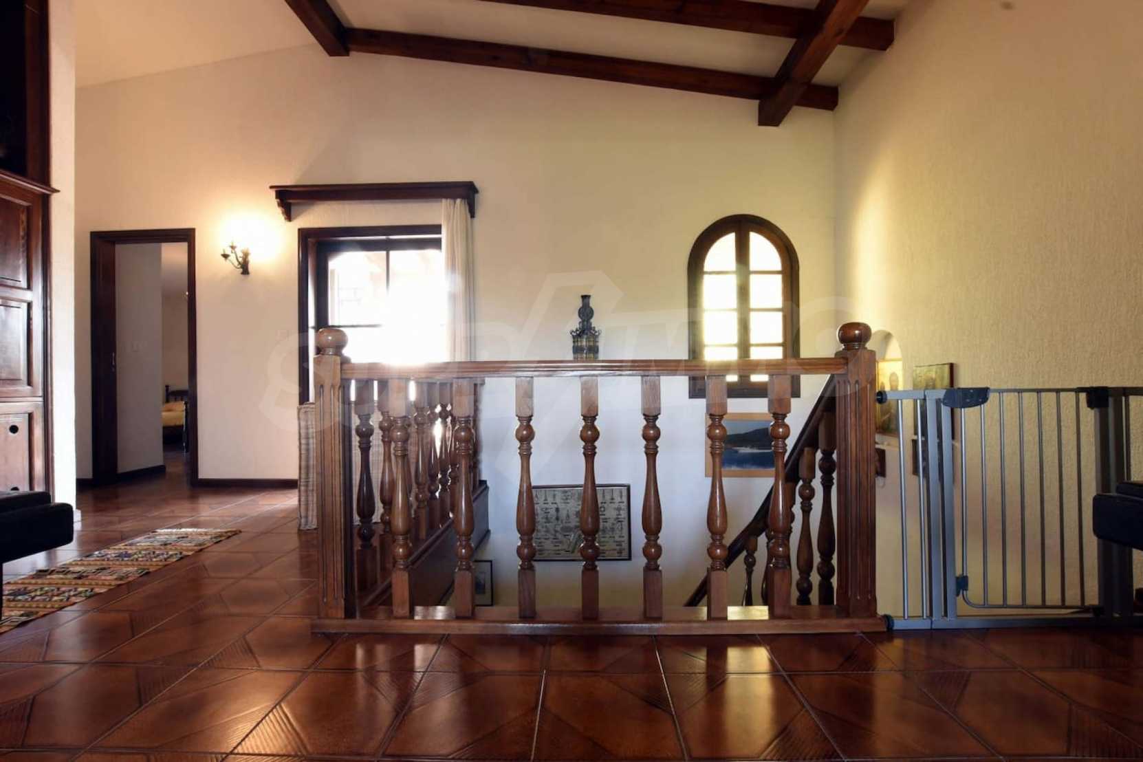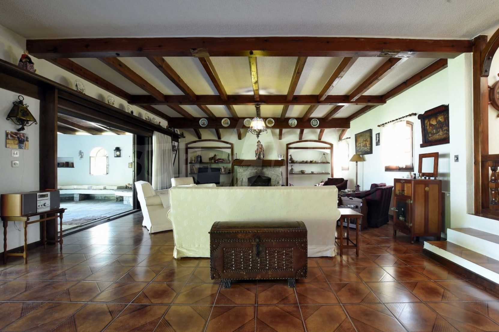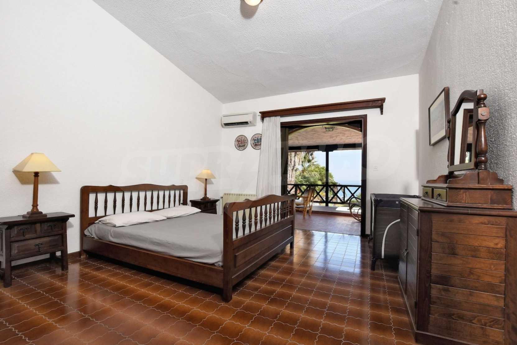 Предлагаме на вашето внимание вилa с площ 400 кв.м. Година на строителство: 2000. Отоплението се осъществява посредством камина и локално парно. Има климатизация. Имотът се предлага със следната степен на завършеност: блиндирана входна врата и дървена дограма. По отношение на мебели и оборудване налични са: бойлер електрически и климатик. Имотът е снабден с канализация. Важно е да се отбележи, че имотът разполага с: балкон, баня с тоалетна, килер, паркинг и сот. От имота се разкрива гледка към морето.