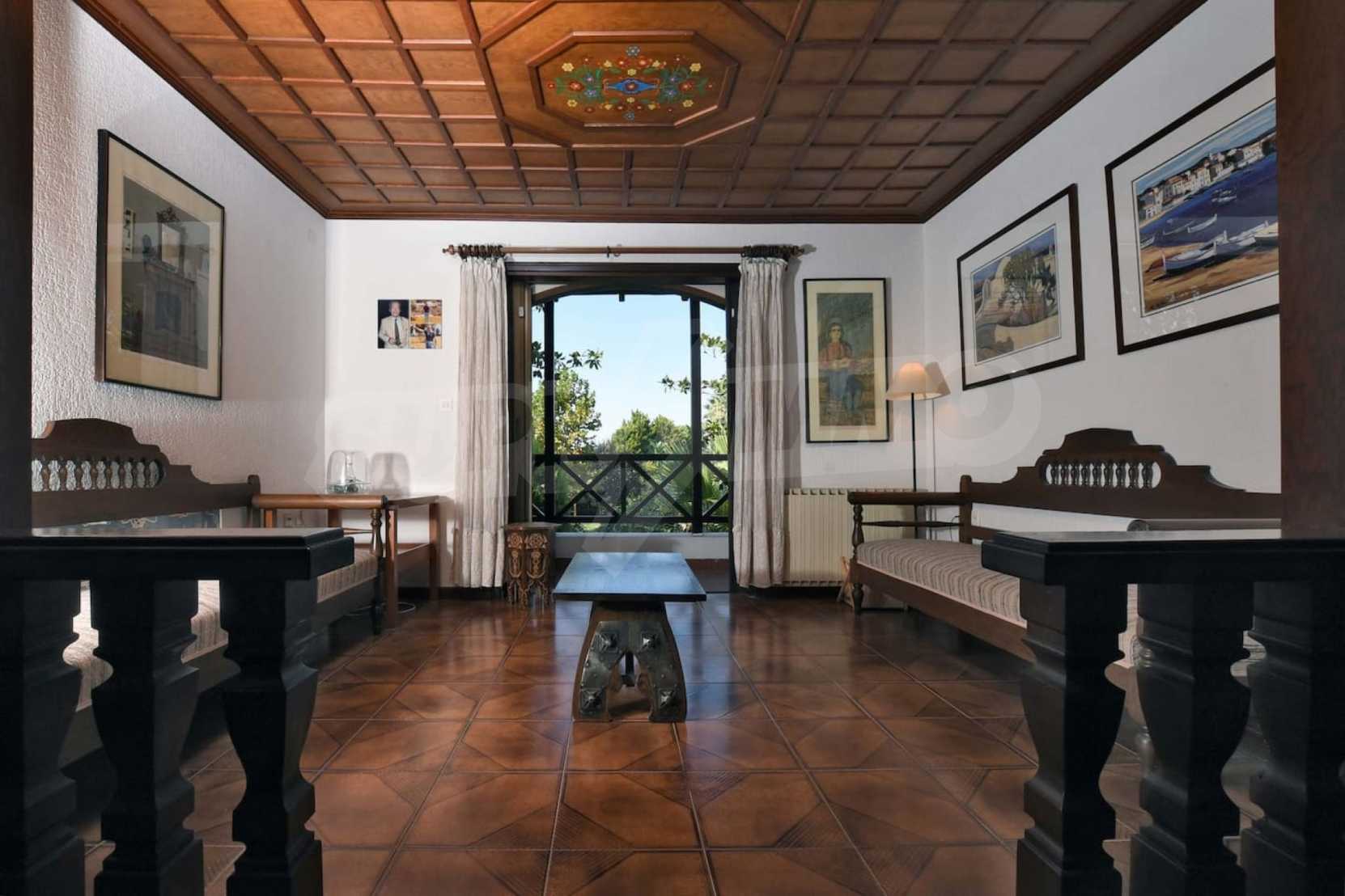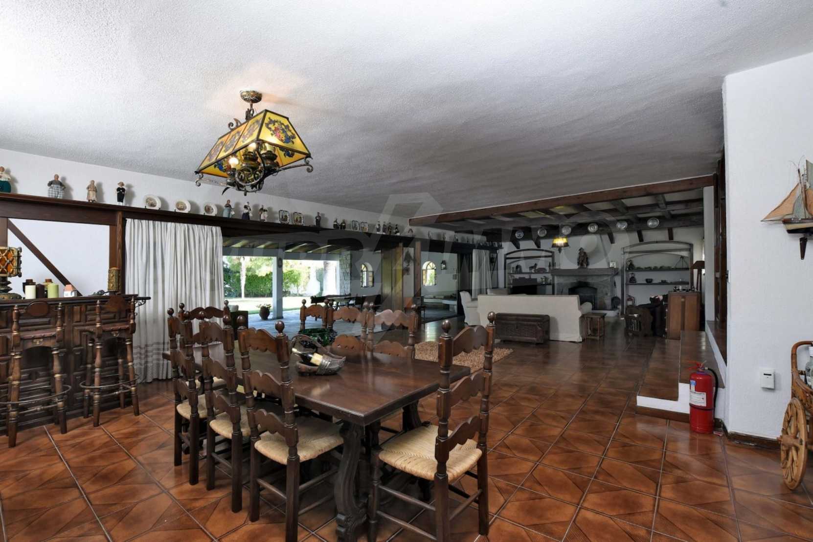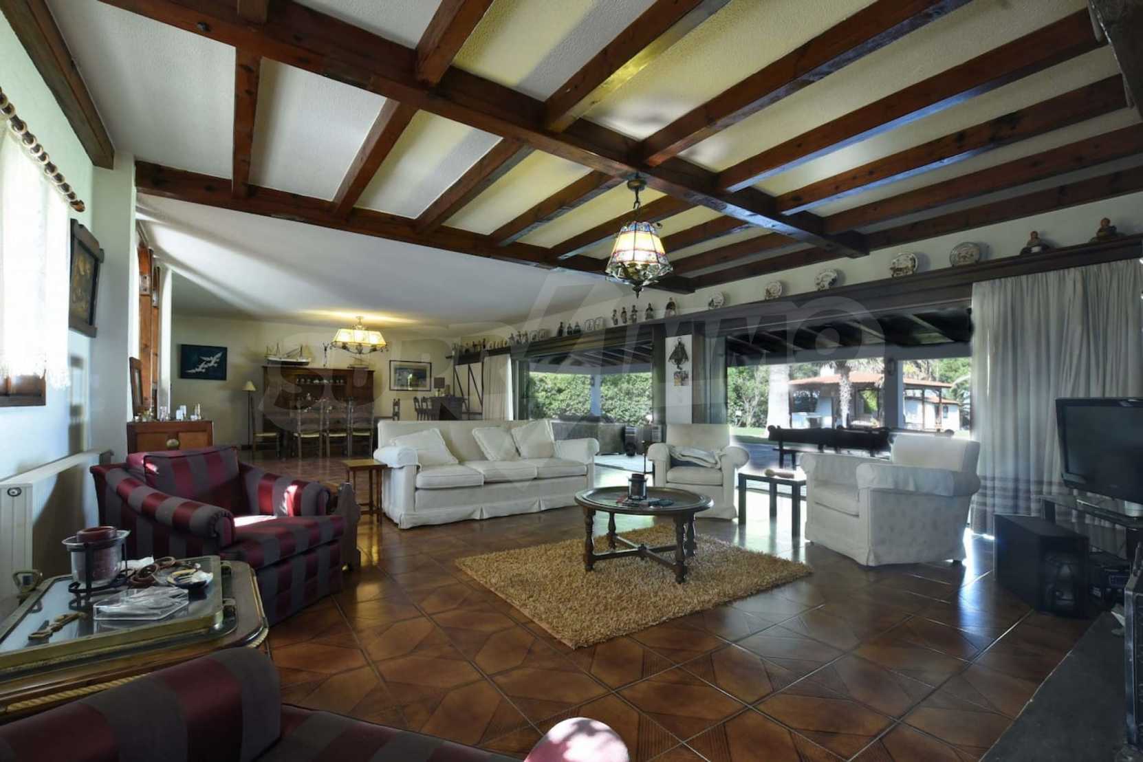 Предлагаме на вашето внимание вилa с площ 400 кв.м. Година на строителство: 2000. Отоплението се осъществява посредством камина и локално парно. Има климатизация. Имотът се предлага със следната степен на завършеност: блиндирана входна врата и дървена дограма. По отношение на мебели и оборудване налични са: бойлер електрически и климатик. Имотът е снабден с канализация. Важно е да се отбележи, че имотът разполага с: балкон, баня с тоалетна, килер, паркинг и сот. От имота се разкрива гледка към морето.