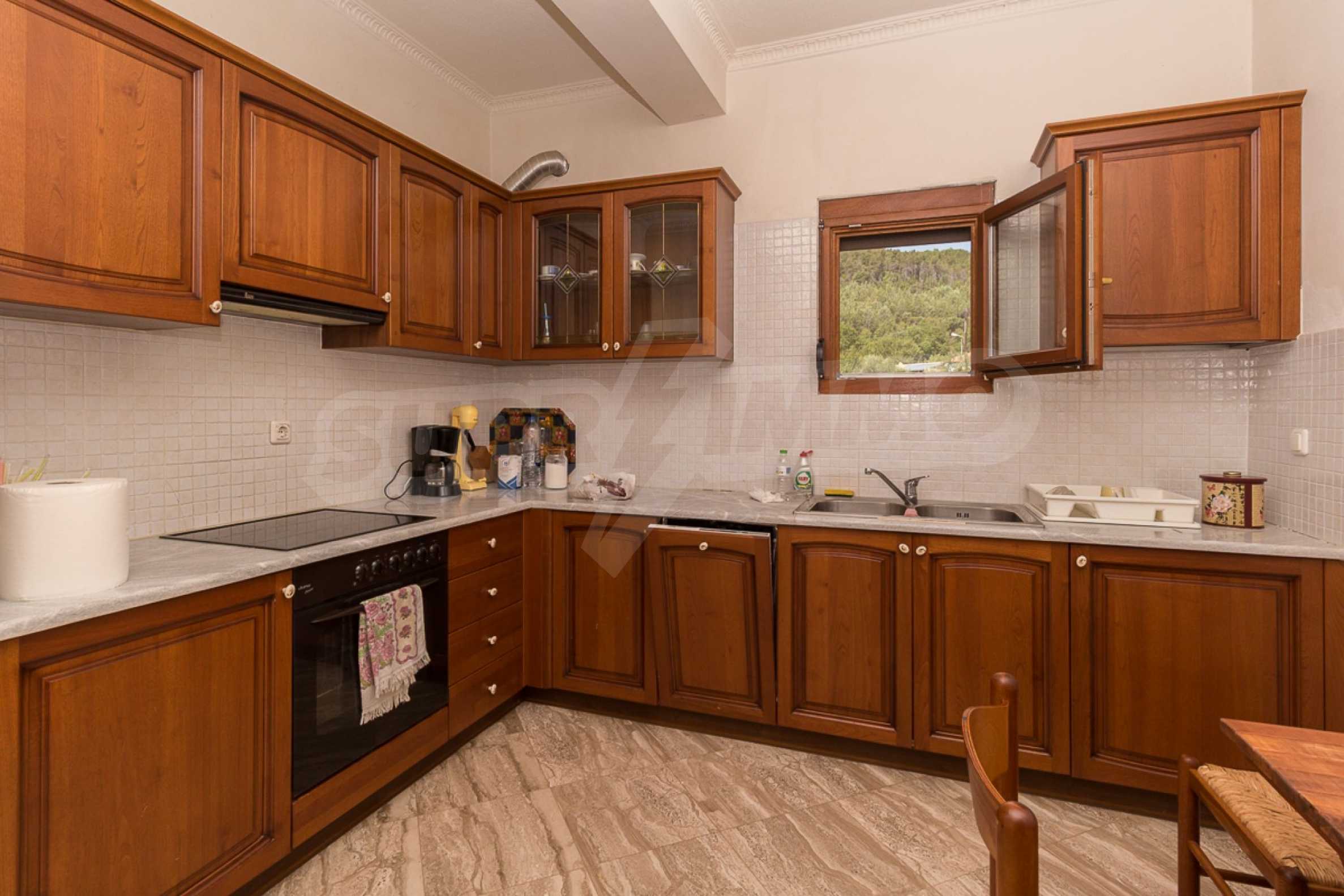 Предлагаме на вашето внимание къща с площ 240 кв.м. Година на строителство: 2002. Отоплението се осъществява посредством камина и локално парно. Има климатизация. Имотът се предлага със следната степен на завършеност: блиндирана входна врата и дървена дограма. По отношение на мебели и оборудване налични са: бойлер електрически, вградена кухня и климатик. Имотът е снабден с септична яма. Важно е да се отбележи, че имотът разполага с: балкон, баня с тоалетна, паркинг и сот. От имота се разкрива гледка към морето.