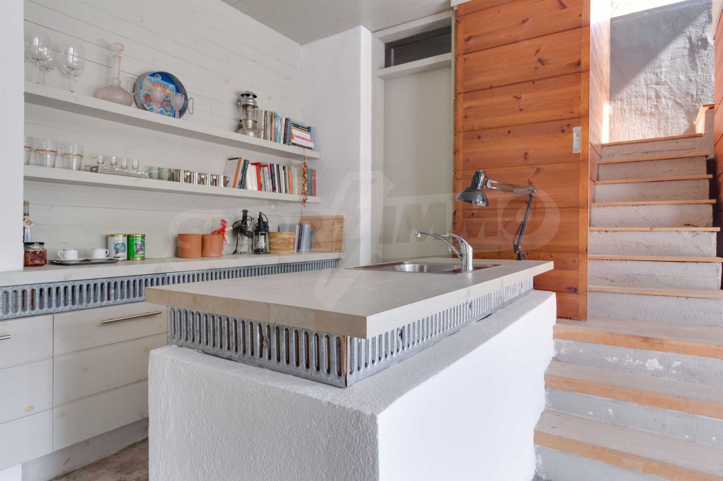 Предлагаме на вашето внимание вилa с площ 200 кв.м. Година на строителство: 1998. Отоплението се осъществява посредством камина и локално парно. Имотът е снабден с септична яма. Важно е да се отбележи, че имотът разполага с: балкон, баня с тоалетна, килер, паркинг и басейн. От имота се разкрива гледка към морето.