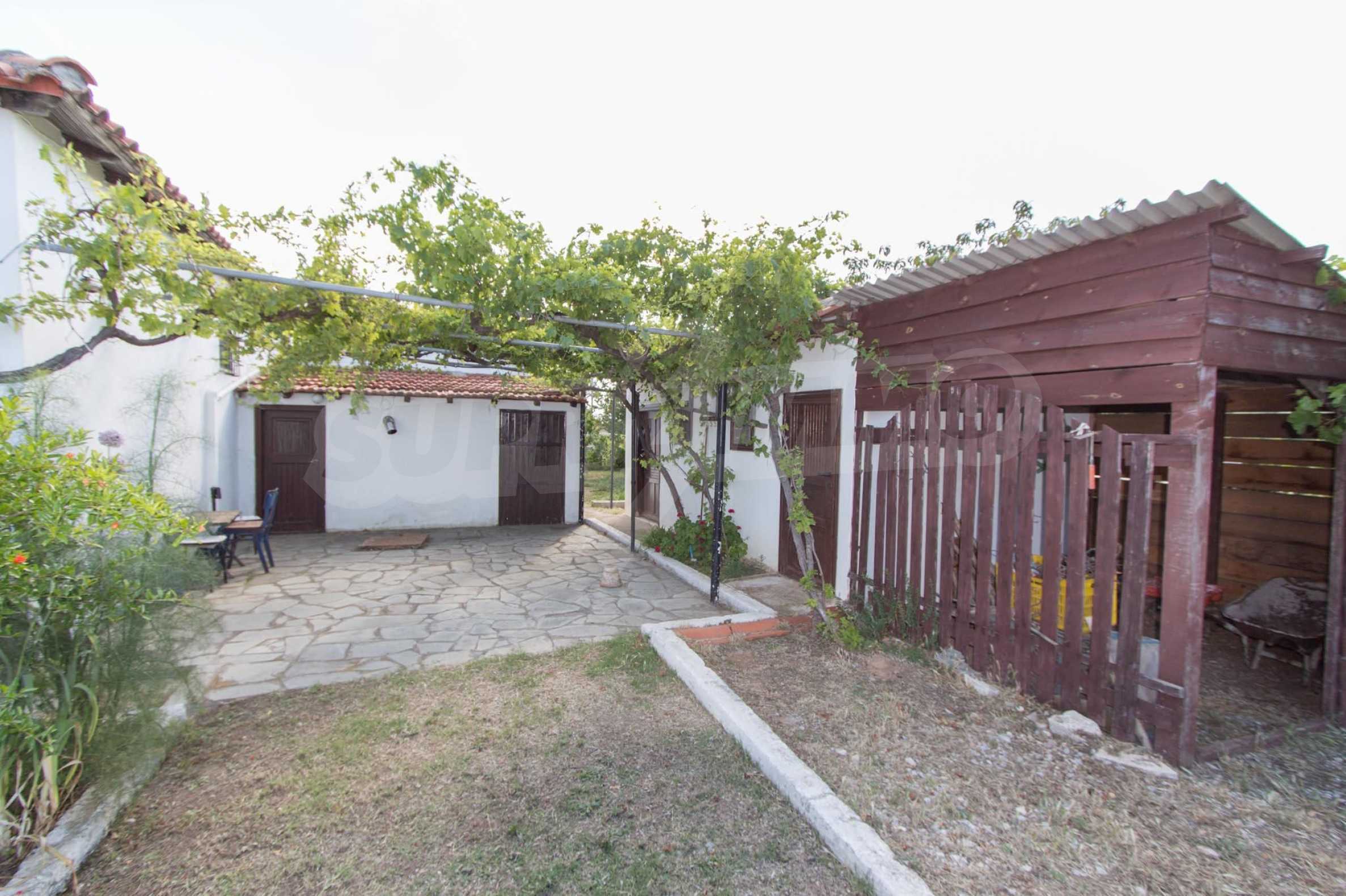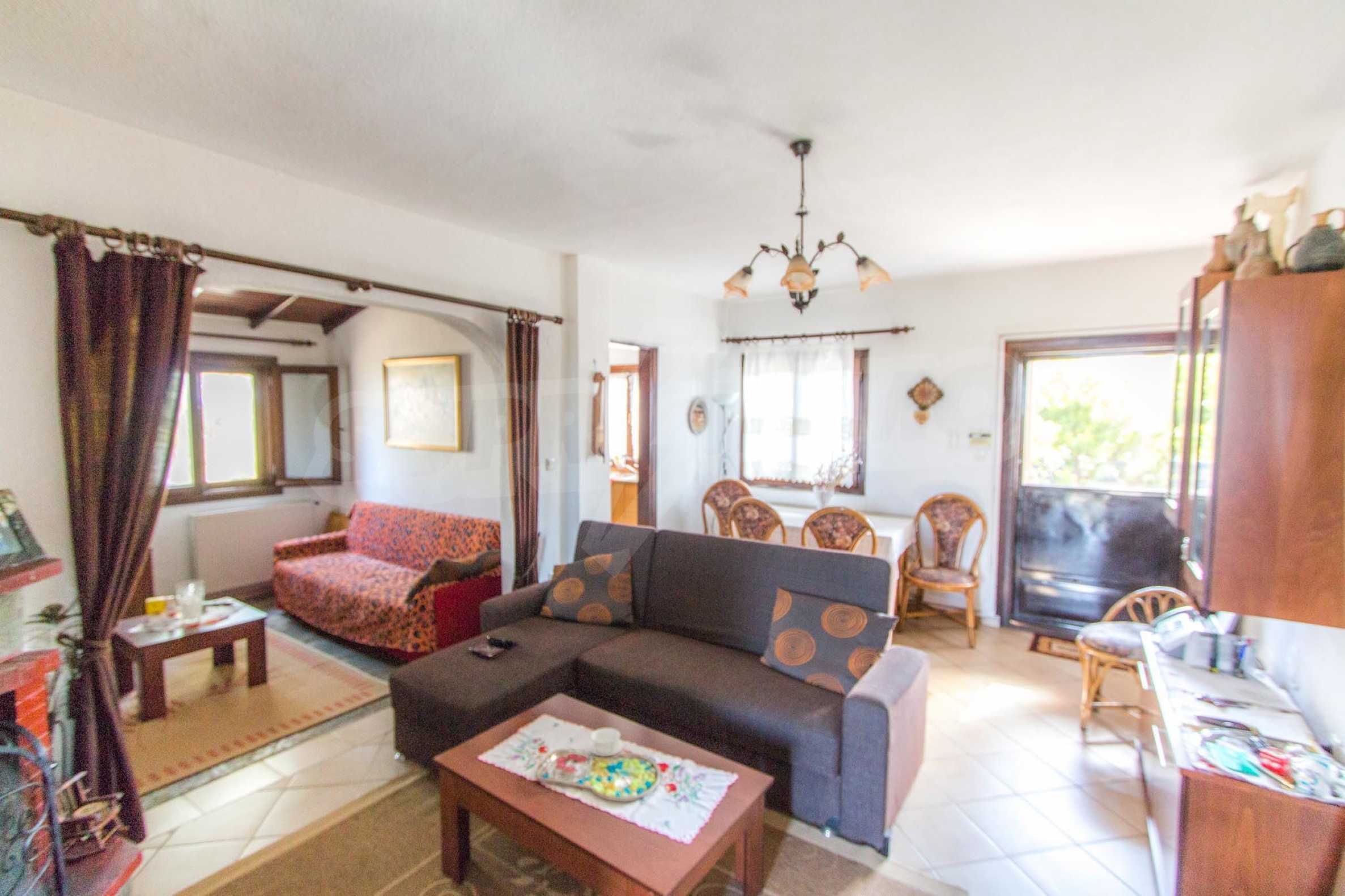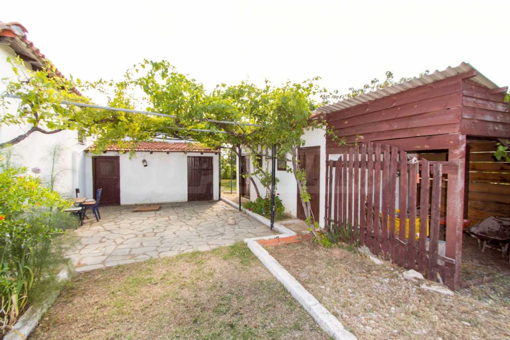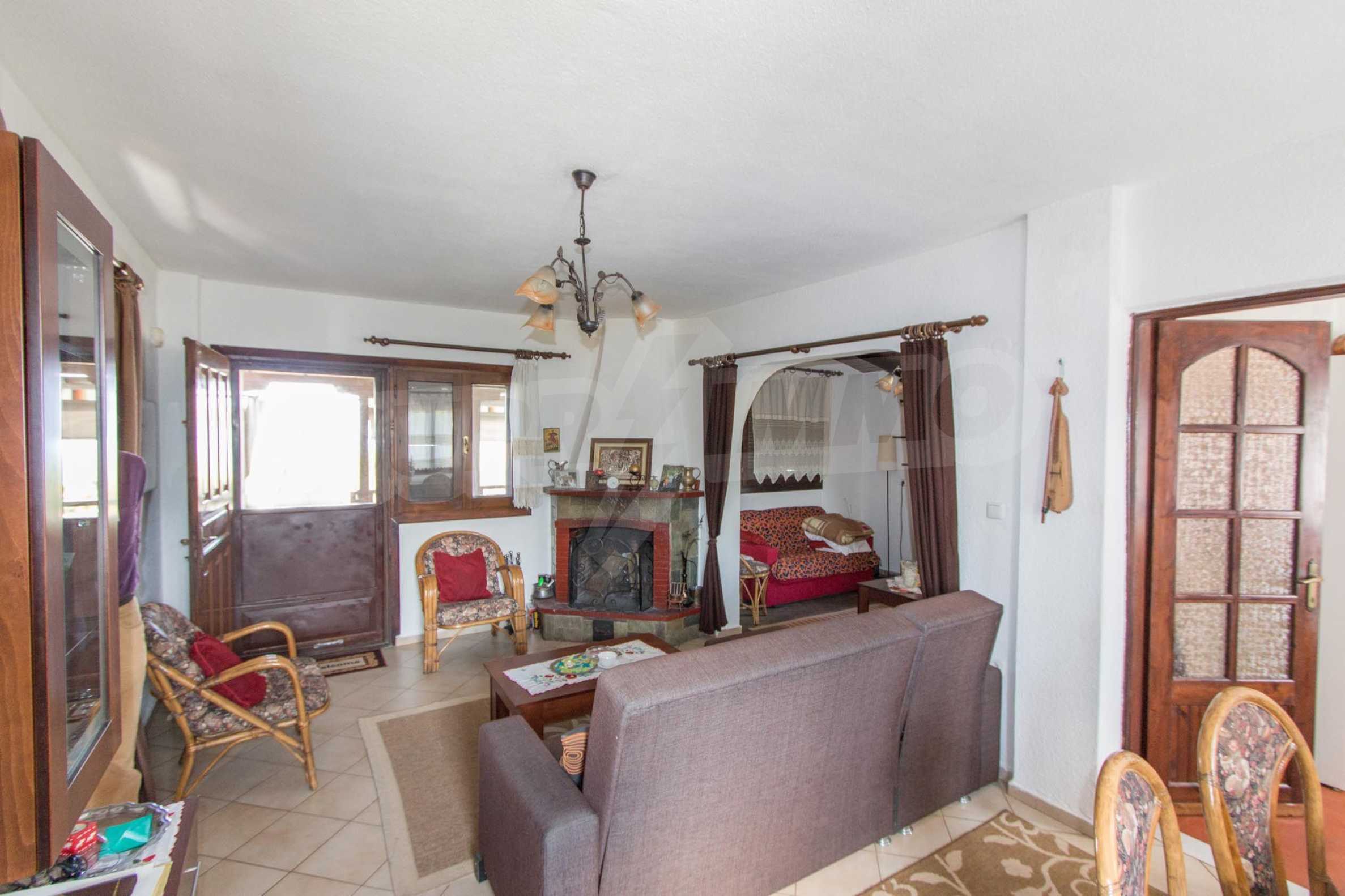Предлагаме на вашето внимание къща с площ 101 кв.м. Година на строителство: 1983. Отоплението се осъществява посредством камина и локално парно. Има климатизация. Имотът се предлага със следната степен на завършеност: дървена дограма. Имотът е снабден с собствен водоизточник и септична яма. Важно е да се отбележи, че имотът разполага с: балкон, баня с тоалетна, килер и паркинг. От имота се разкрива гледка към морето.