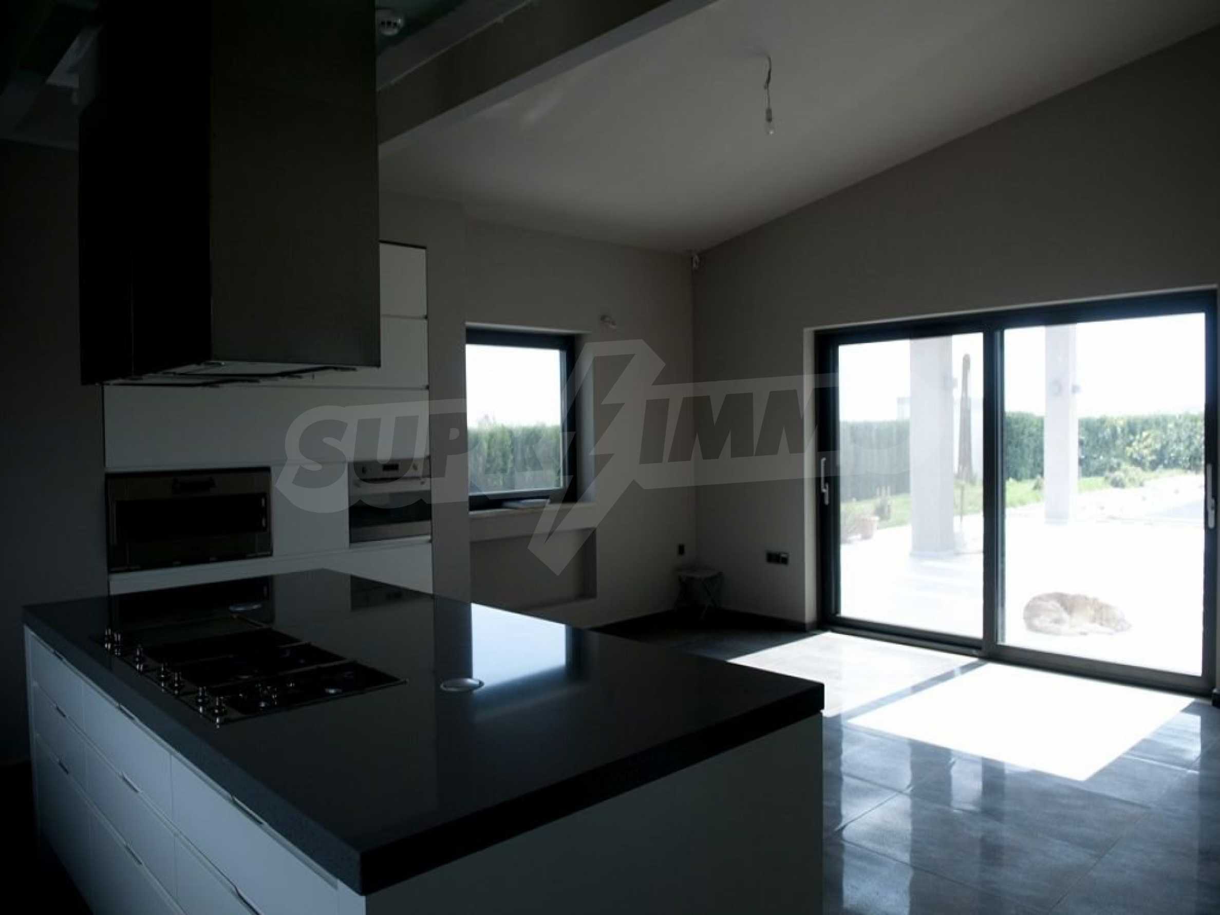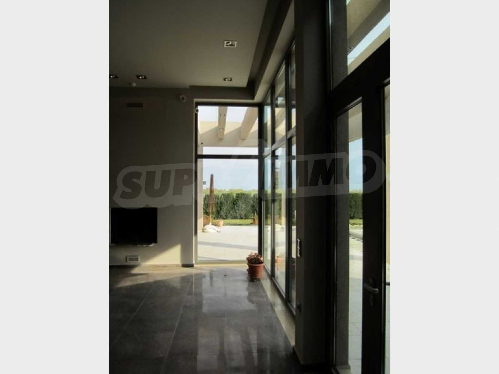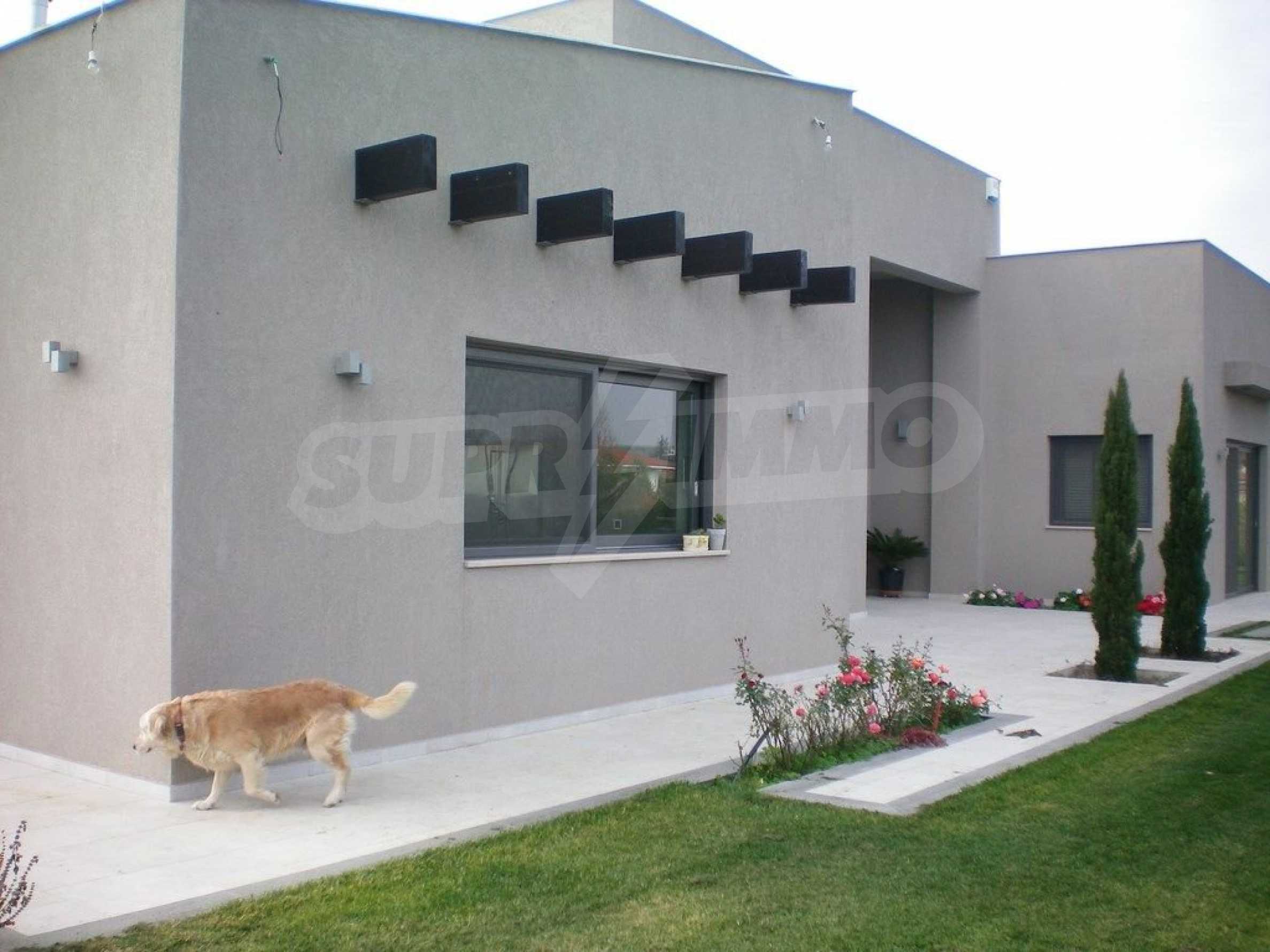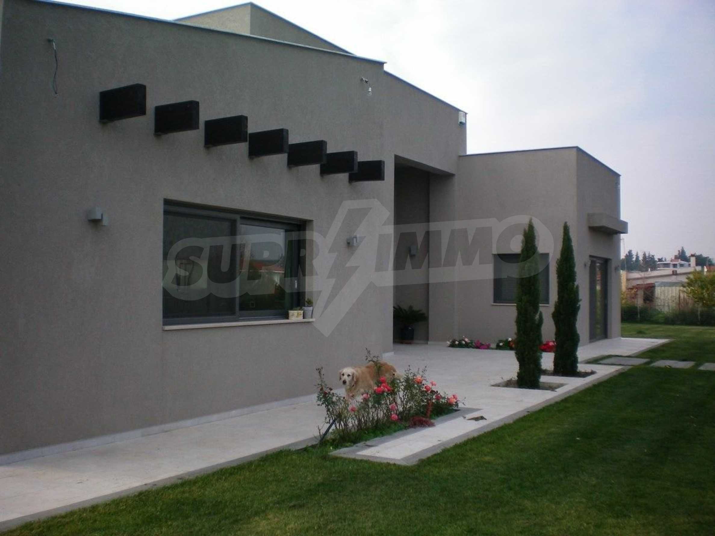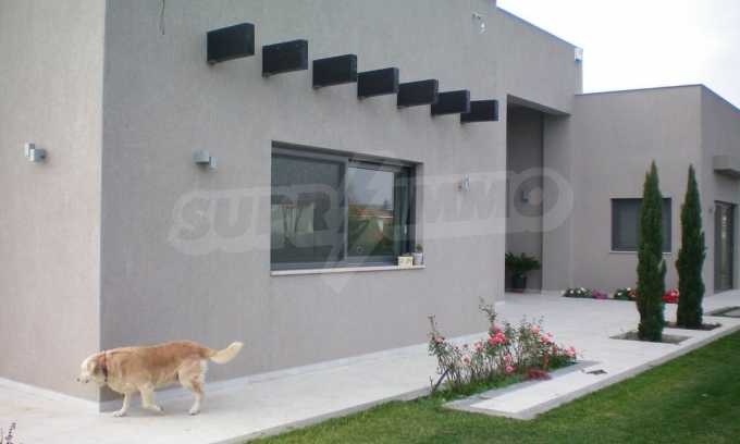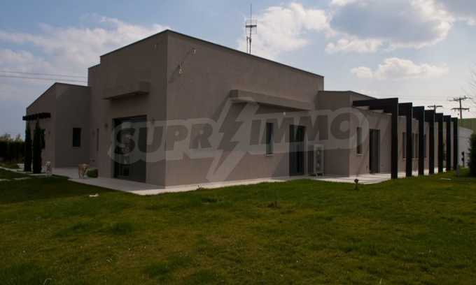 Предлагаме на вашето внимание къща с площ 318 кв.м. Година на строителство: 2009. Отоплението се осъществява посредством камина и локално парно. Има климатизация. Имотът се предлага със следната степен на завършеност: алуминиева дограма и блиндирана входна врата. По отношение на мебели и оборудване налични са: бойлер електрически, вградена кухня и климатик. Имотът е снабден с собствен водоизточник и септична яма. Важно е да се отбележи, че имотът разполага с: баня с тоалетна, гараж, килер, паркинг, басейн и сот.