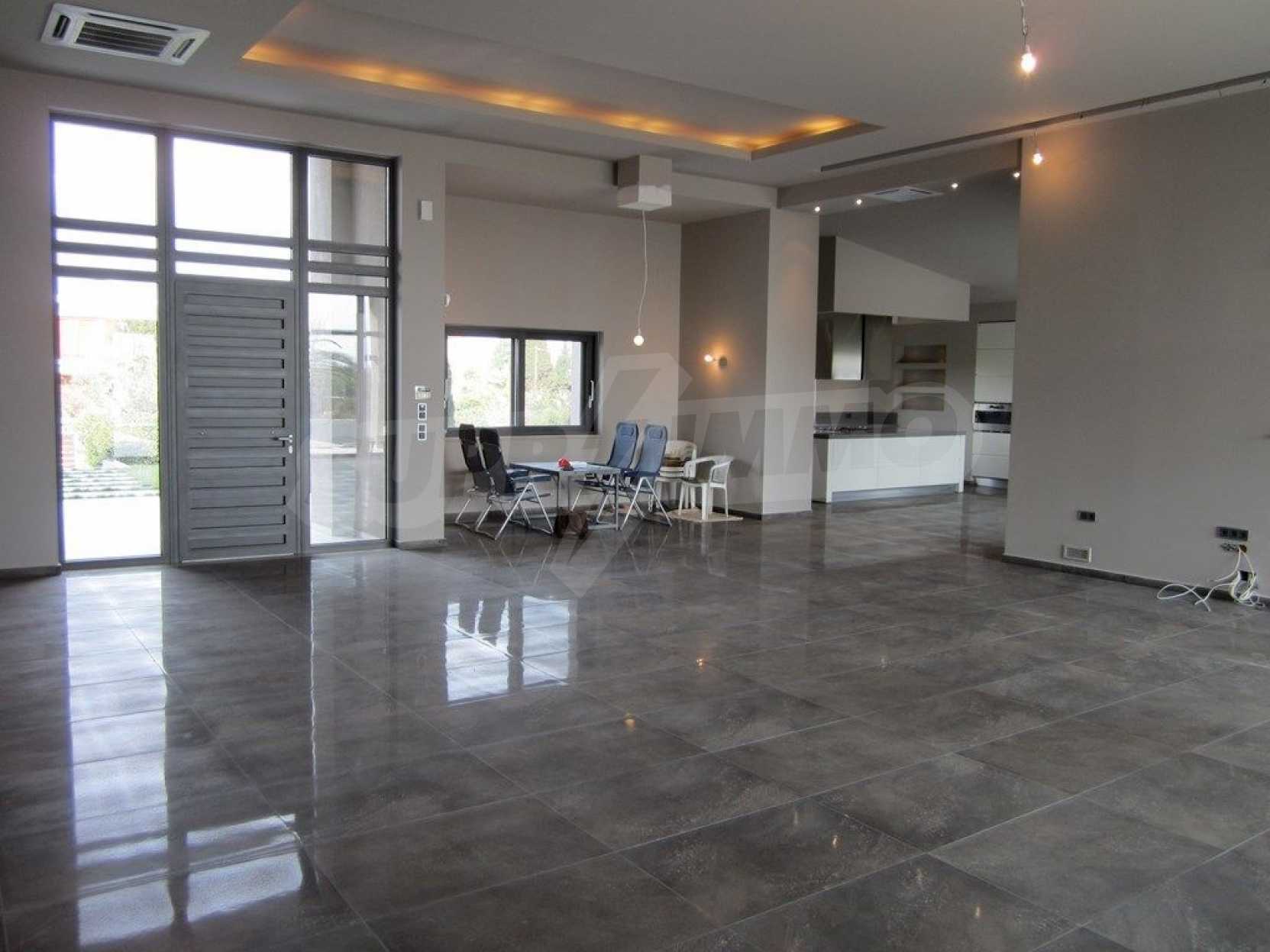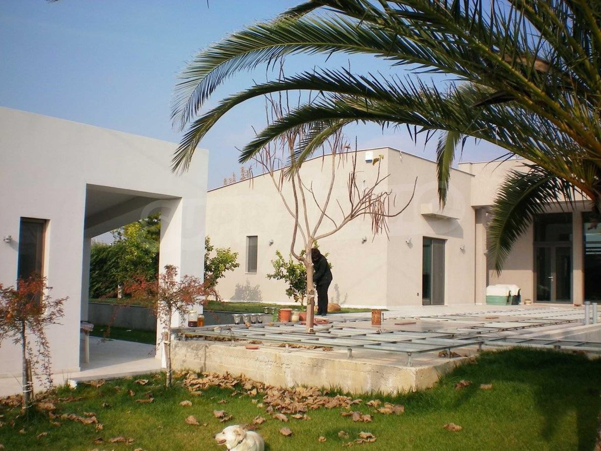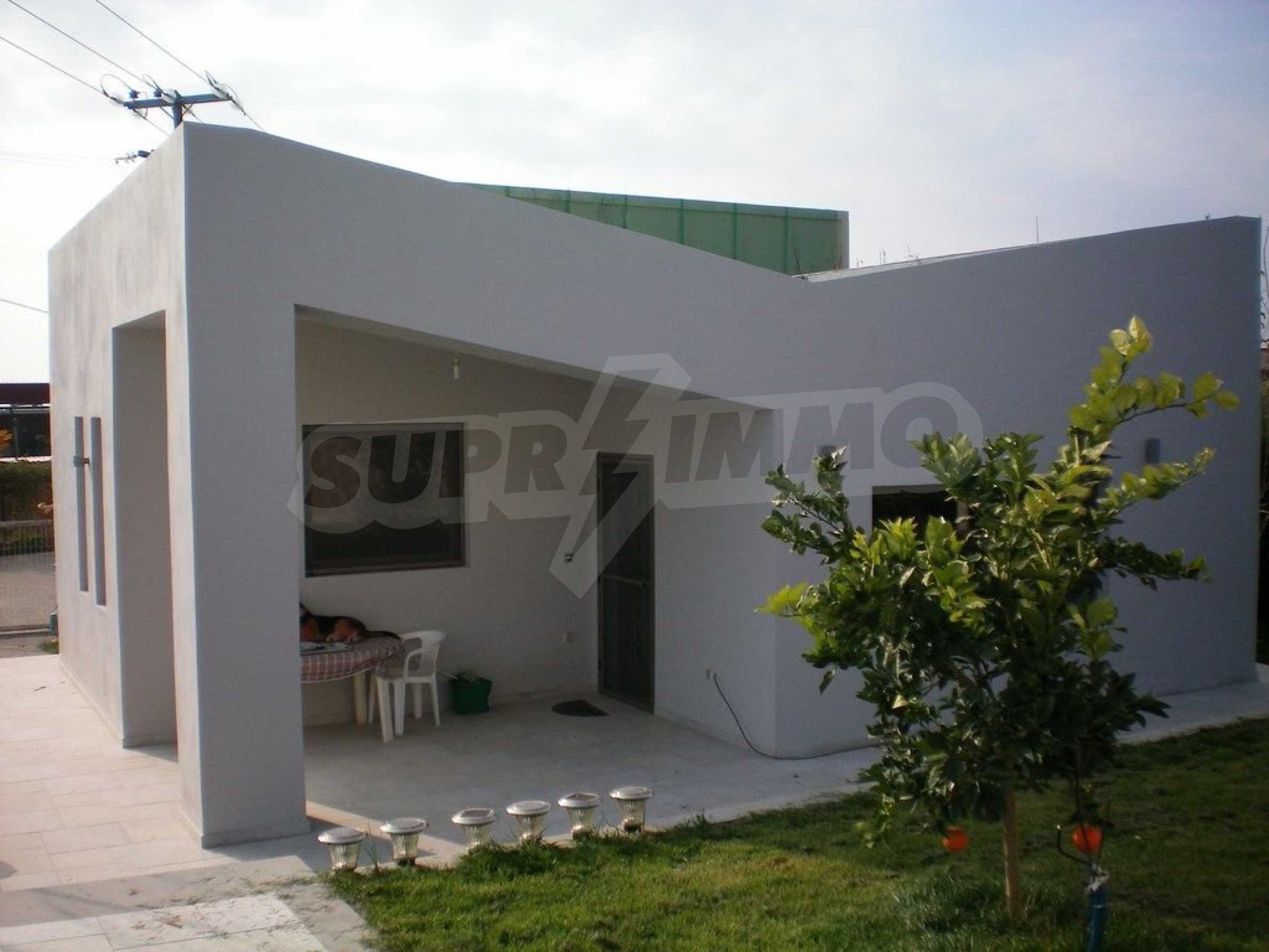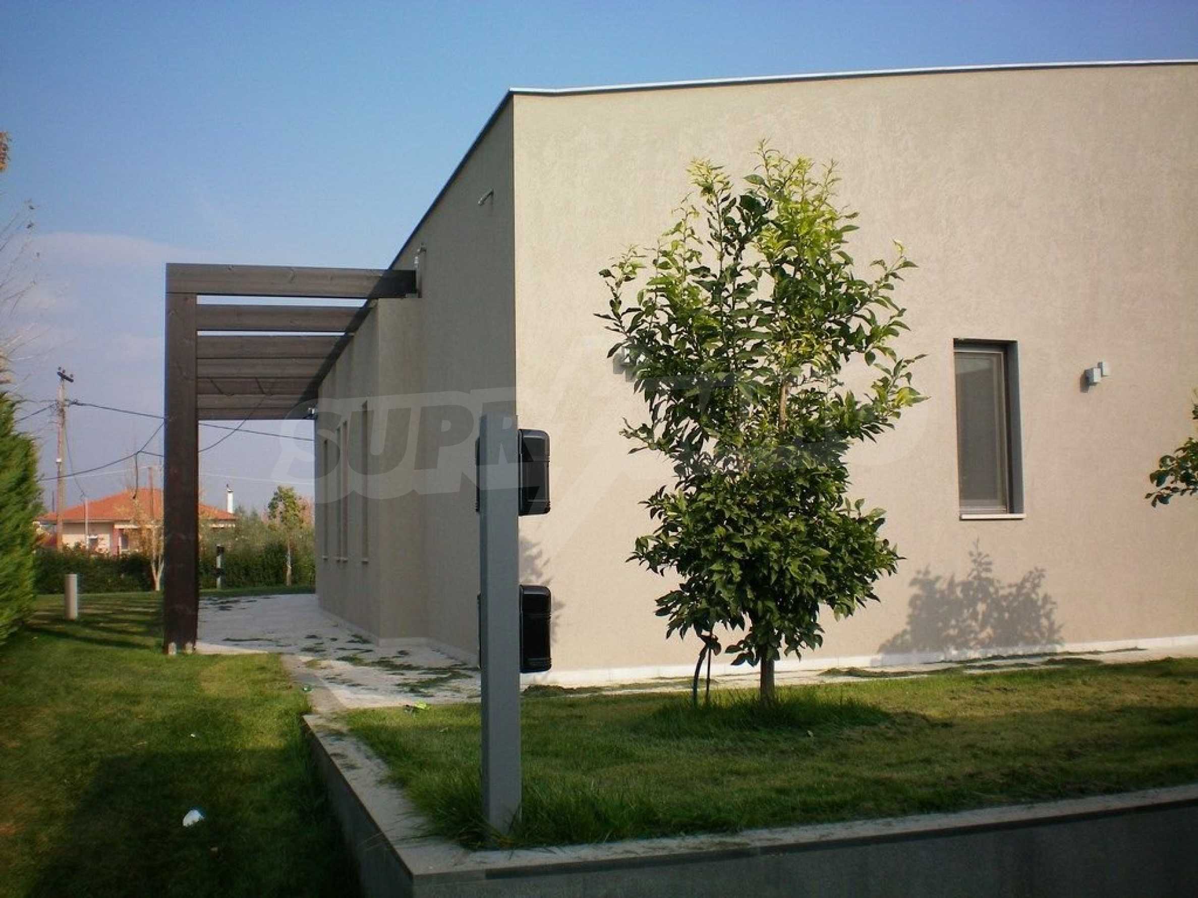 Предлагаме на вашето внимание къща с площ 318 кв.м. Година на строителство: 2009. Отоплението се осъществява посредством камина и локално парно. Има климатизация. Имотът се предлага със следната степен на завършеност: алуминиева дограма и блиндирана входна врата. По отношение на мебели и оборудване налични са: бойлер електрически, вградена кухня и климатик. Имотът е снабден с собствен водоизточник и септична яма. Важно е да се отбележи, че имотът разполага с: баня с тоалетна, гараж, килер, паркинг, басейн и сот.