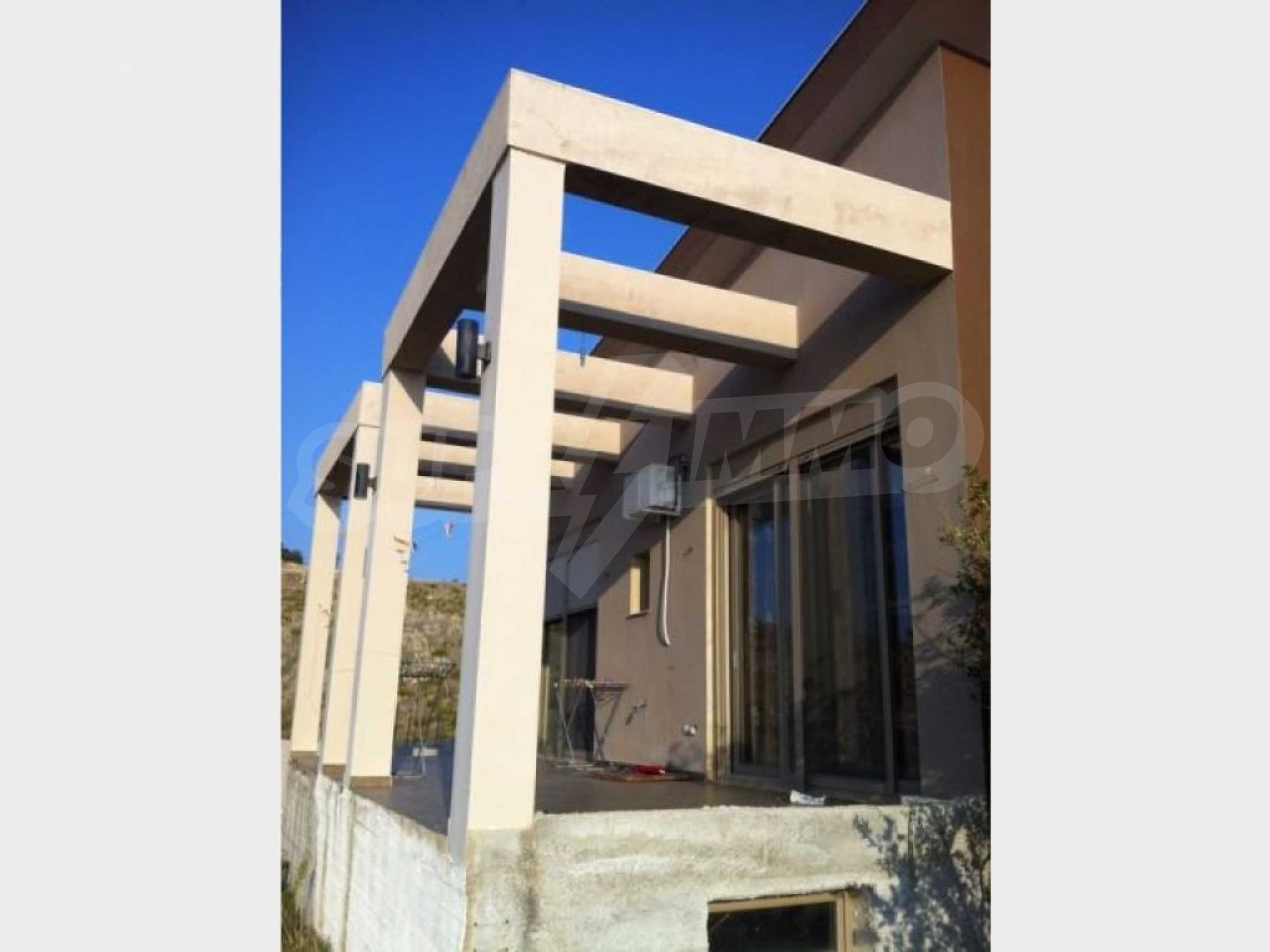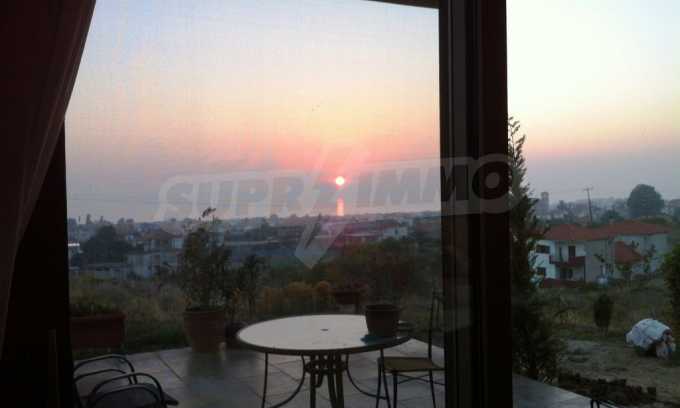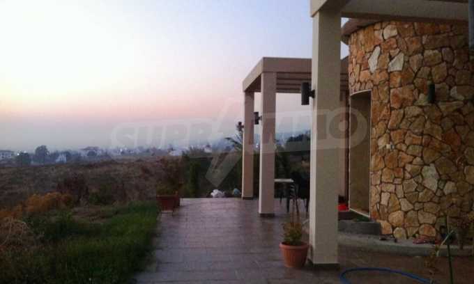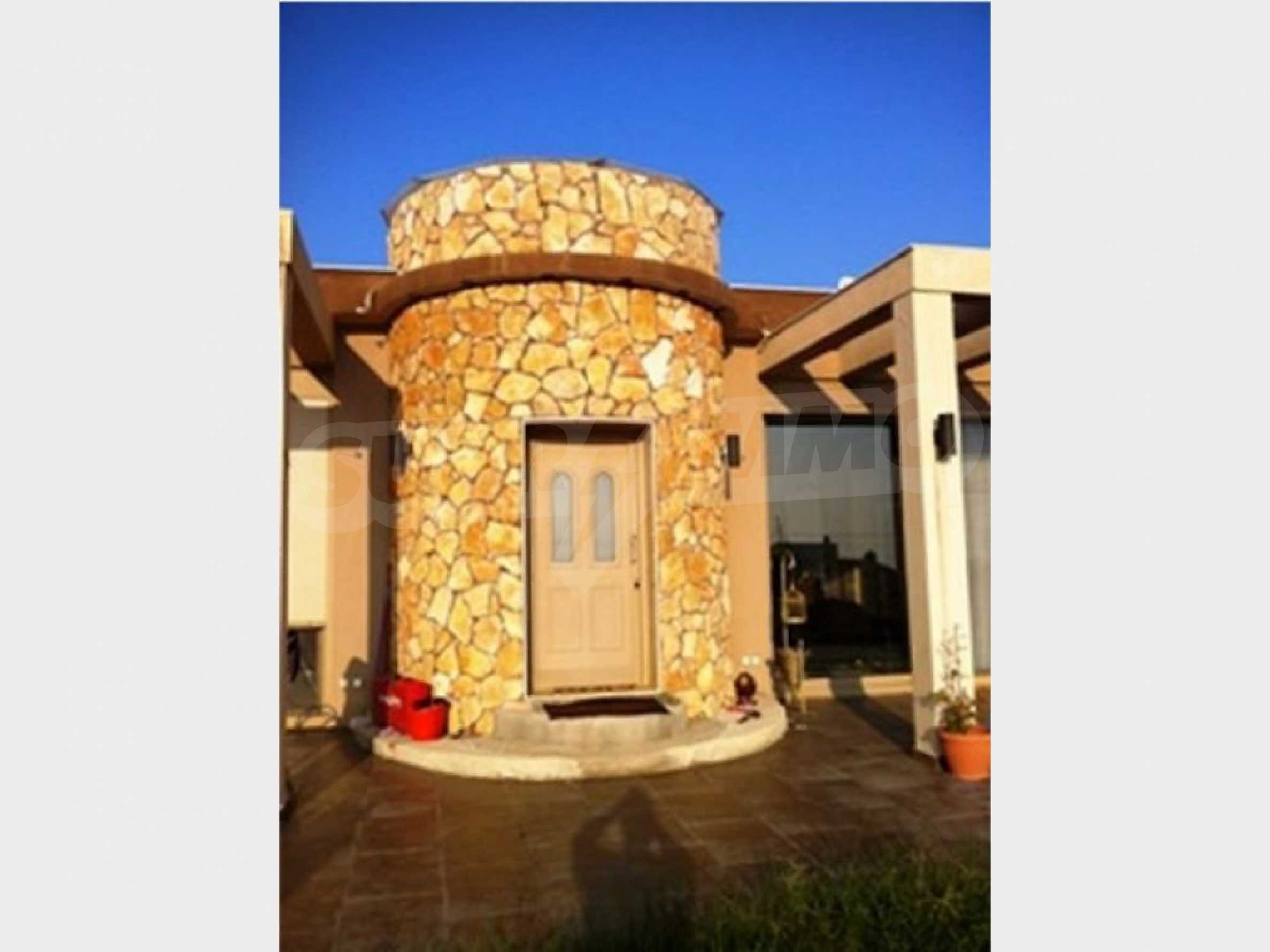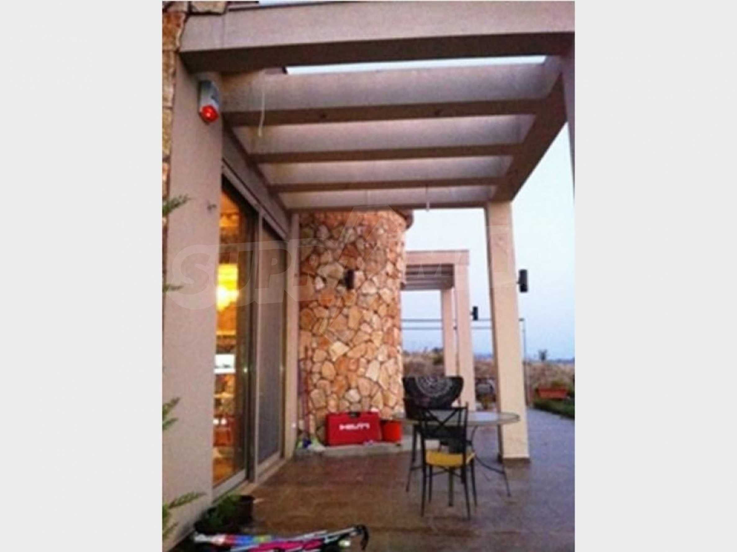 Предлагаме на вашето внимание къща с площ 480 кв.м. Година на строителство: 2011. Отоплението се осъществява посредством камина и локално парно. Има климатизация. Имотът се предлага със следната степен на завършеност: алуминиева дограма. Имотът е снабден с собствен водоизточник и септична яма. Важно е да се отбележи, че имотът разполага с: баня с тоалетна, килер, мазе, паркинг и джакузи. От имота се разкрива гледка към морето.