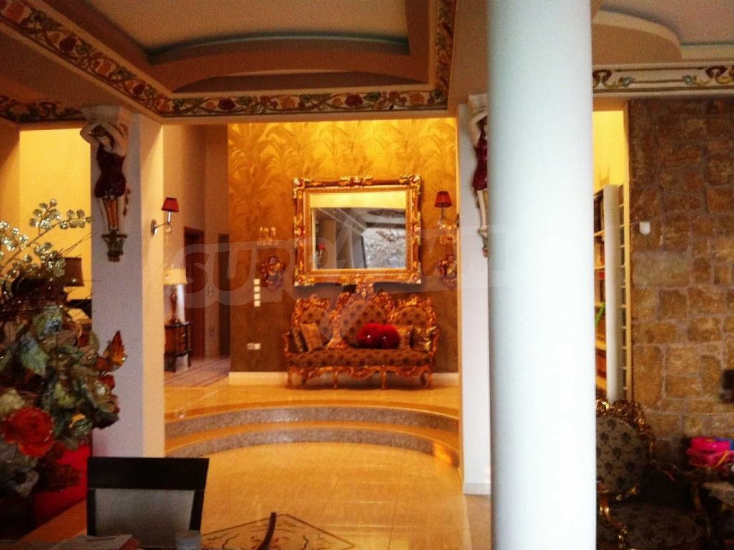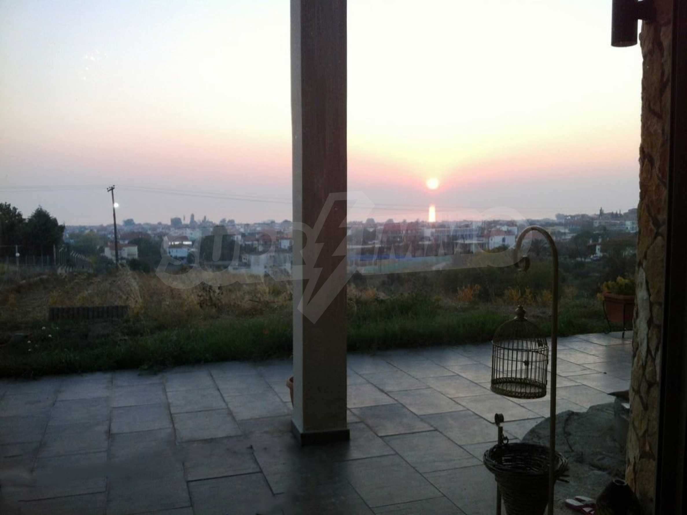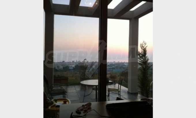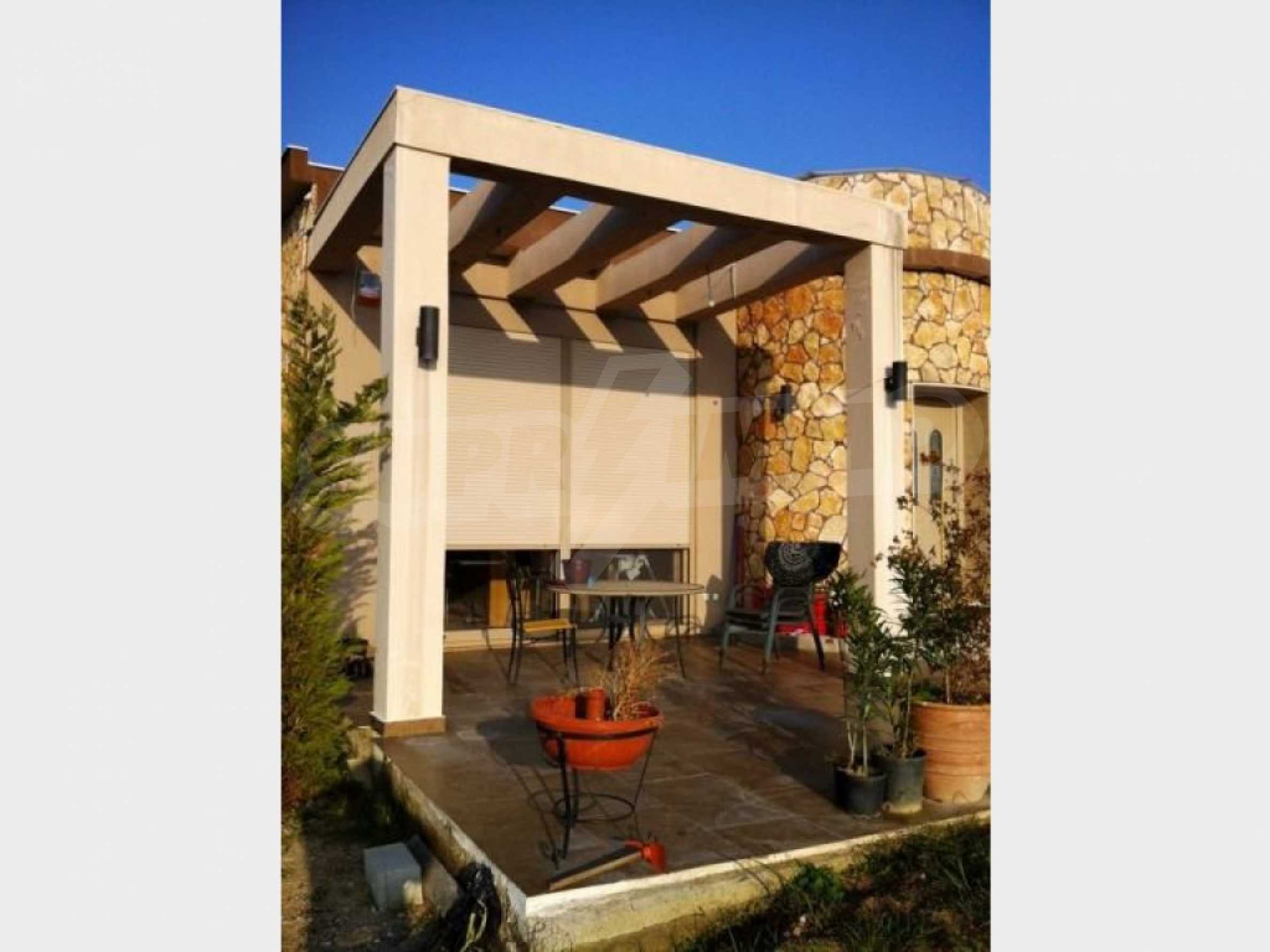 Предлагаме на вашето внимание къща с площ 480 кв.м. Година на строителство: 2011. Отоплението се осъществява посредством камина и локално парно. Има климатизация. Имотът се предлага със следната степен на завършеност: алуминиева дограма. Имотът е снабден с собствен водоизточник и септична яма. Важно е да се отбележи, че имотът разполага с: баня с тоалетна, килер, мазе, паркинг и джакузи. От имота се разкрива гледка към морето.