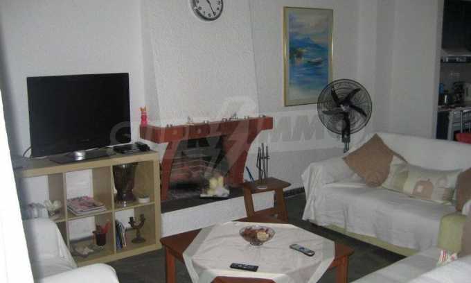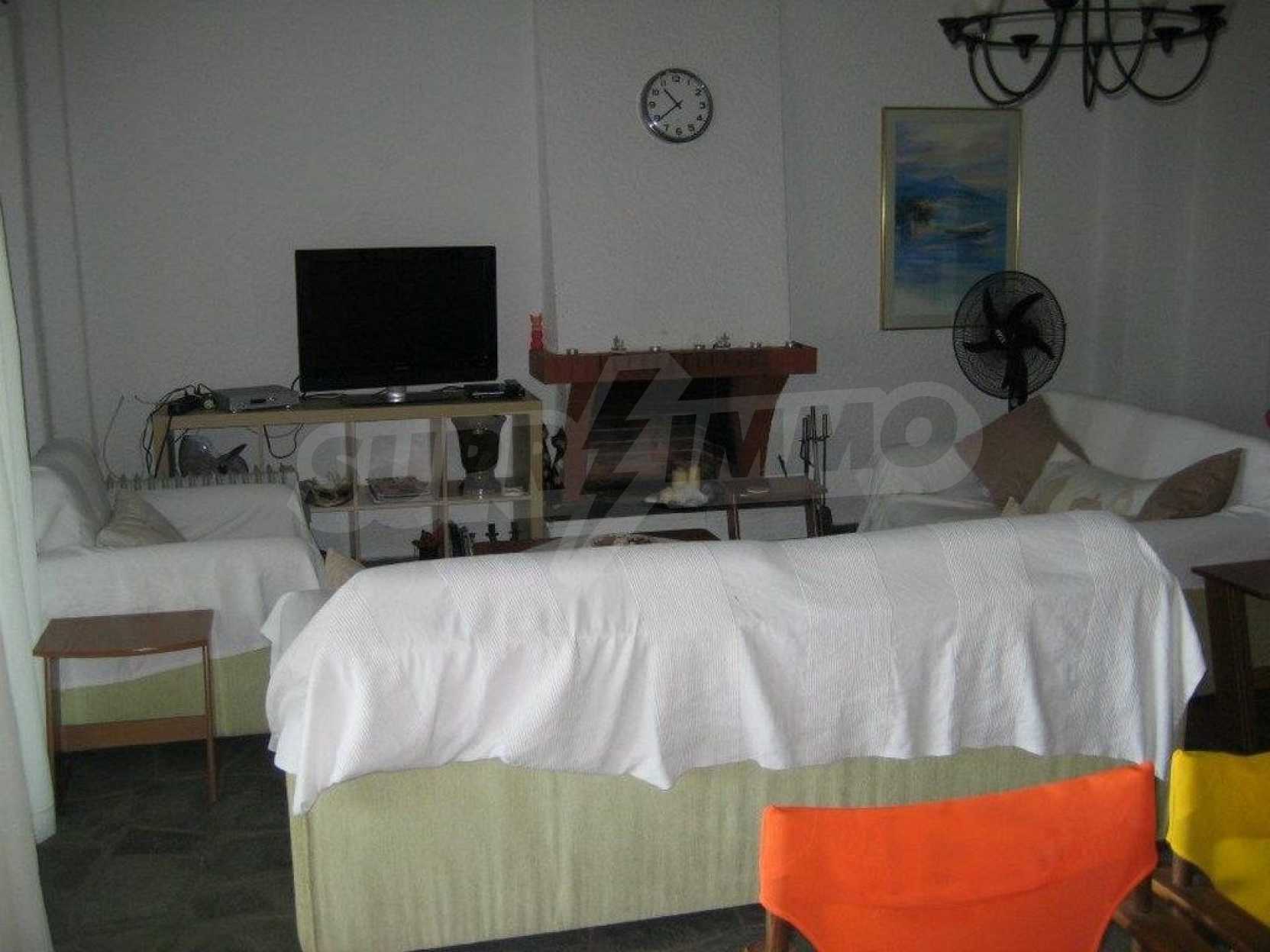 Предлагаме на вашето внимание къща с площ 140 кв.м. Година на строителство: 2003. Отоплението се осъществява посредством камина. Има климатизация. Имотът се предлага със следната степен на завършеност: алуминиева дограма и блиндирана входна врата. Имотът е снабден с септична яма. Важно е да се отбележи, че имотът разполага с: балкон, баня с тоалетна, килер, паркинг, таванско помещение и сот. От имота се разкрива гледка към морето.