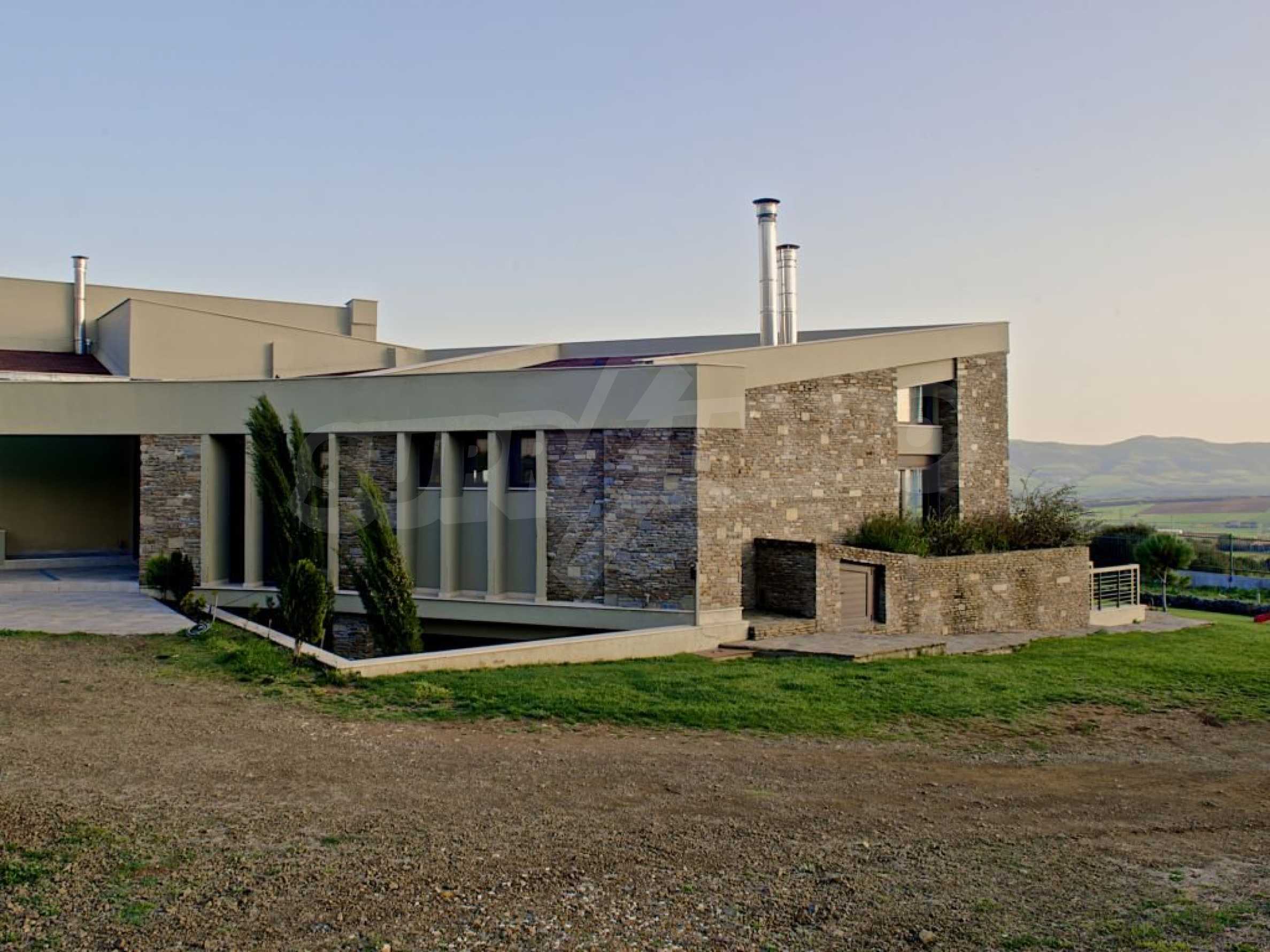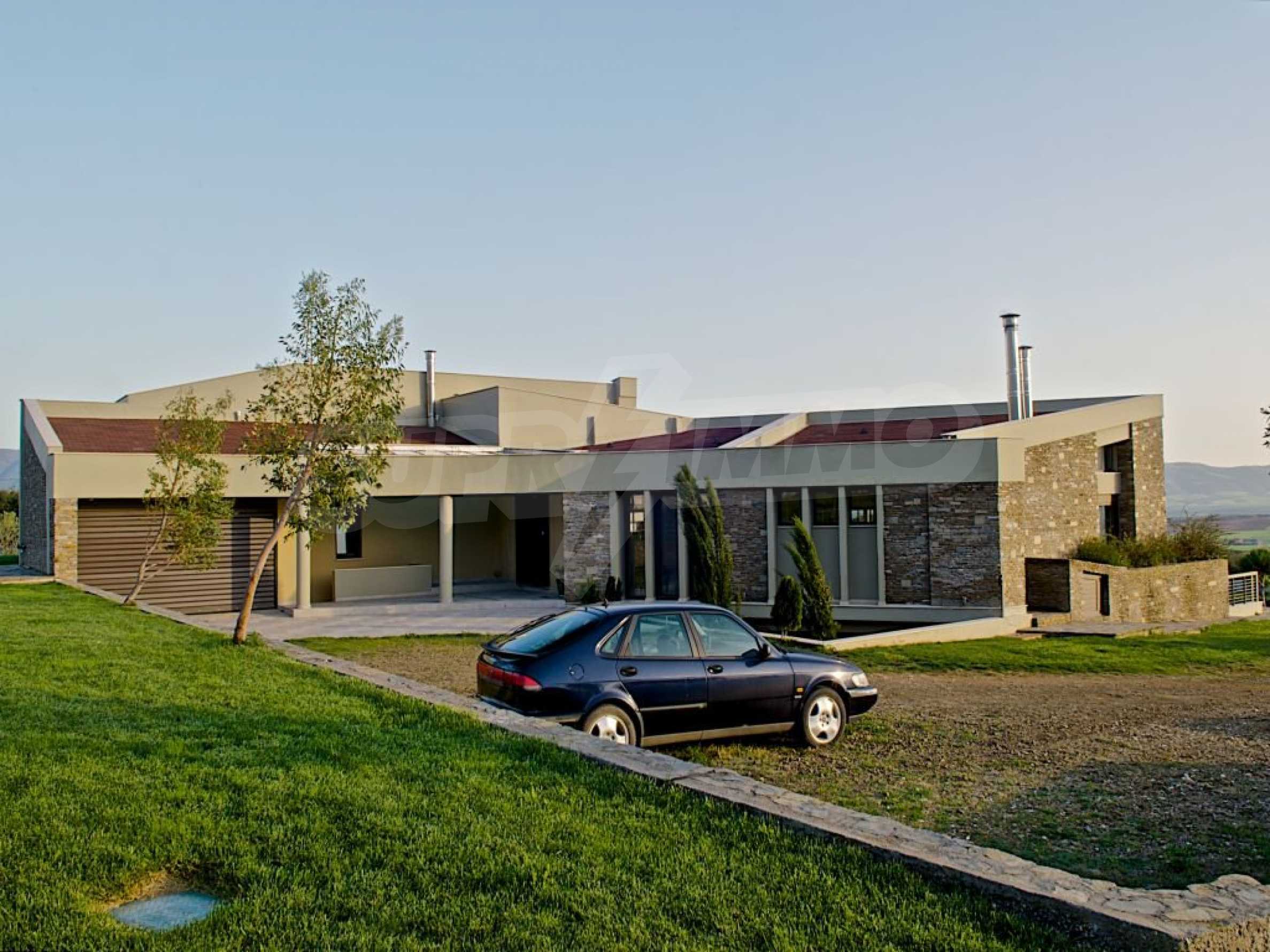 Предлагаме на вашето внимание вилa с площ 500 кв.м. Година на строителство: 2006. Отоплението се осъществява посредством камина и локално парно. Има климатизация. Имотът се предлага със следната степен на завършеност: алуминиева дограма. По отношение на мебели и оборудване налични са: бойлер електрически, вградена кухня и климатик. Имотът е снабден с собствен водоизточник и септична яма. Важно е да се отбележи, че имотът разполага с: балкон, баня с тоалетна, килер, паркинг и джакузи.