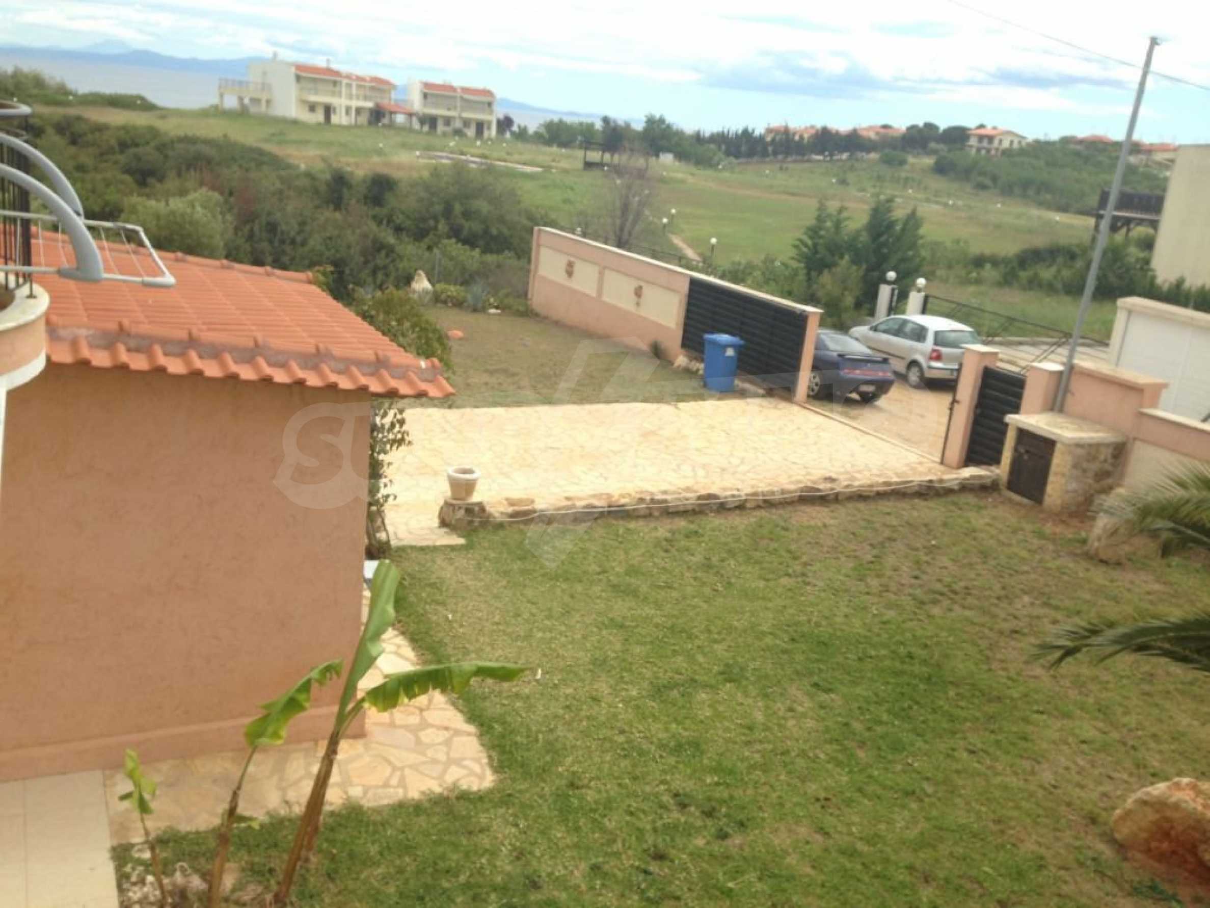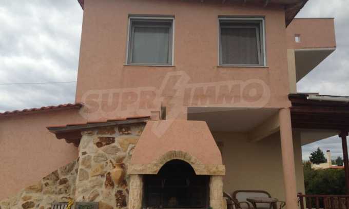 Предлагаме на вашето внимание къща с площ 140 кв.м. Година на строителство: 2003. Отоплението се осъществява посредством камина и локално парно. Има климатизация. По отношение на мебели и оборудване налични са: бойлер електрически, вградена кухня и климатик. Имотът е снабден с септична яма. Важно е да се отбележи, че имотът разполага с: балкон, баня с тоалетна, килер и паркинг. От имота се разкрива гледка към морето.