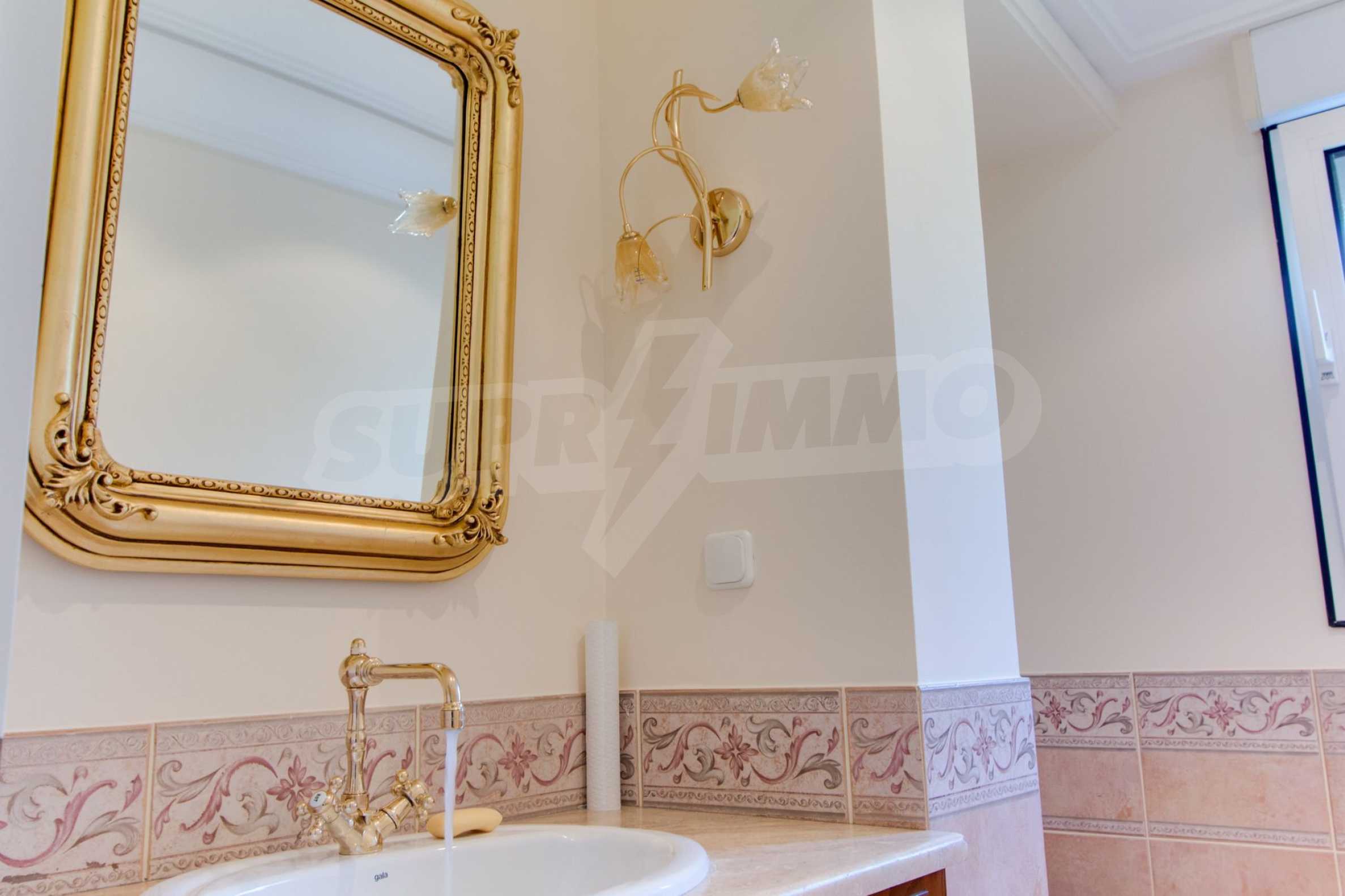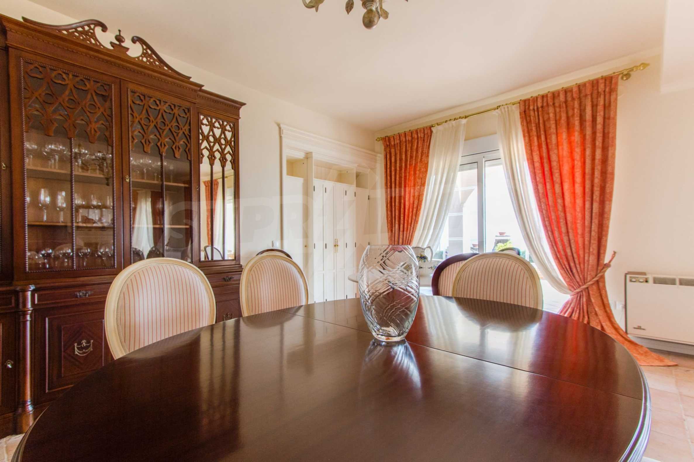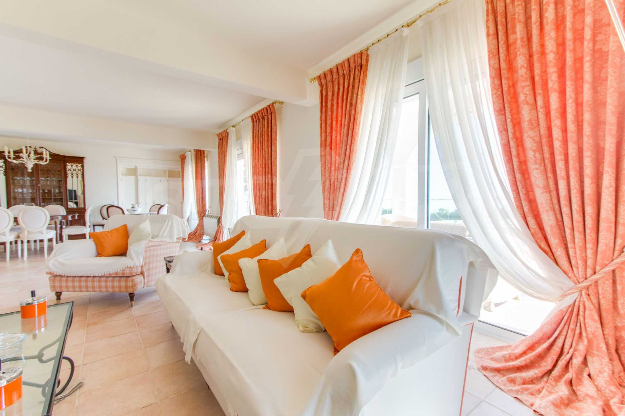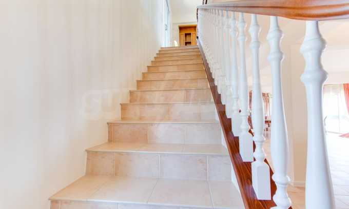 Вилата е на три нива с обща застроена площ 850 кв.м. заобиколена от двор 5500 кв.м. Напълно климатизирана и изискано обзаведена, къщата е с луксозно изпълнени вътрешни помещения и стилно оформен двор.