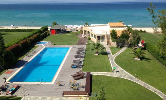 Предлагаме на вашето внимание хотел с площ 400 кв.м. Година на строителство: 2007. Отоплението се осъществява посредством локално парно. По отношение на мебели и оборудване налични са: вана, телевизор и хладилник. Имотът е снабден с канализация. Важно е да се отбележи, че имотът разполага с: балкон, басейн, Wi-Fi интернет и интернет. От имота се разкрива гледка към морето.