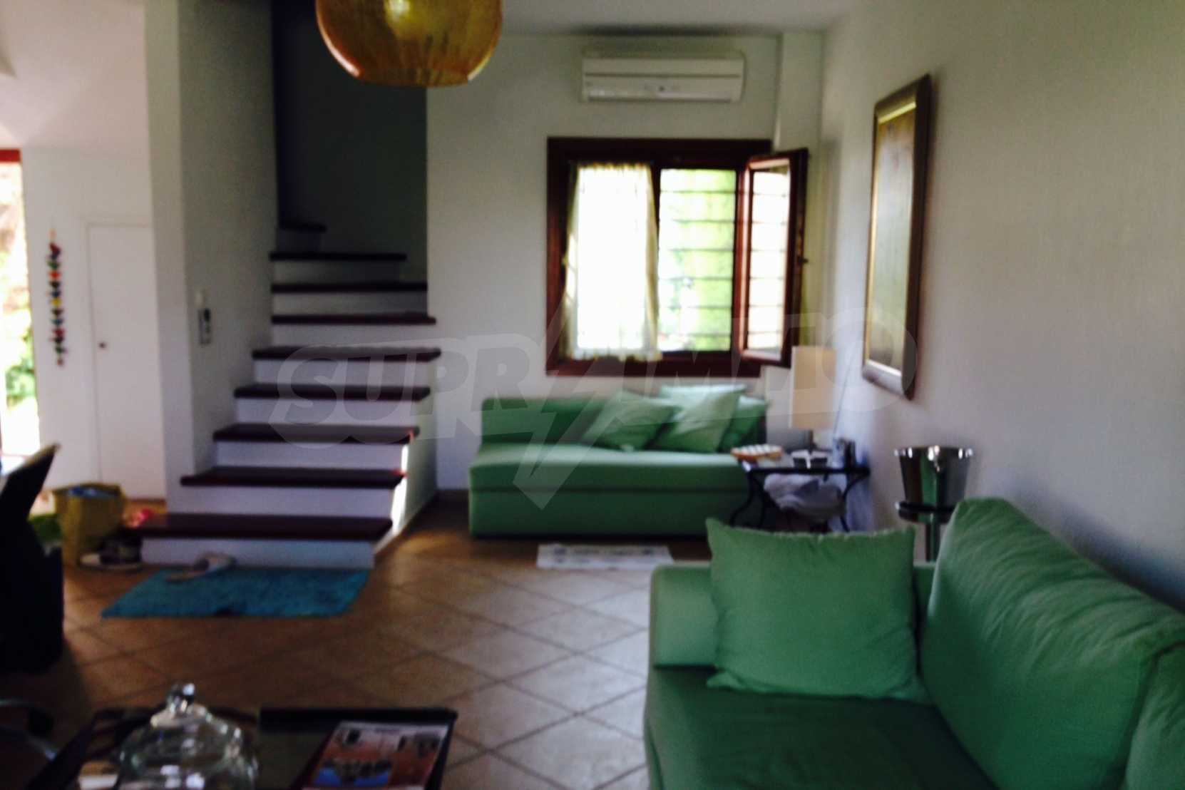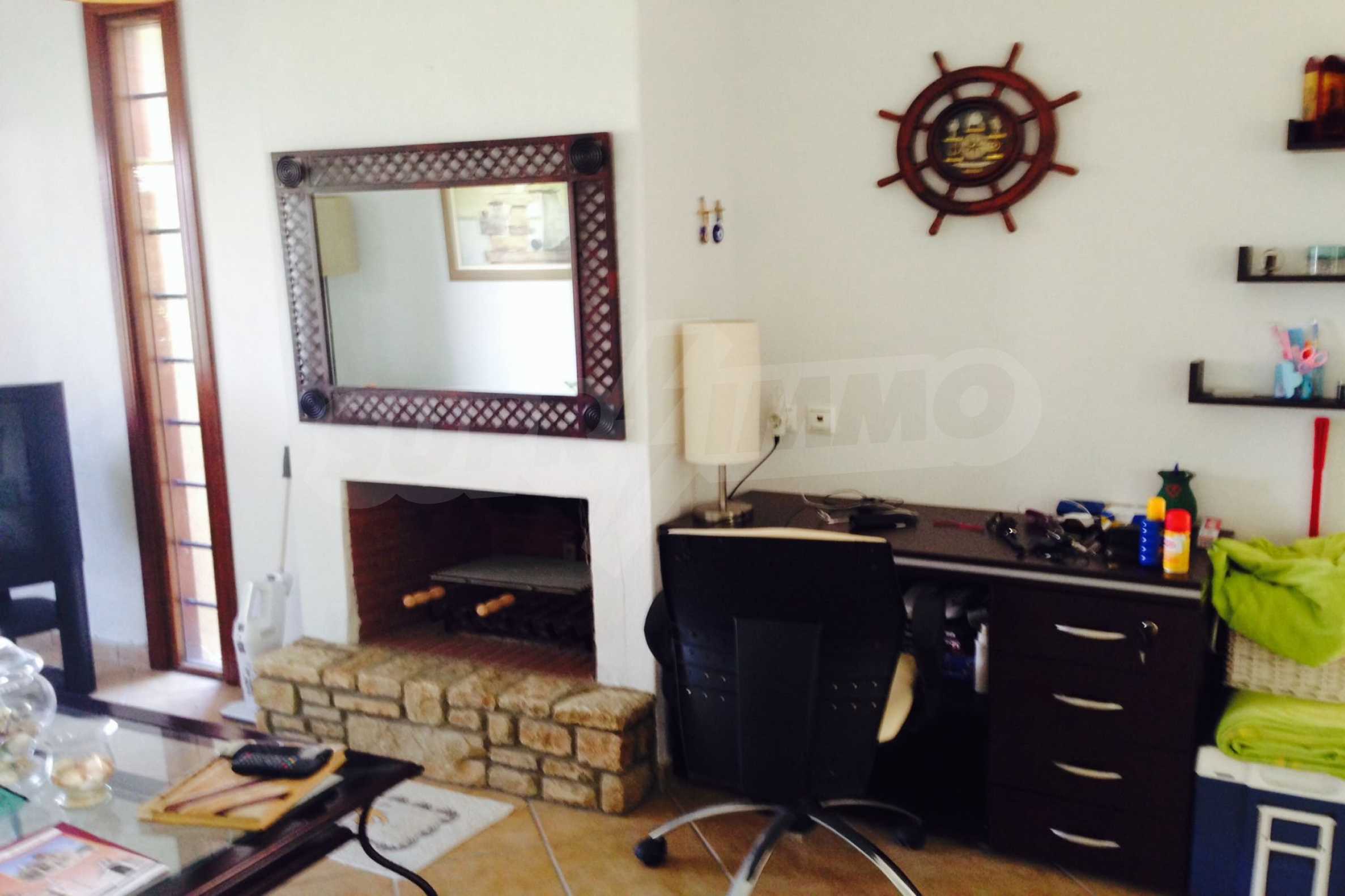 Предлагаме на вашето внимание къща с площ 96 кв.м. Година на строителство: 2004. Отоплението се осъществява посредством камина и локално парно. Има климатизация. Имотът е снабден с септична яма. Важно е да се отбележи, че имотът разполага с: баня с тоалетна, килер и паркинг. От имота се разкрива гледка към морето.