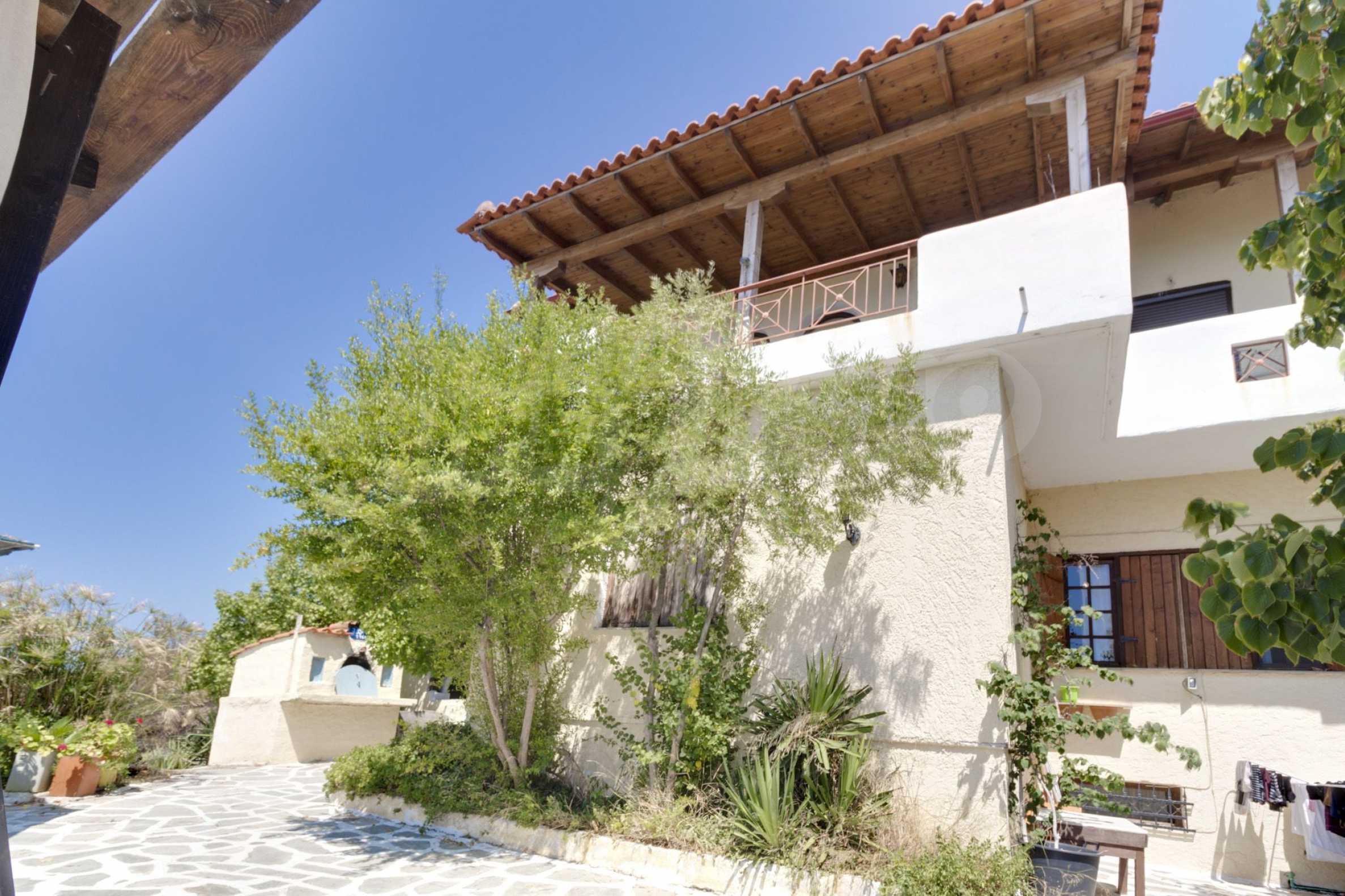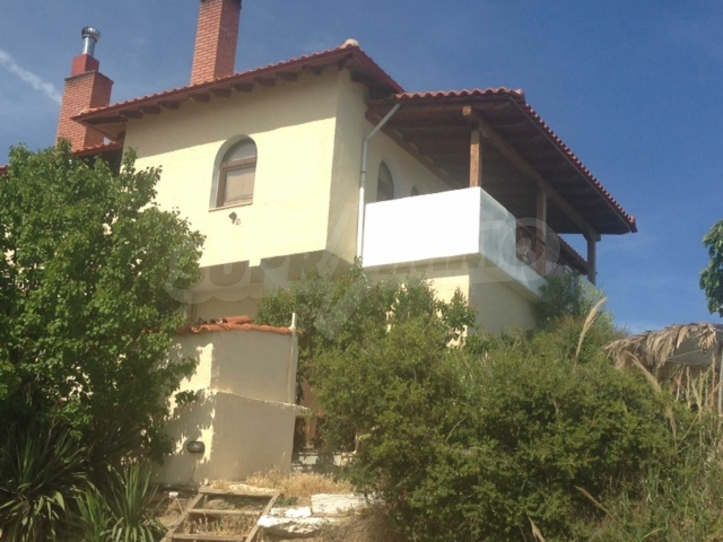 Предлагаме на вашето внимание къща с площ 390 кв.м. Година на строителство: 2002. Отоплението се осъществява посредством камина и локално парно. Имотът се предлага със следната степен на завършеност: блиндирана входна врата. По отношение на мебели и оборудване налични са: бойлер електрически и вградена кухня. Имотът е снабден с септична яма. Важно е да се отбележи, че имотът разполага с: баня с тоалетна, килер, паркинг и сот. От имота се разкрива гледка към морето.