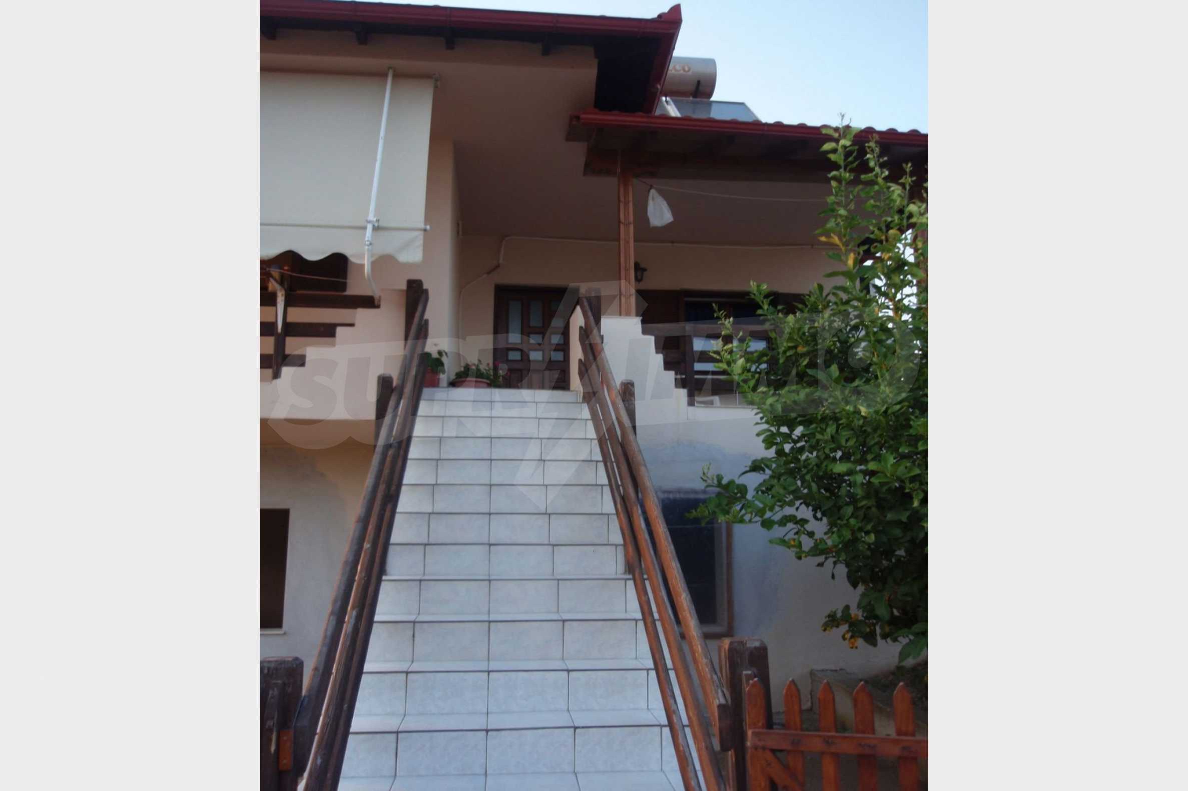 Предлагаме на вашето внимание къща с площ 240 кв.м. Година на строителство: 1994. Отоплението се осъществява посредством камина и локално парно. Имотът се предлага със следната степен на завършеност: дървена дограма. Имотът е снабден с септична яма. Важно е да се отбележи, че имотът разполага с: баня с тоалетна, килер и паркинг. От имота се разкрива гледка към морето.