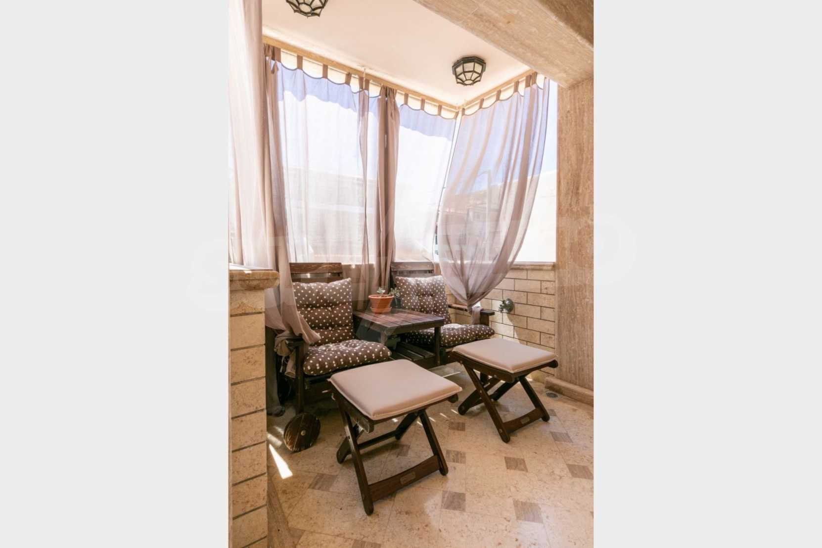 Предлагаме на вашето внимание вилa с площ 370 кв.м. Година на строителство: 2001. Имотът се предлага със следната степен на завършеност: алуминиева дограма, блиндирана входна врата и подове с дюшеме. Имотът е снабден с канализация. Важно е да се отбележи, че имотът разполага с: балкон и сот. От имота се разкрива гледка към морето.