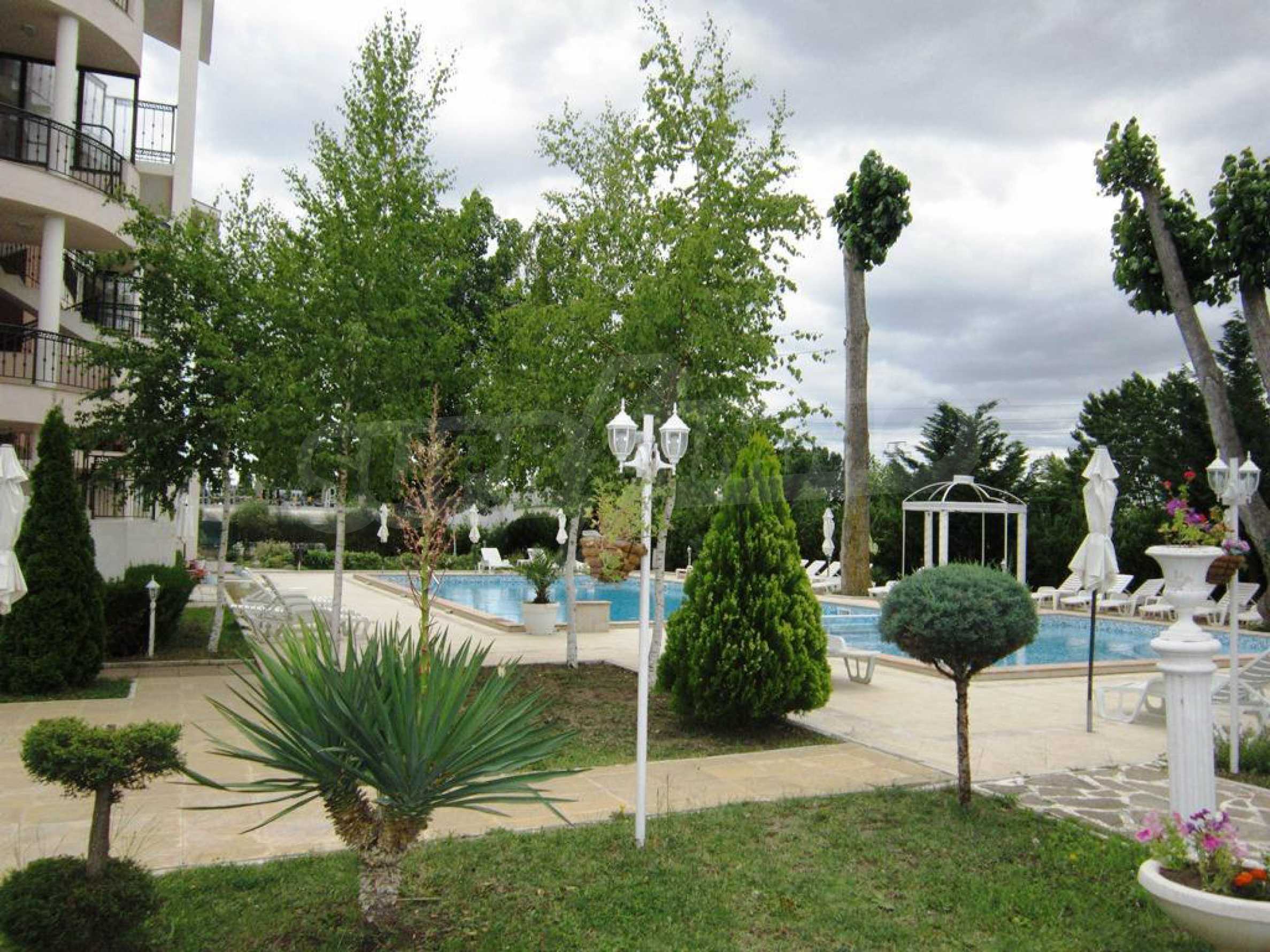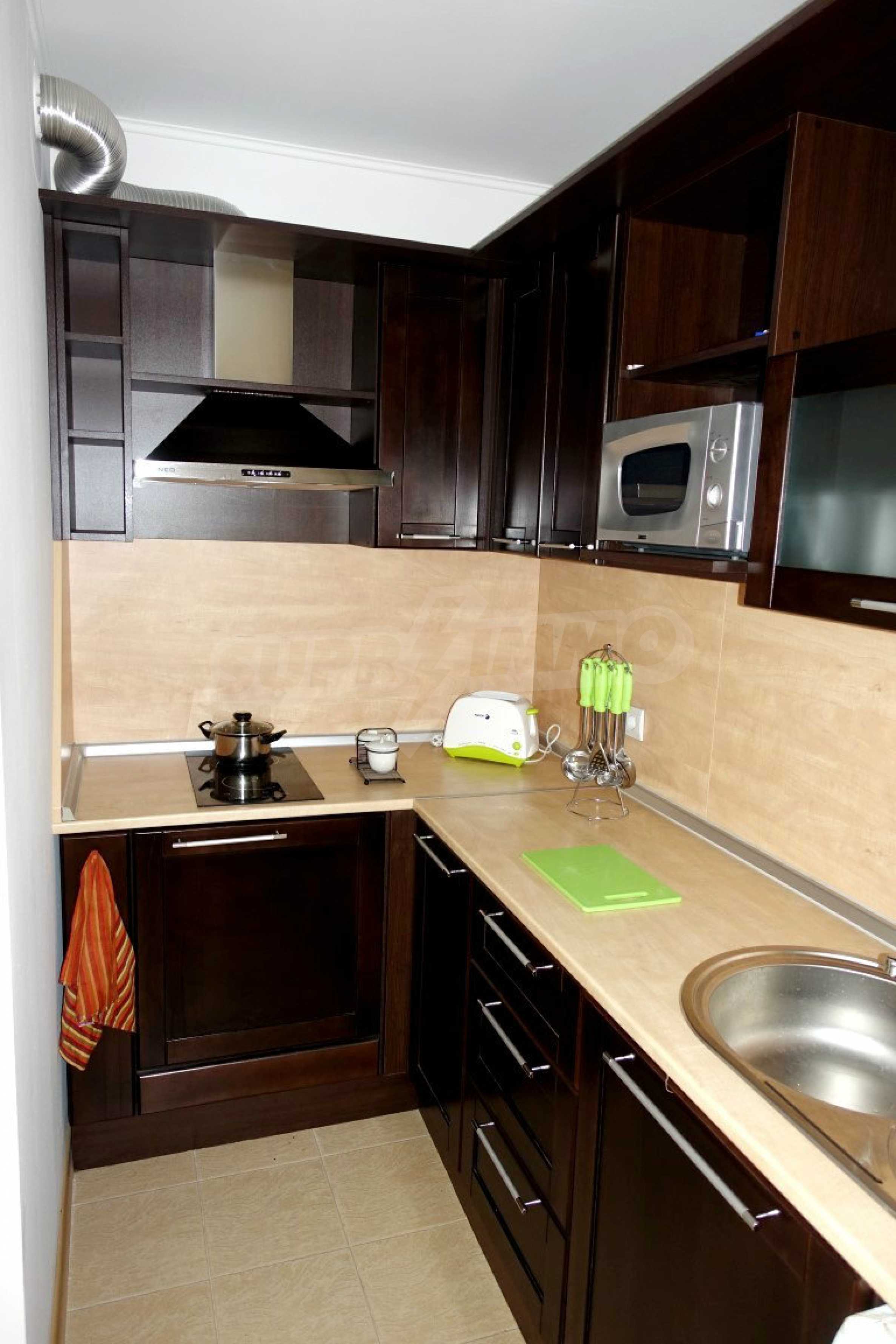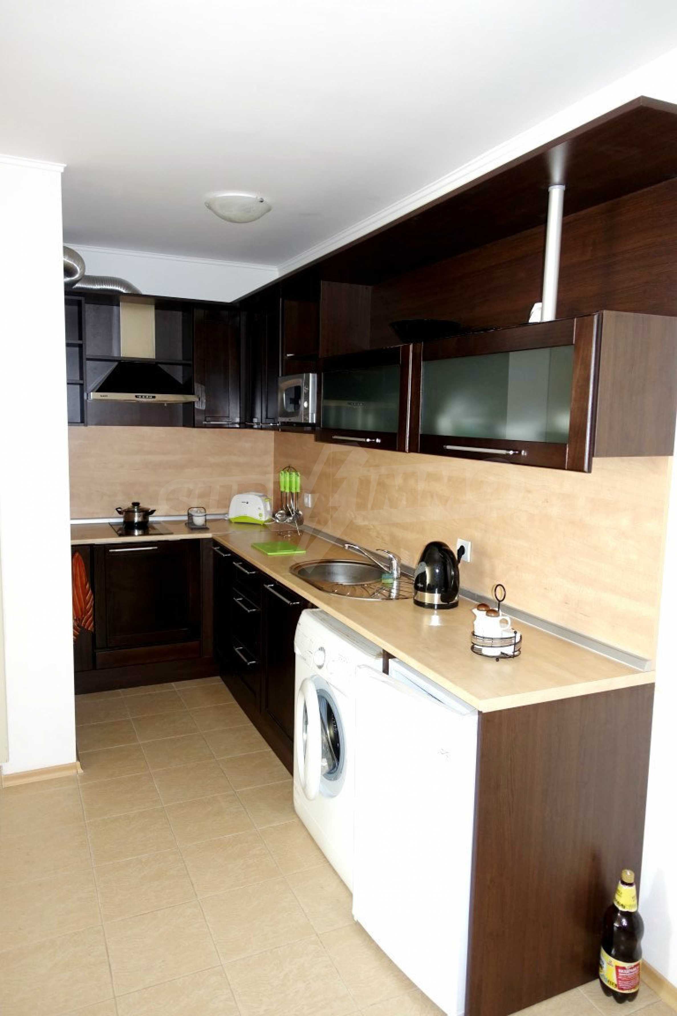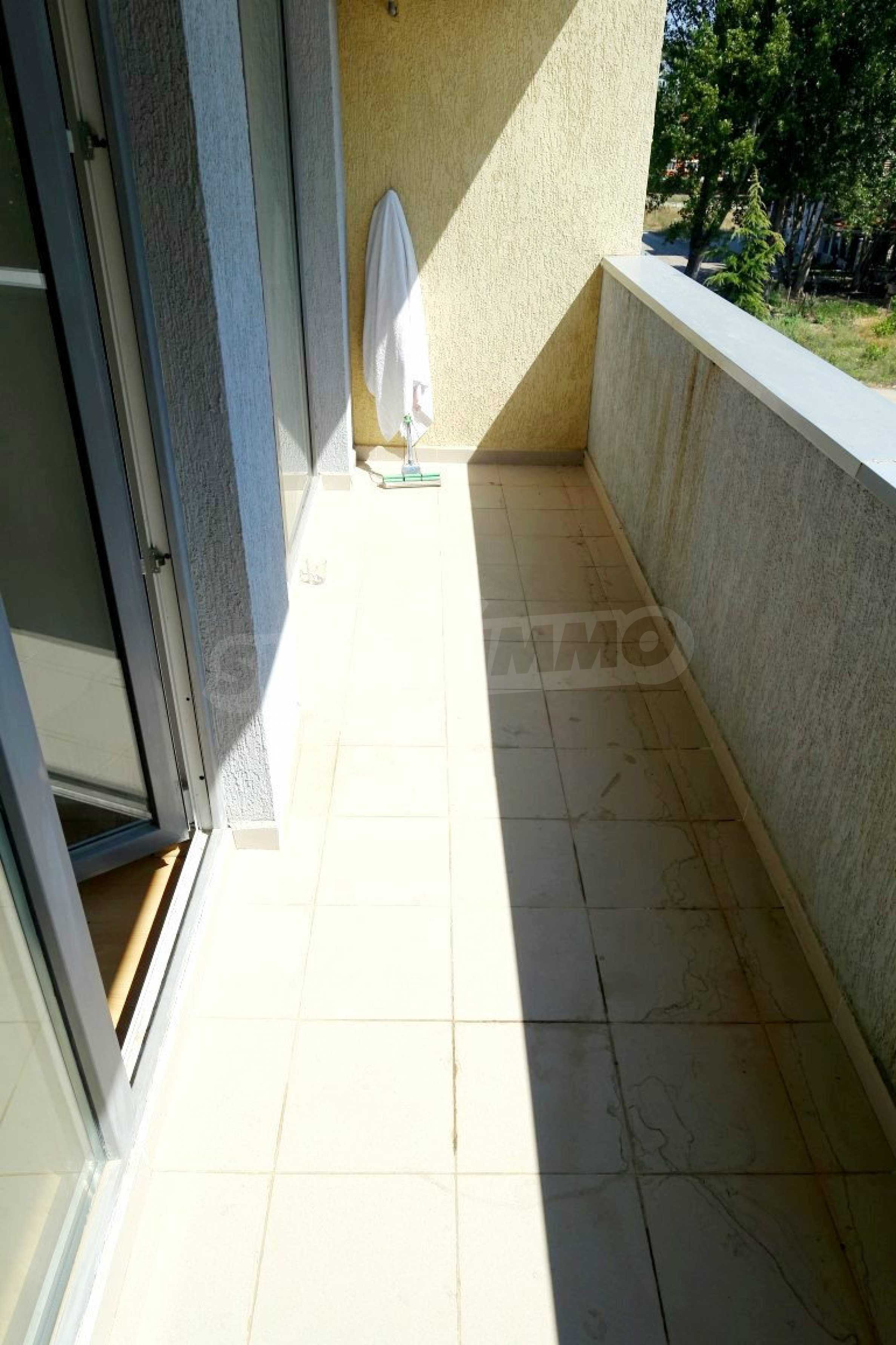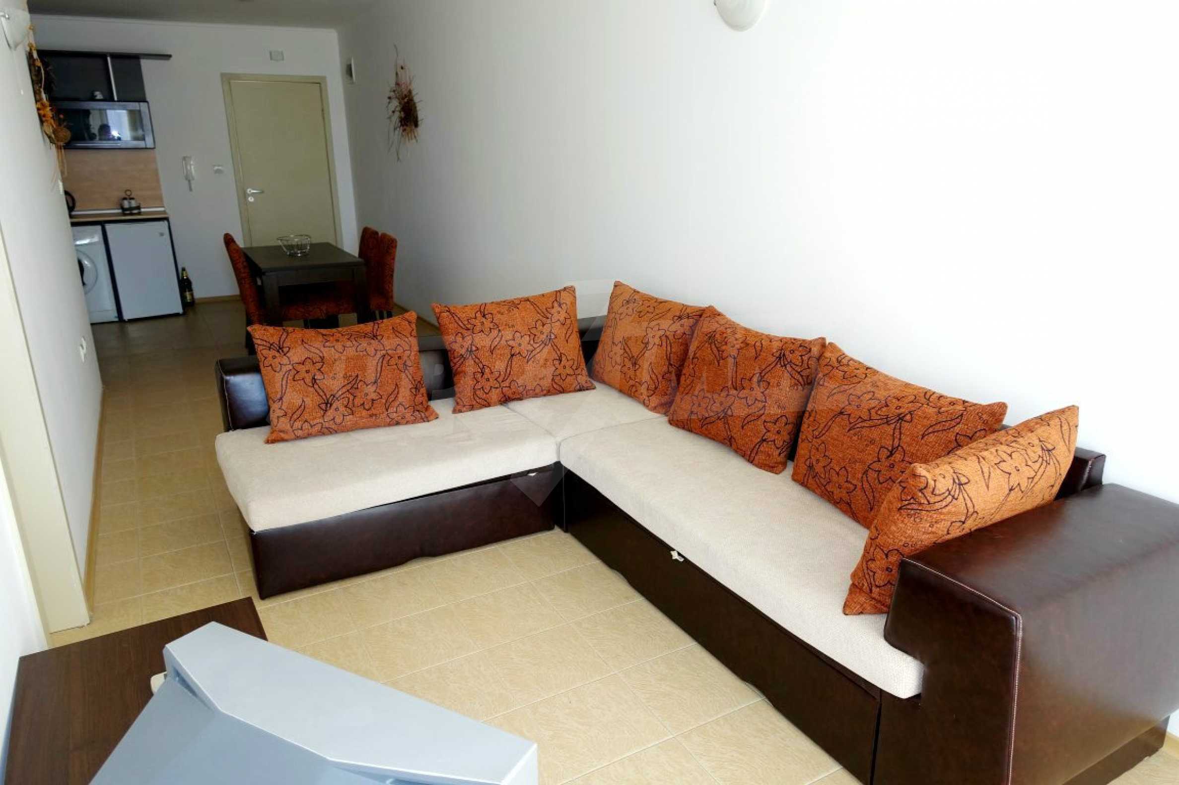 Компактен ваканционен имот с цялостно обзавеждане, слънчева тераса и оборудван кухненски бокс. Жилището е част от затворен комплекс „Прима”, намиращ се близо до златните плажове на Слънчев бряг.