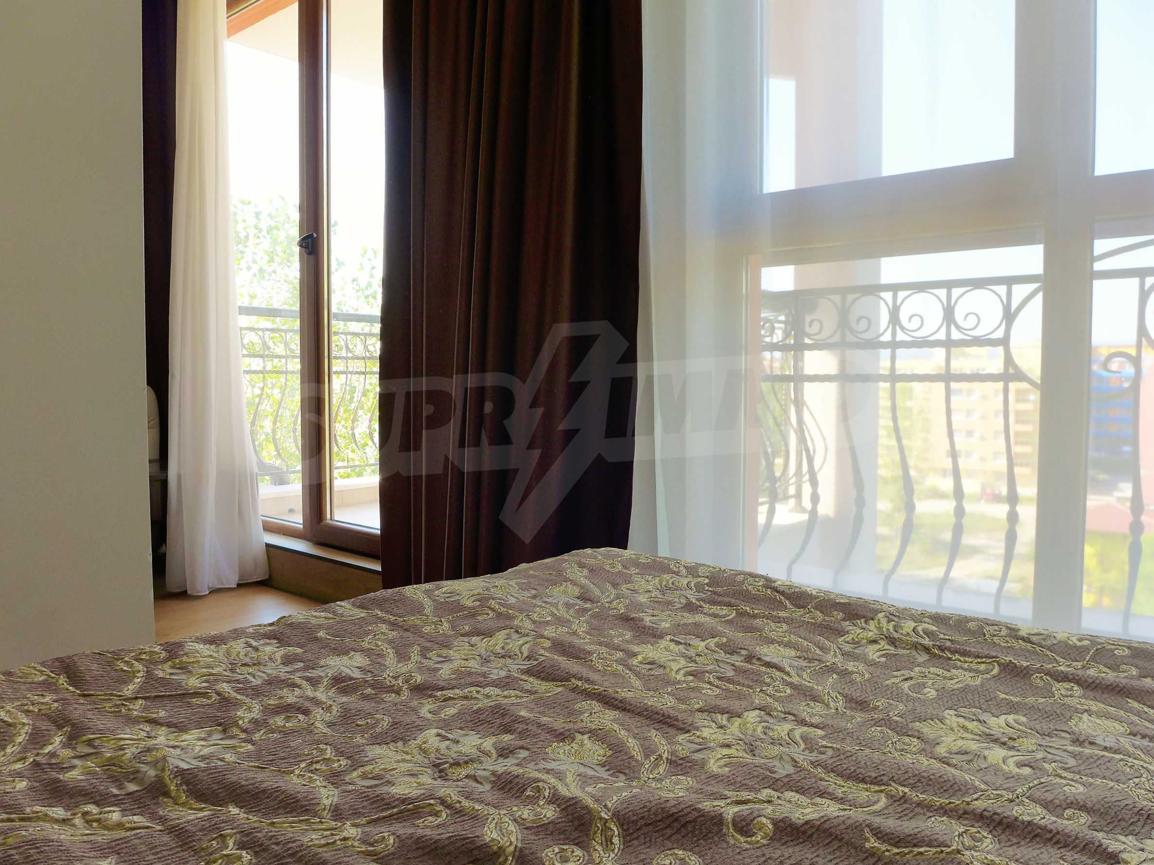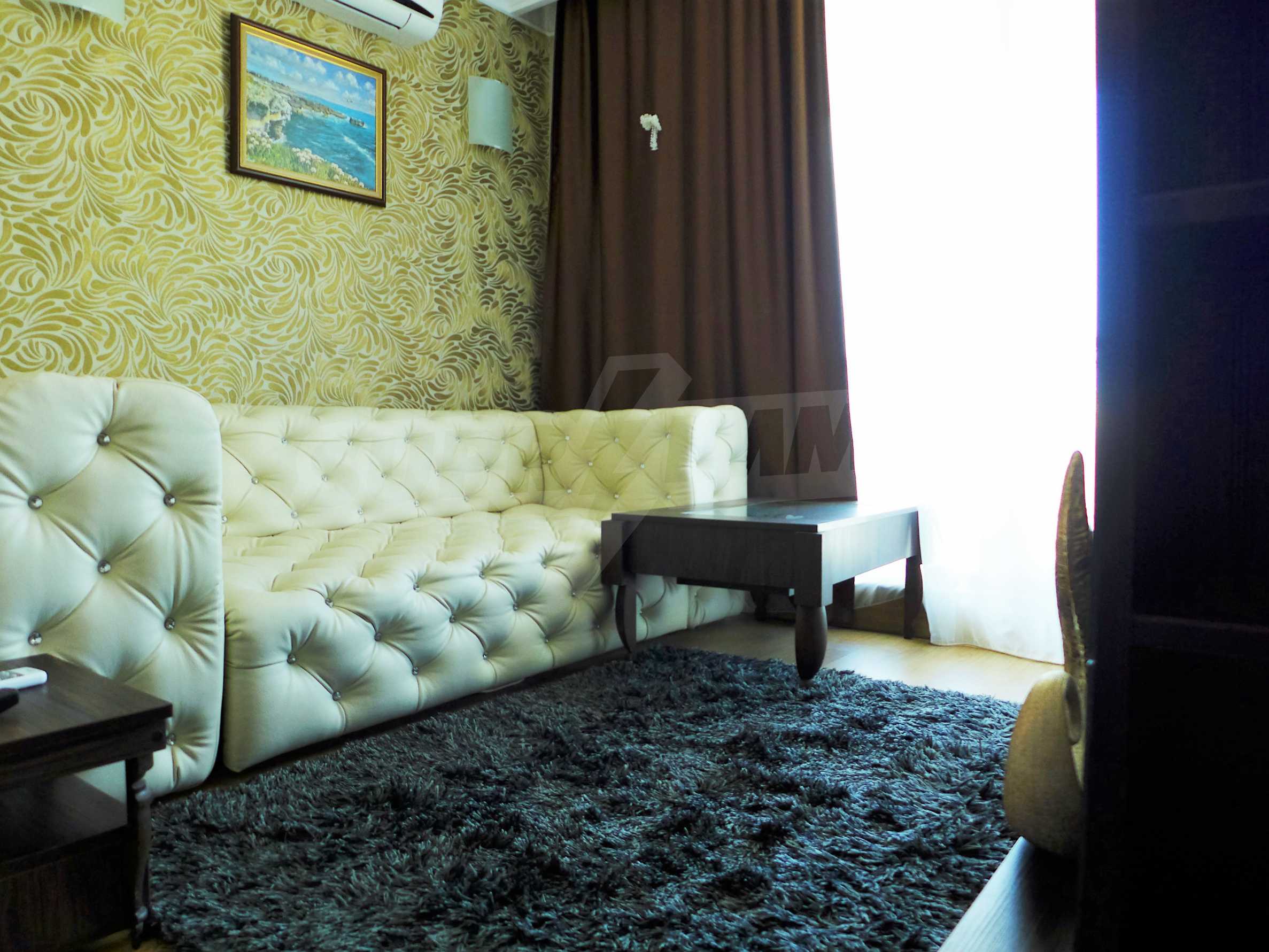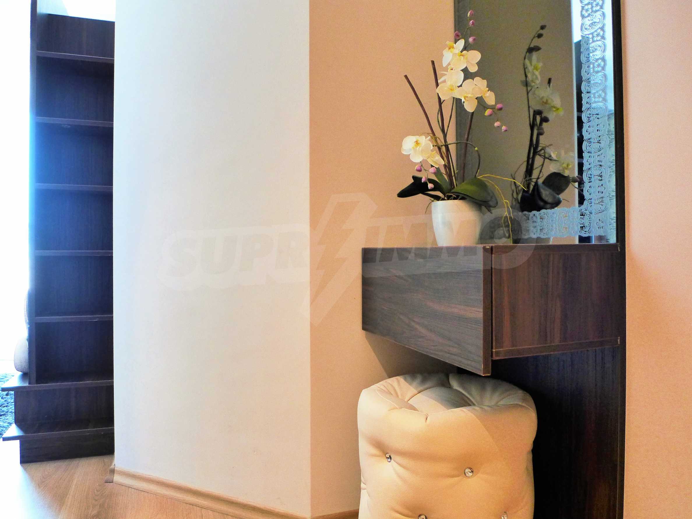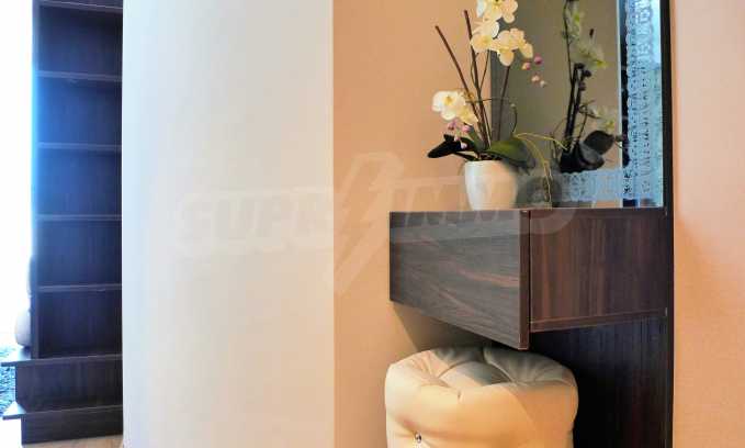 Апартаментът е стилно обзаведен с дизайнерски мебели. Разпределение: