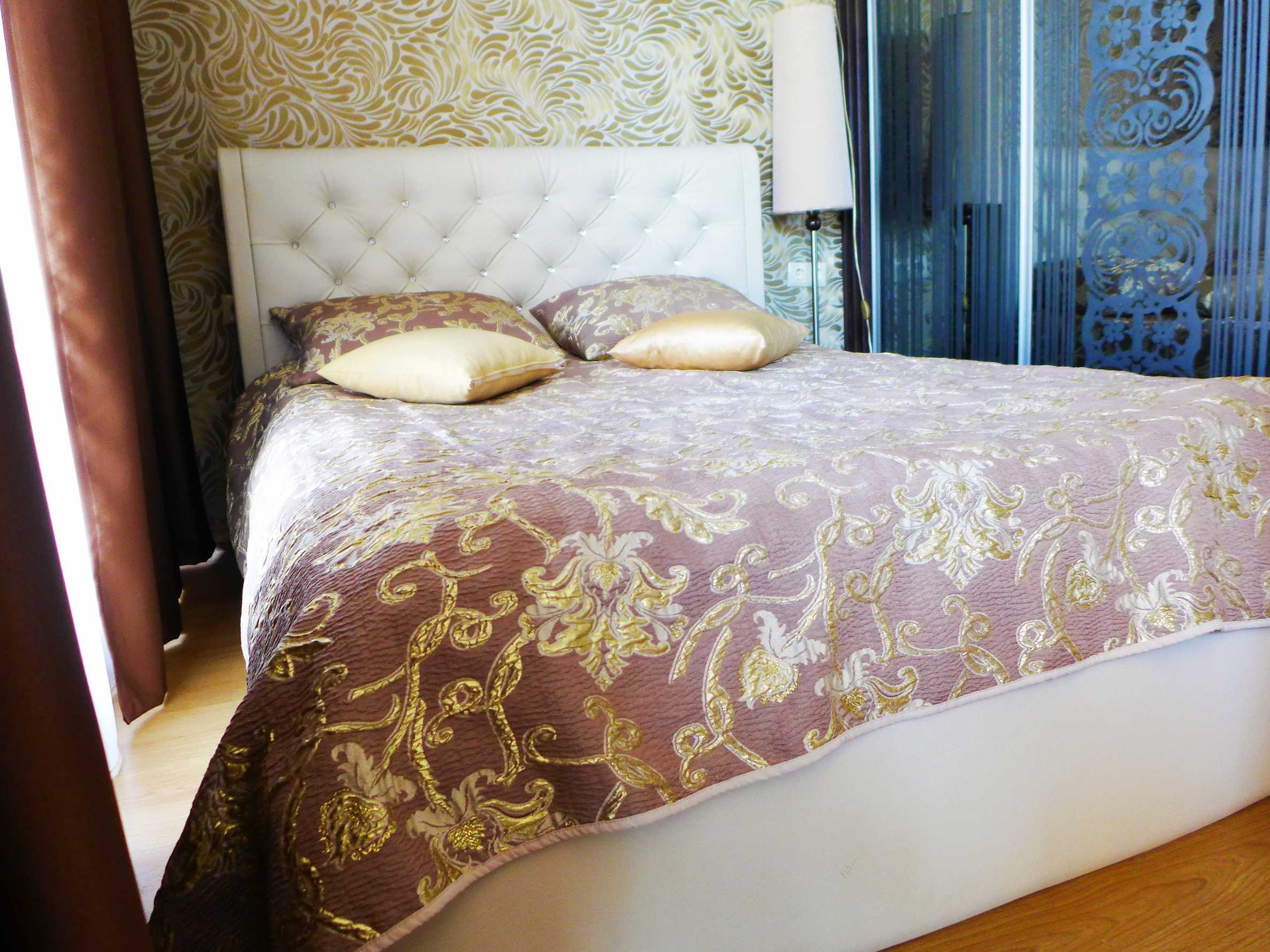 • Спалня: луксозни тапети, спално бельо, поръчкова дизайнерска мебел