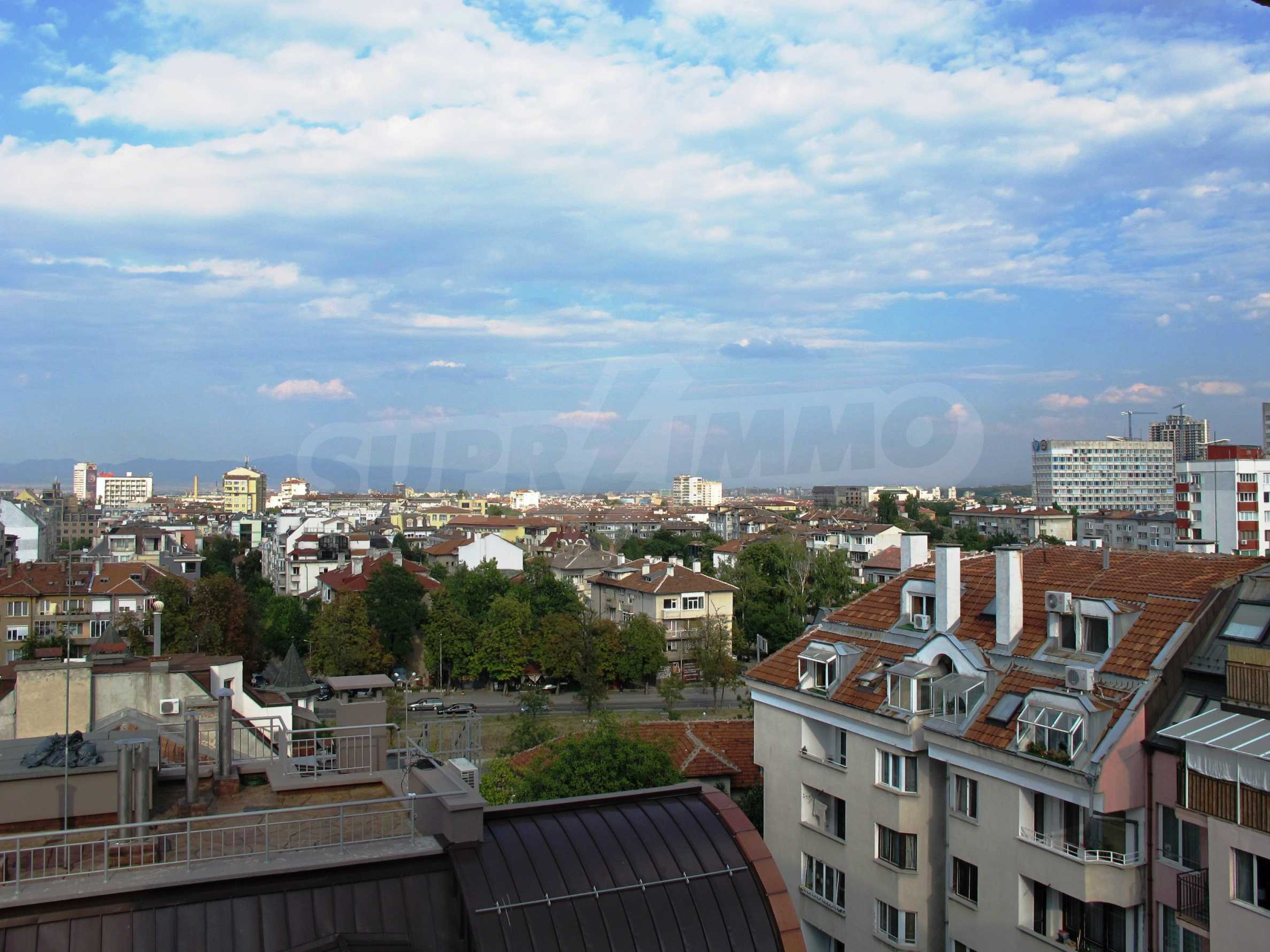 Жилището заема седми от общо осеметажната сграда. Изложението е североизток/югоизток, с разкриващи се гледки над града и планината. Общата квадратура на апартамента е 118 кв.м., чисто застроената площ е 105 кв.м. Апартаментът е саниран, предлага се качествено завършен: