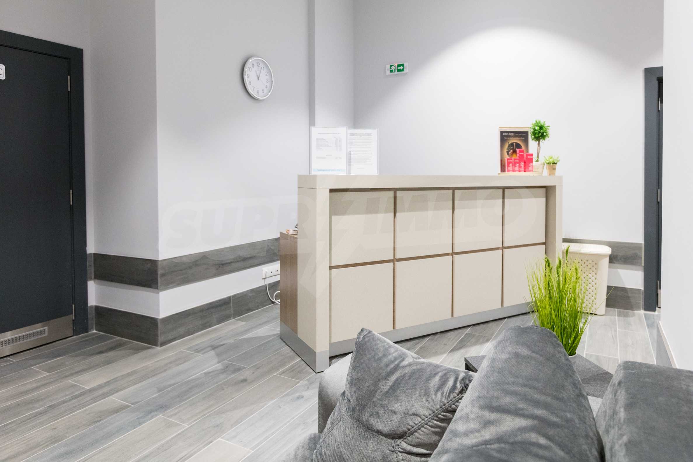 • луксозно завършени общи части с мрамор и мокет по подовете, комбинация от боя и тапет в светли тонове по стените, вградено осветление по тавани, картини, подчертаващи стила на сградата, и големи панорамни прозорци за завършек;