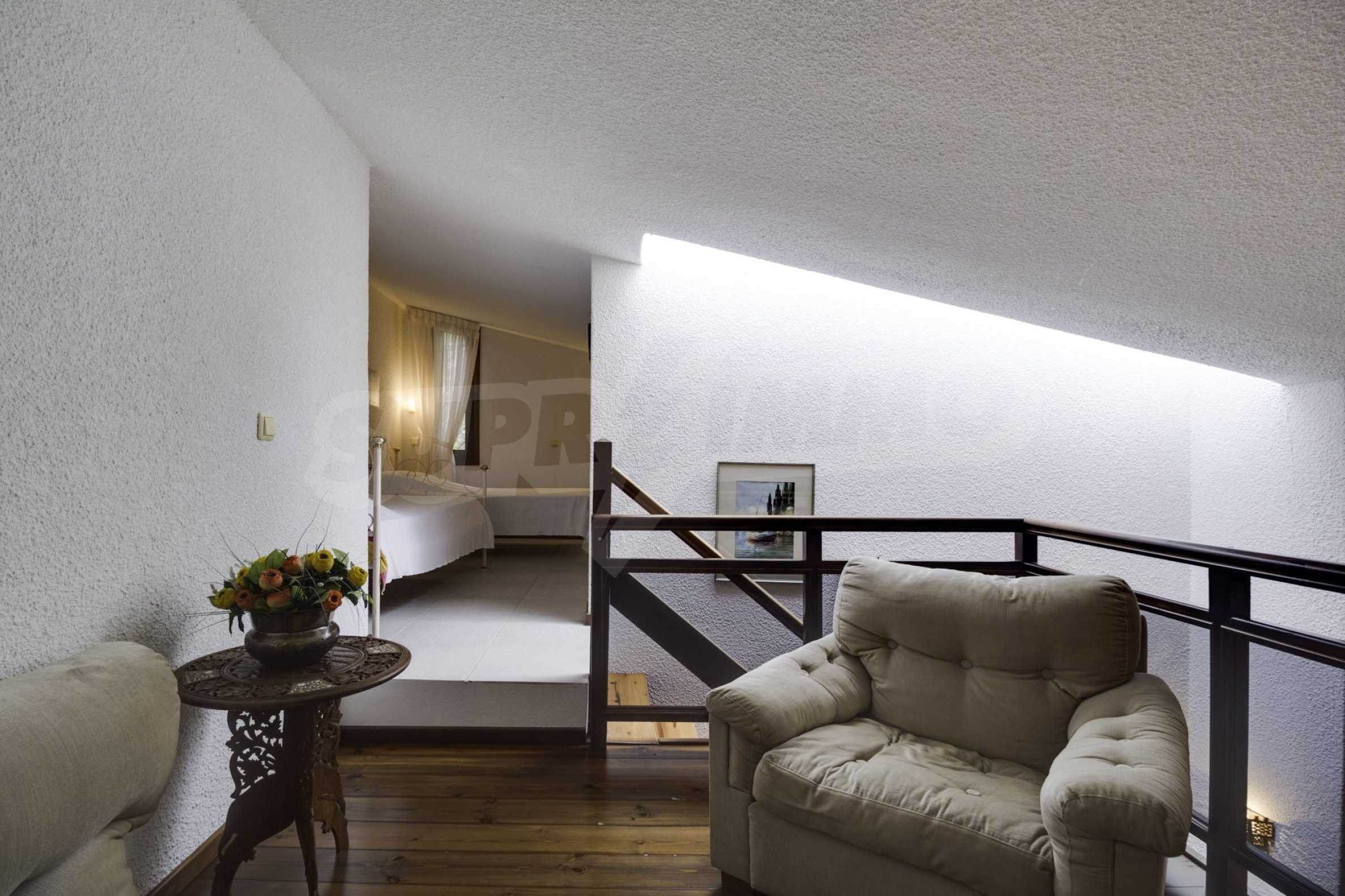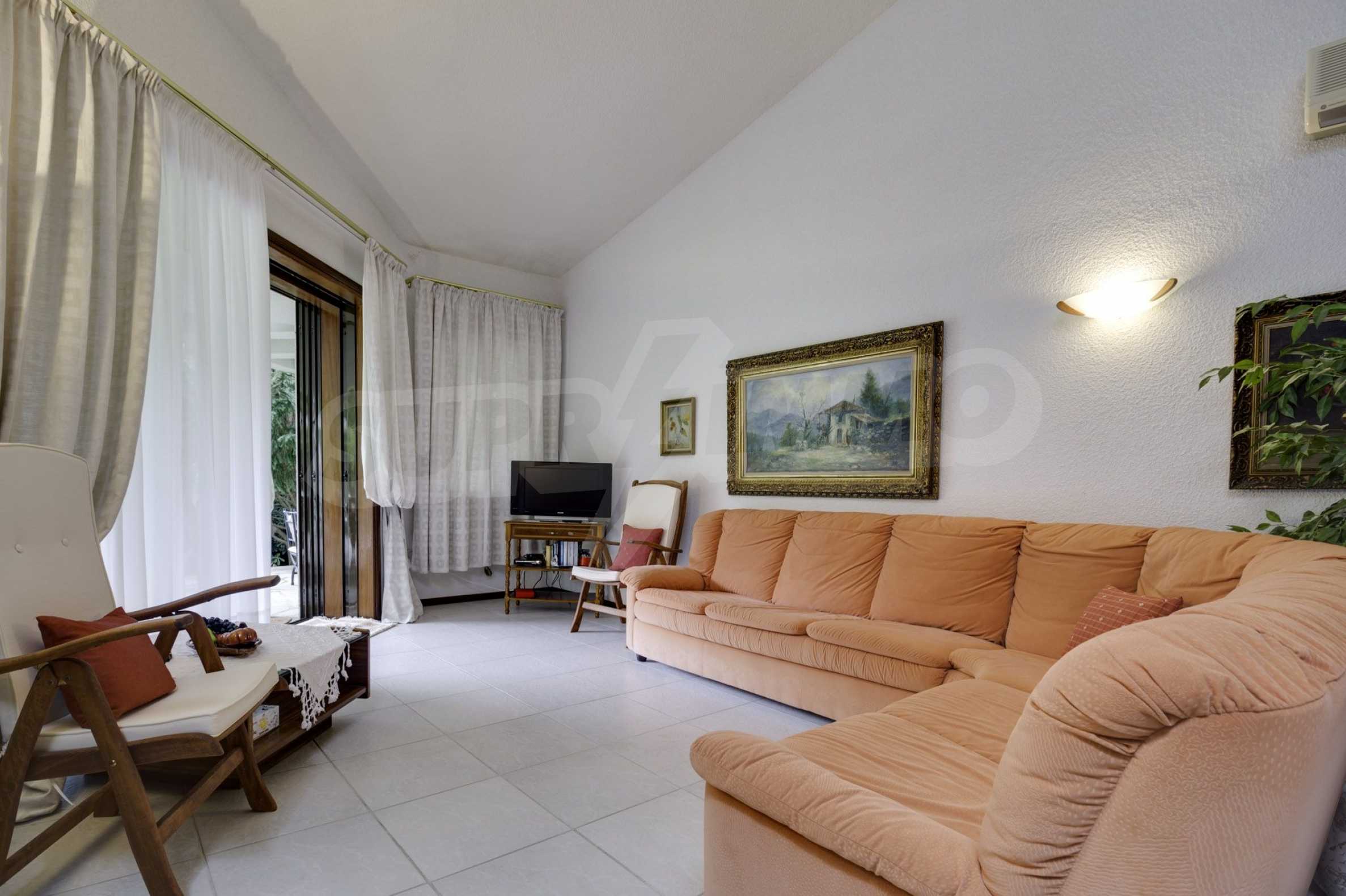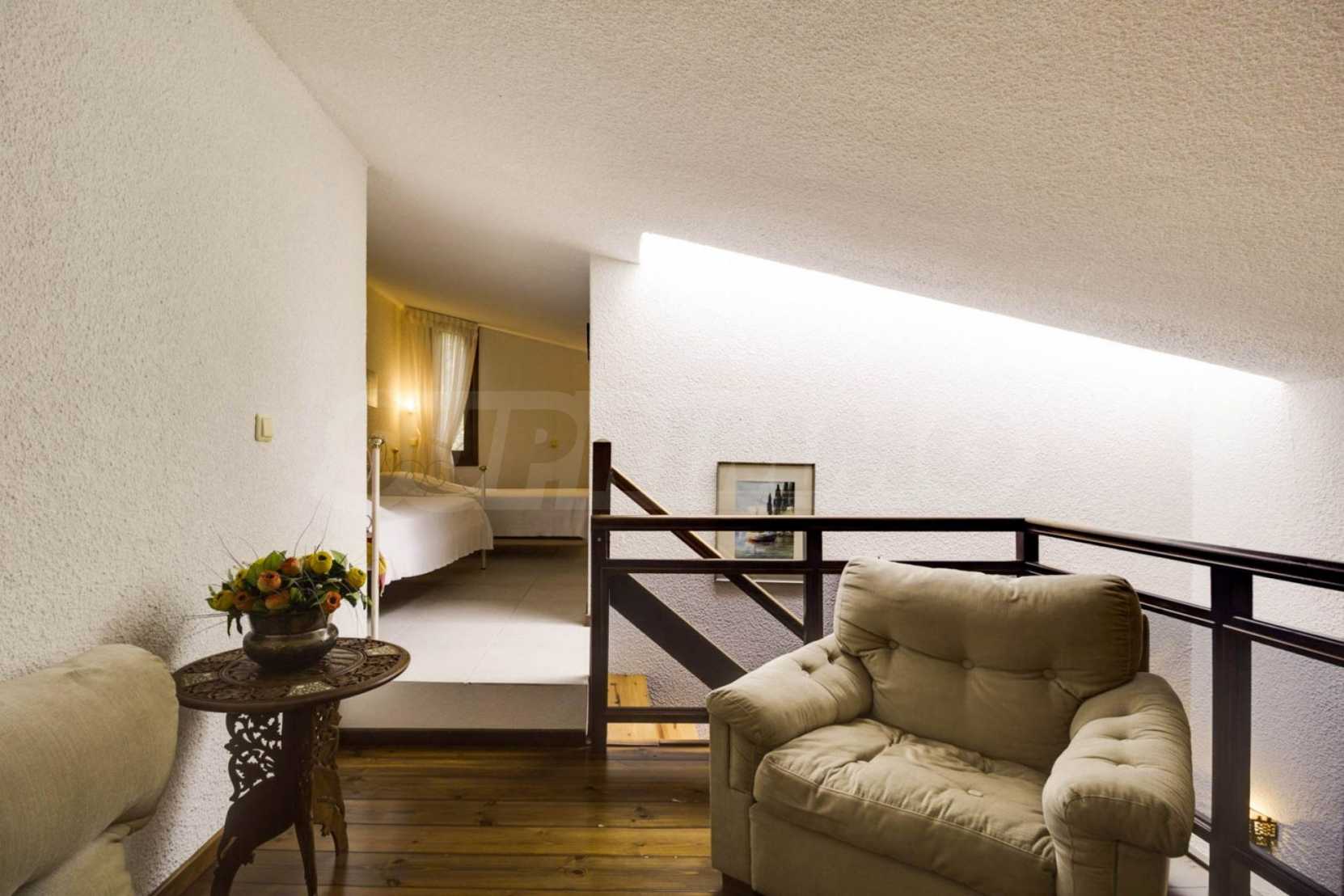 Имотът се предлага с алуминиева дограма, килер и таванско помещение. Отоплението се осъществява посредством електрически печки, камина, парно на ток и слънчеви колектори. Има климатизация.