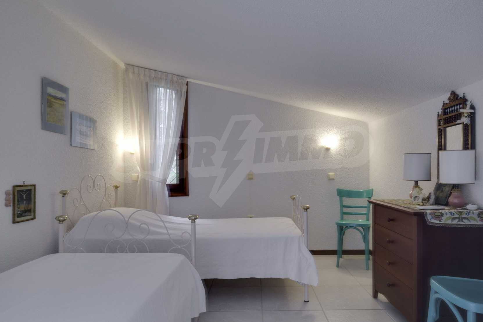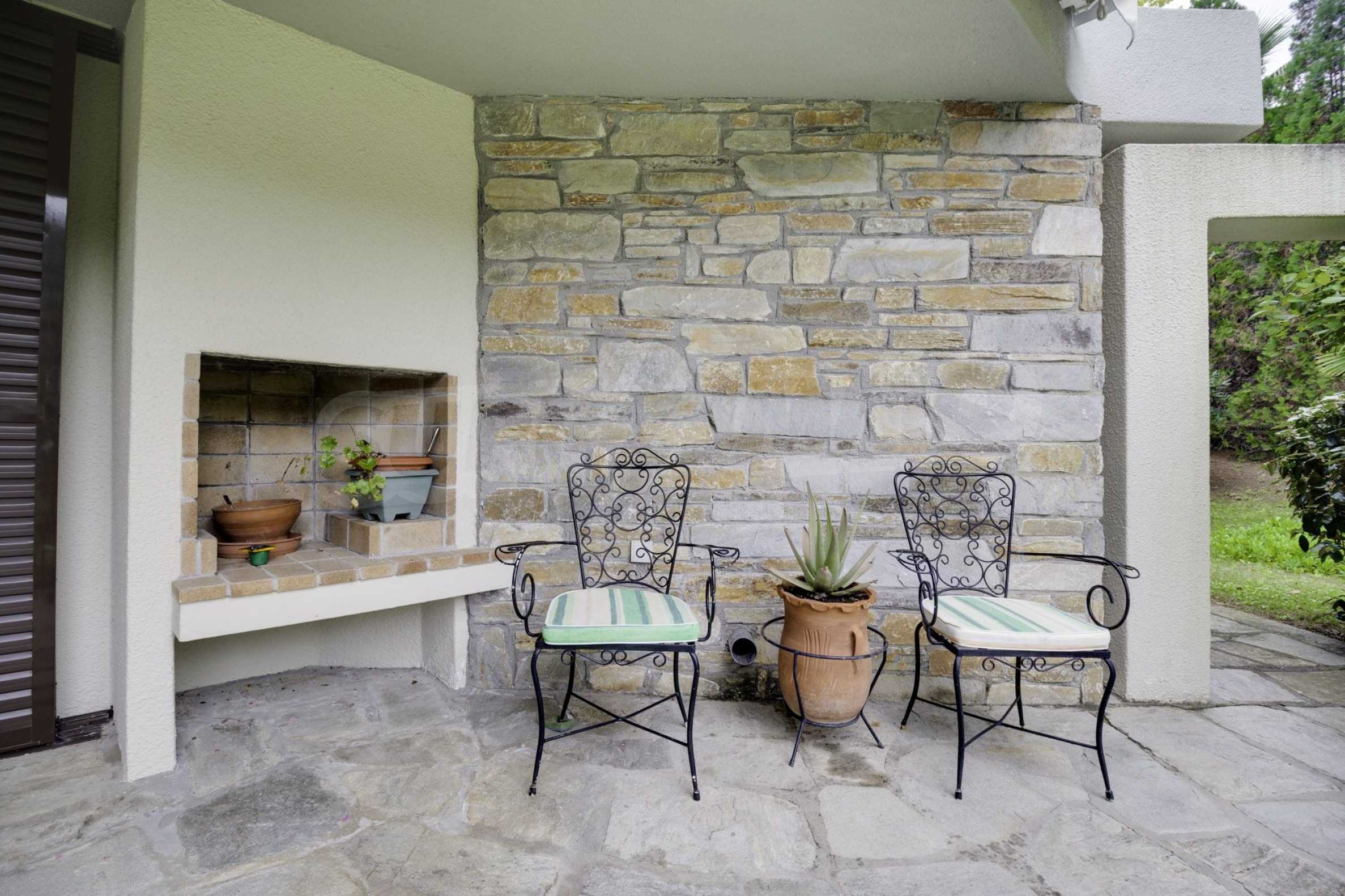 В допълнение къщата разполага с градина, която се простира върху 800 кв.м, и предлага басейн, барбекю зона и паркинг.