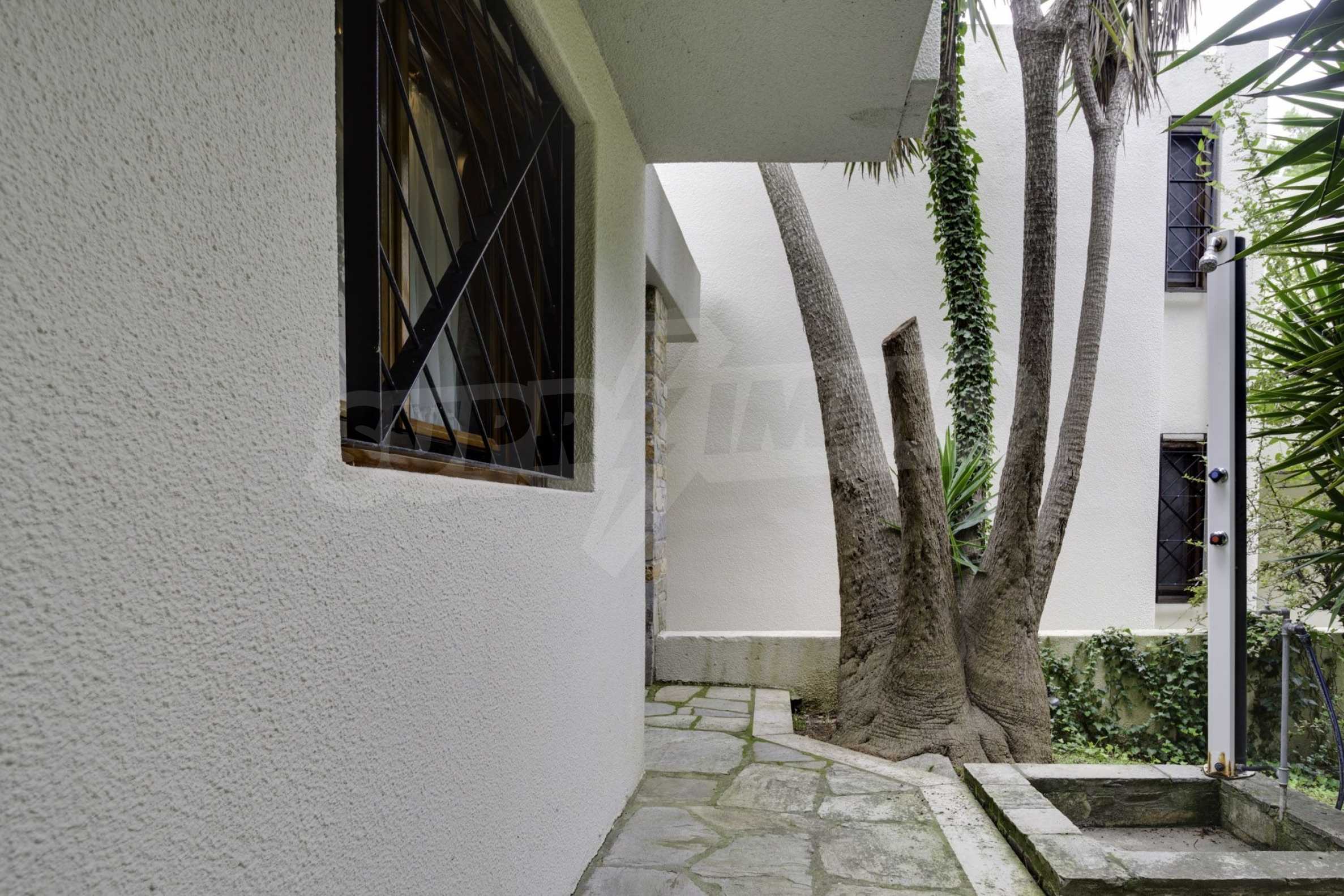 Тази прекрасна къща е разположена във ваканционно селище Сани, част от ръкава Касандра на полуостров Халкидики. Вилата е построена през 1995 година и е изцяло реновирана през 2012 година. Тя се простира върху жилищна площ от 90 кв.м. и е напълно обзаведена. Разполага с кухня и трапезария, хол, две спални, баня с тоалетна.