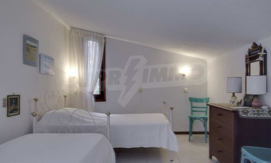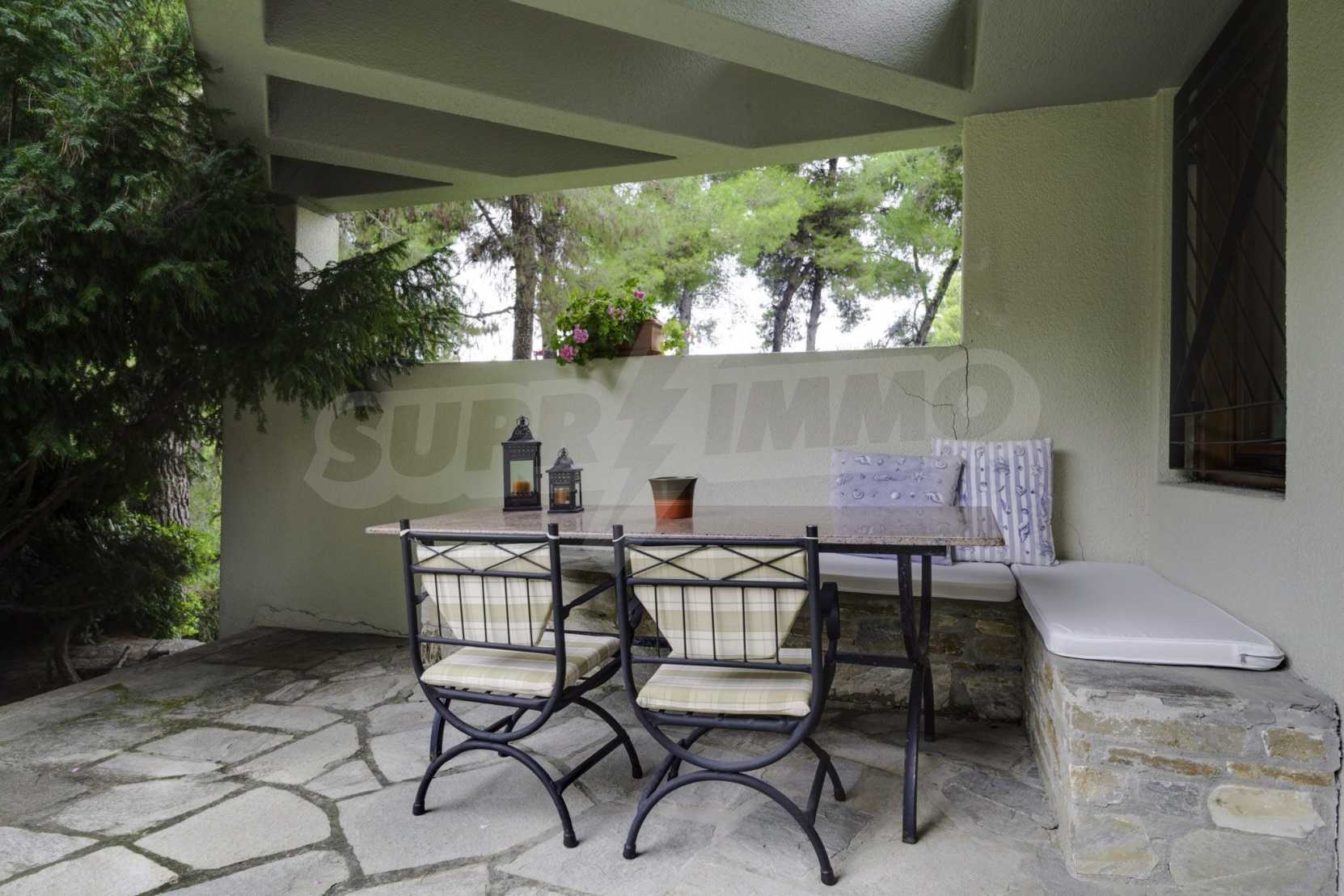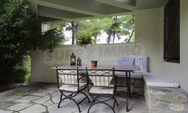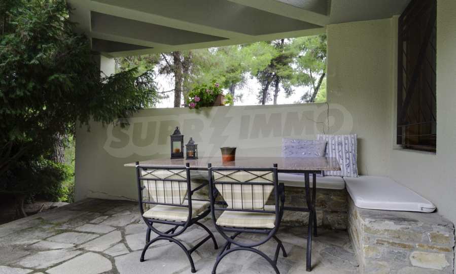 Тази прекрасна къща е разположена във ваканционно селище Сани, част от ръкава Касандра на полуостров Халкидики. Вилата е построена през 1995 година и е изцяло реновирана през 2012 година. Тя се простира върху жилищна площ от 90 кв.м. и е напълно обзаведена. Разполага с кухня и трапезария, хол, две спални, баня с тоалетна.