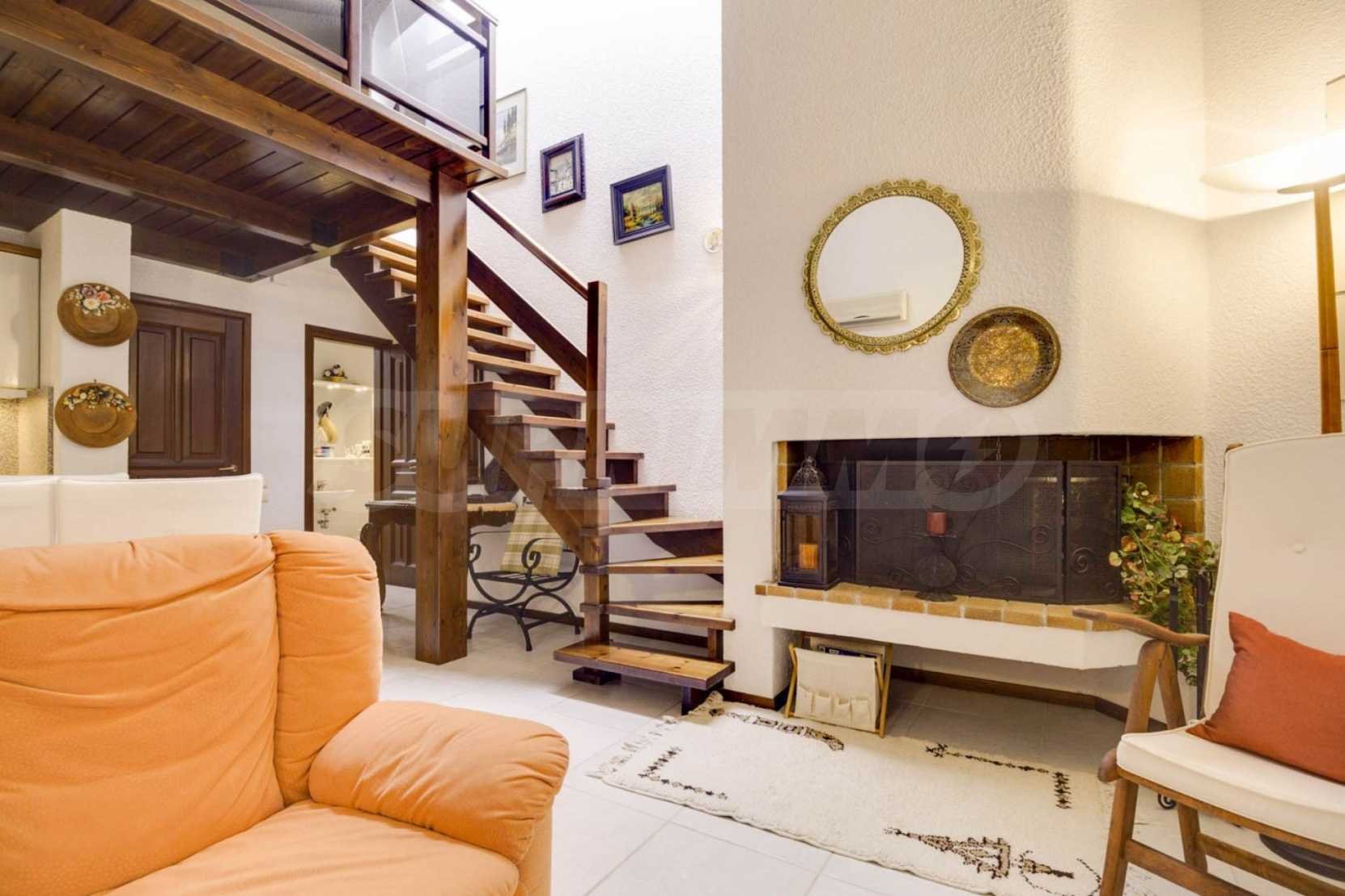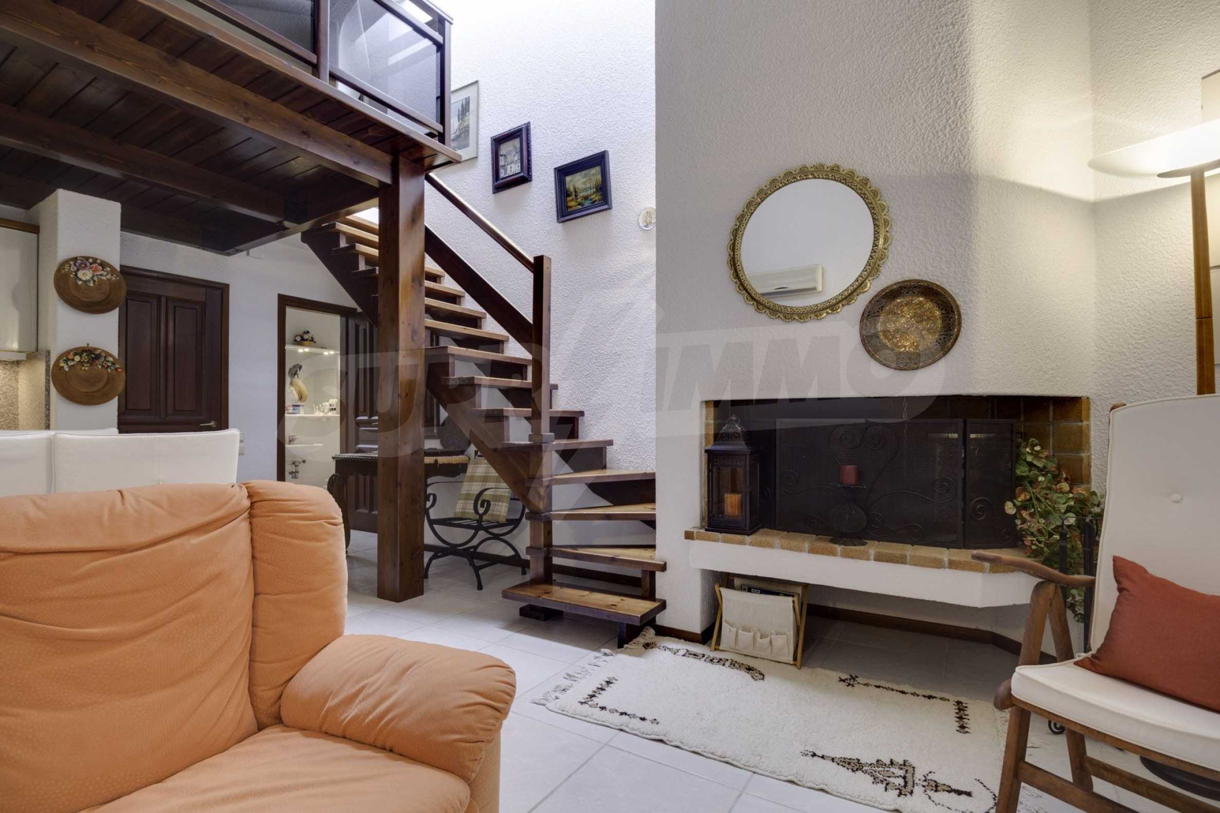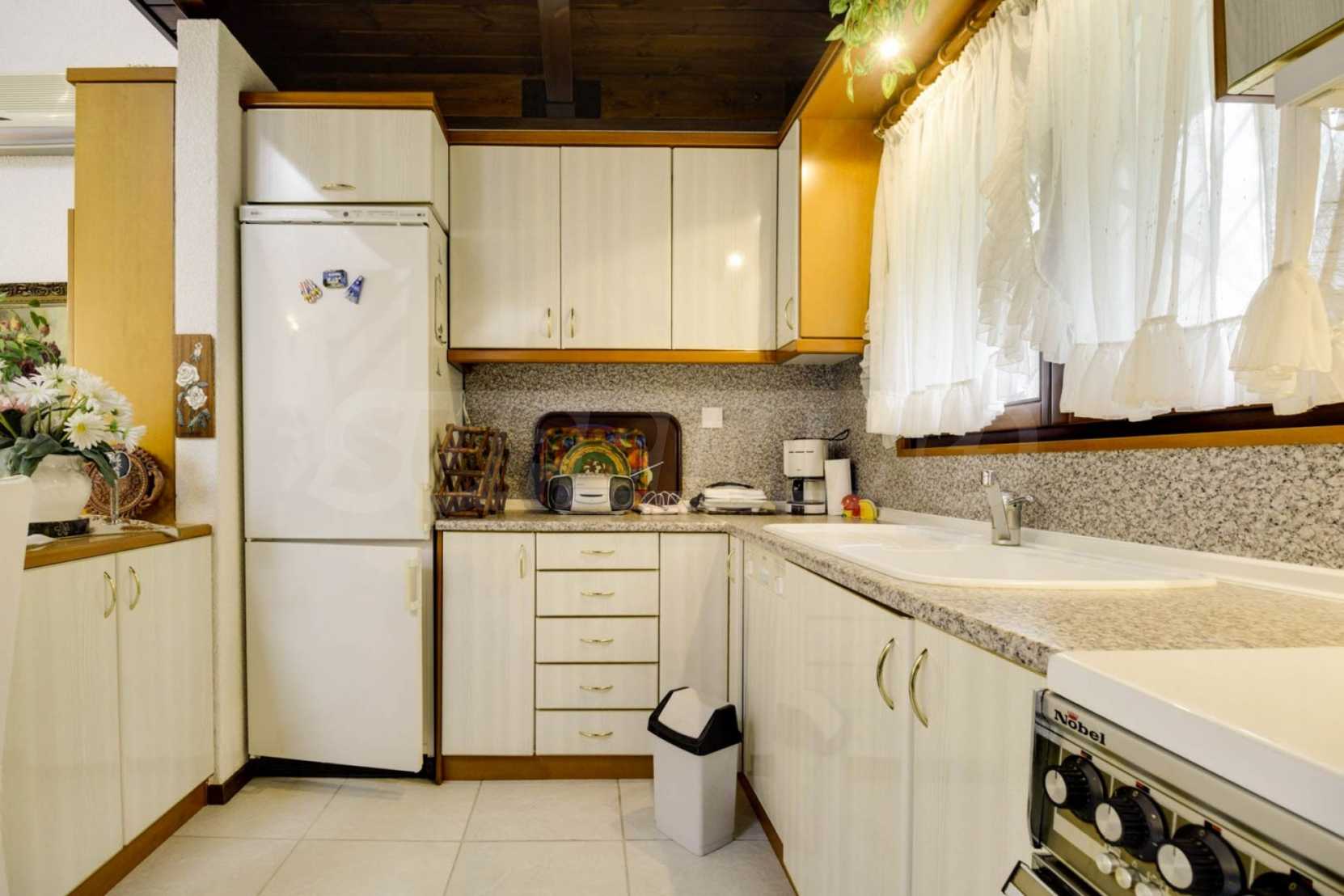 Имотът се предлага с алуминиева дограма, килер и таванско помещение. Отоплението се осъществява посредством електрически печки, камина, парно на ток и слънчеви колектори. Има климатизация.