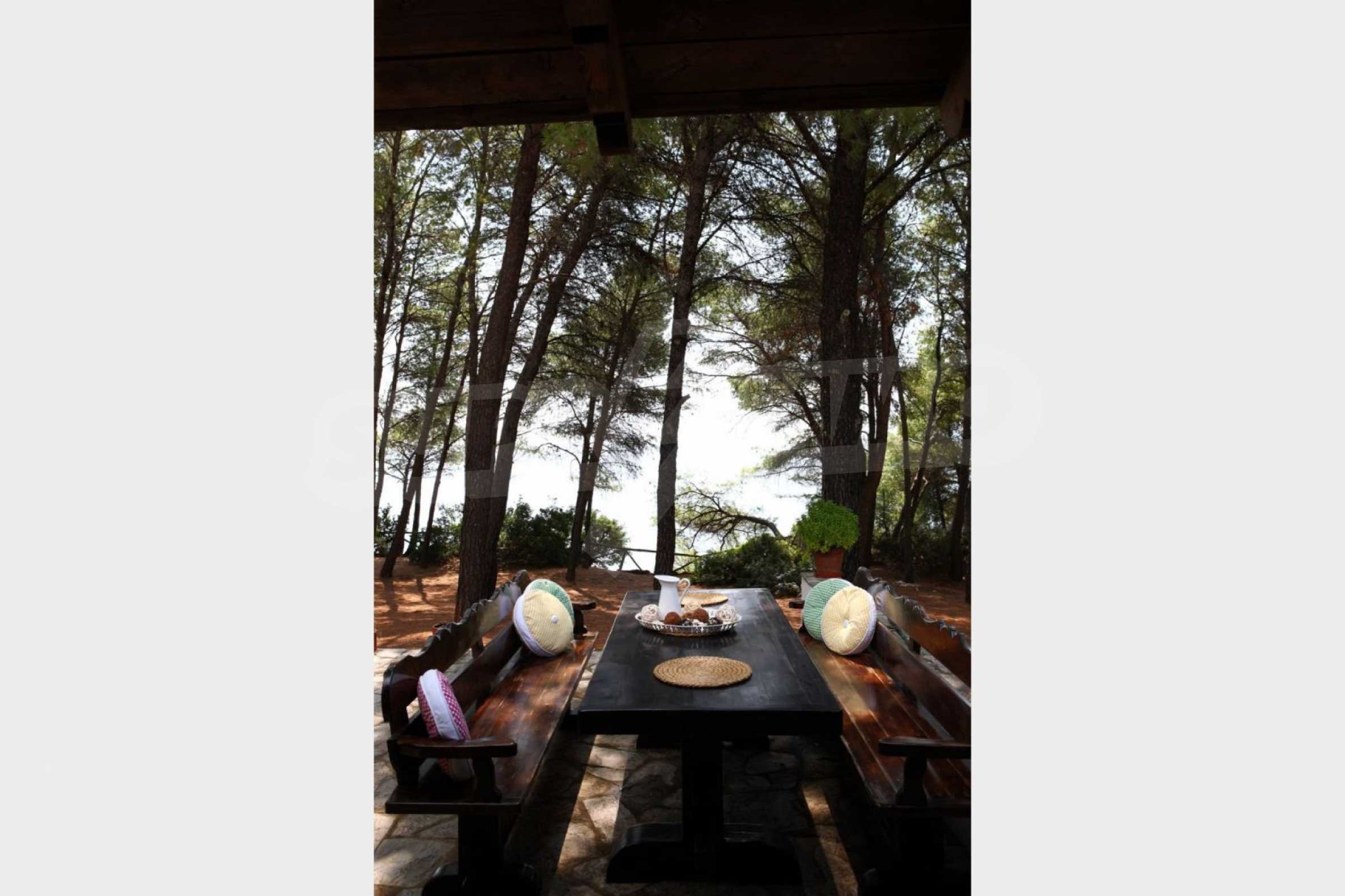 Отоплението се осъществява посредством камина и климатизация. Имотът се предлага с дървена дограма и подове с дюшеме. Имотът разполага с килер, мазе и паркинг. От имота се разкрива гледка към морето, като плажът е в непосредствена близост. Около къщата има голям парцел от 5200 кв.м с много дървета и зеленина.