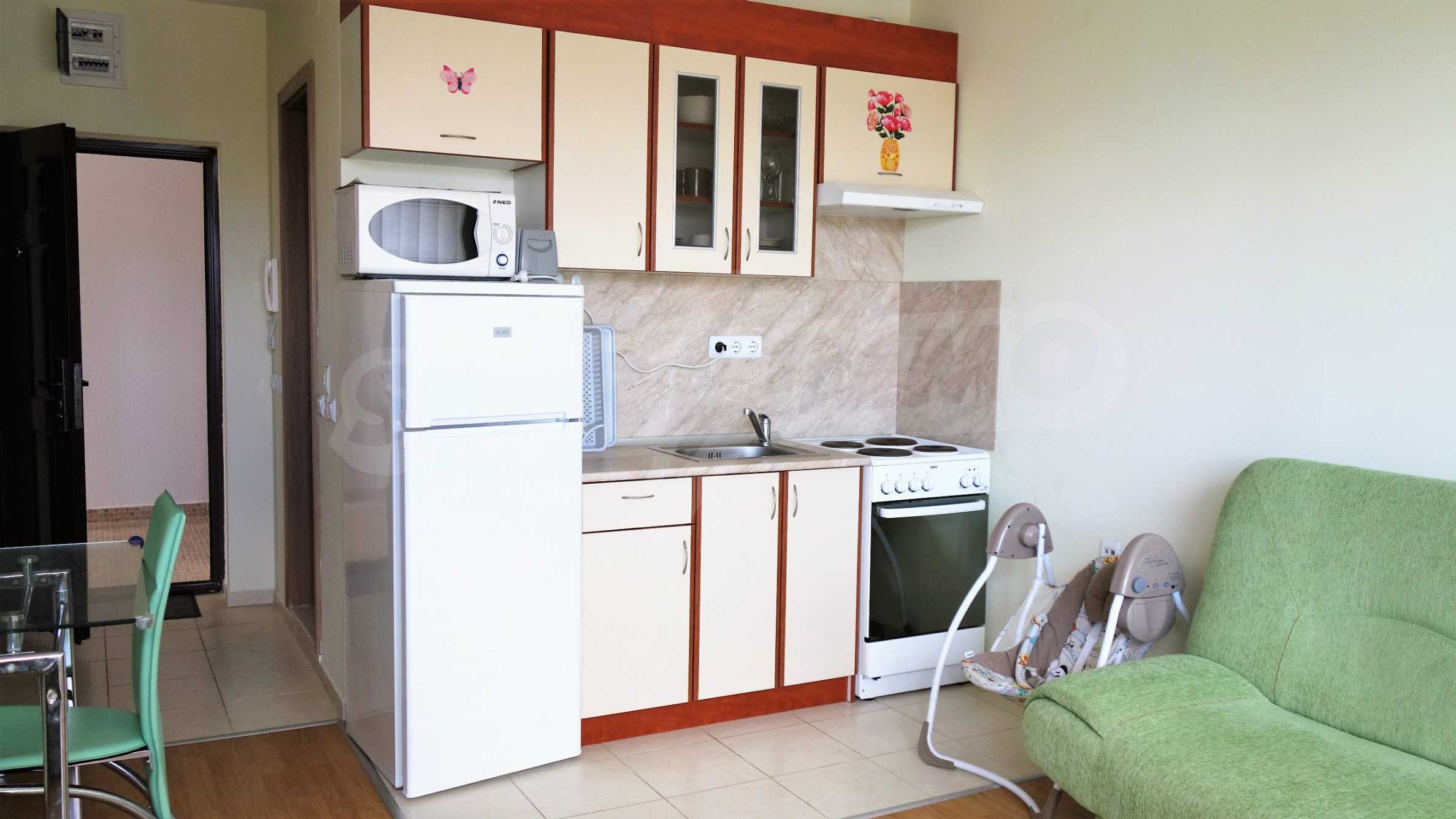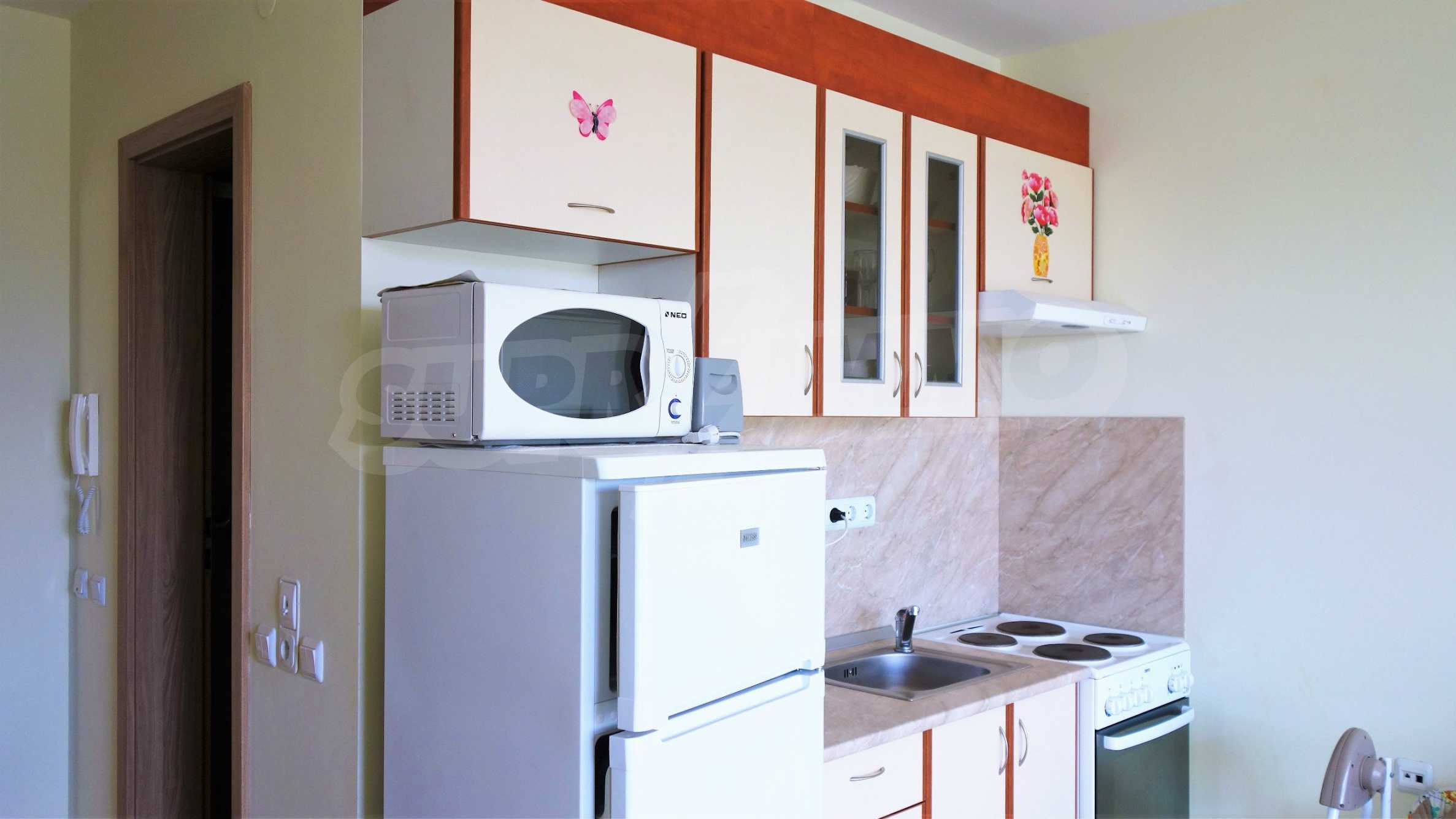 Готово за нанасяне студио в комплекс Орхидея Форт Нокс / Orchid Fort Noks, разположен в тих район извън оживения курортен център Слънчев бряг, на главния път Бургас-Варна, на 900 м от плажа и на 250 метра от автобусна спирка.