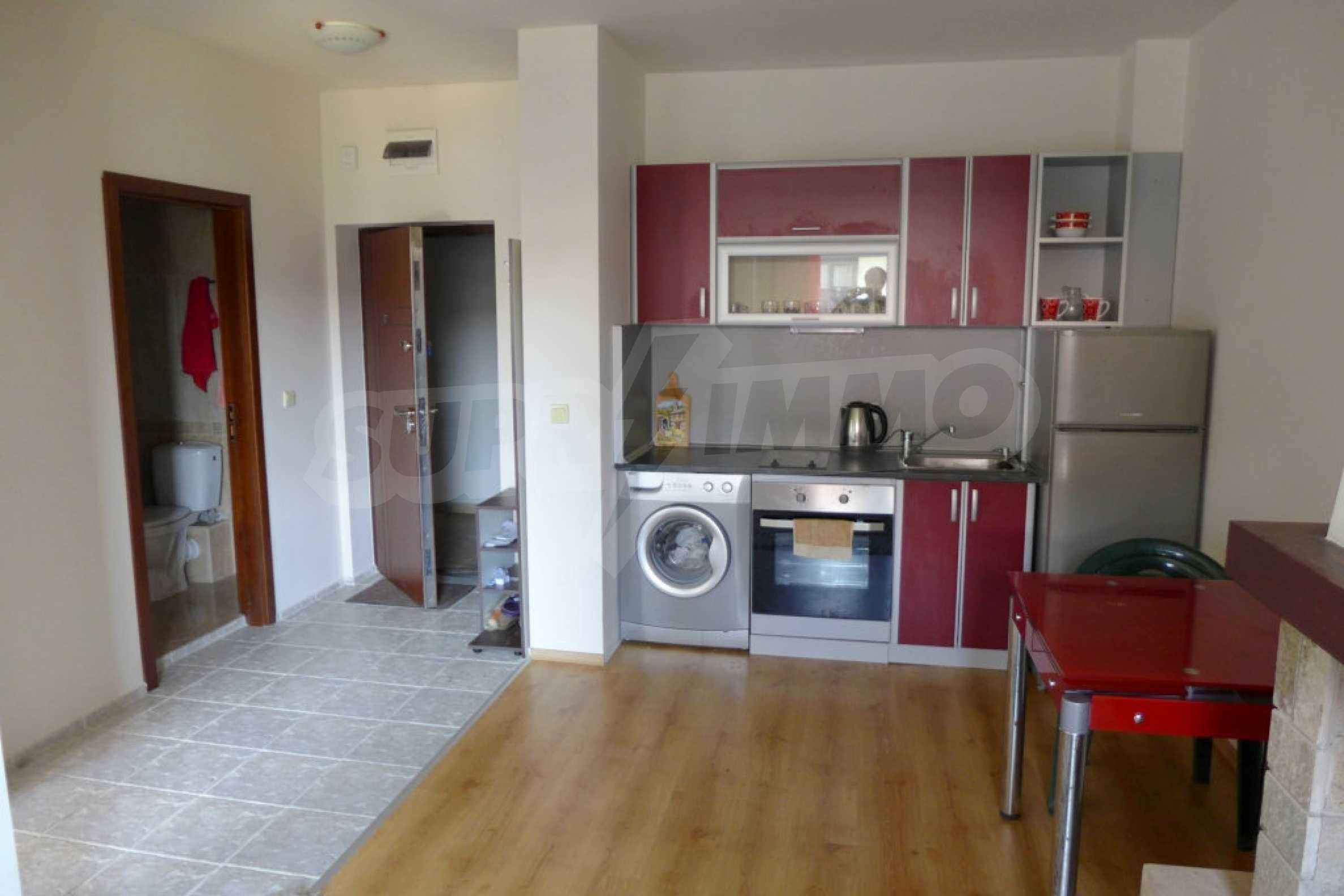 Атрактивен, готов за нанасяне двустаен апартамент в затворен комплекс Edelweiss Inn, сгушен в полите на Пирин планина, на около 400 метра от началната станция на кабинковия лифт. Таксата поддръжка на общите части е 10 EUR/кв.м.
