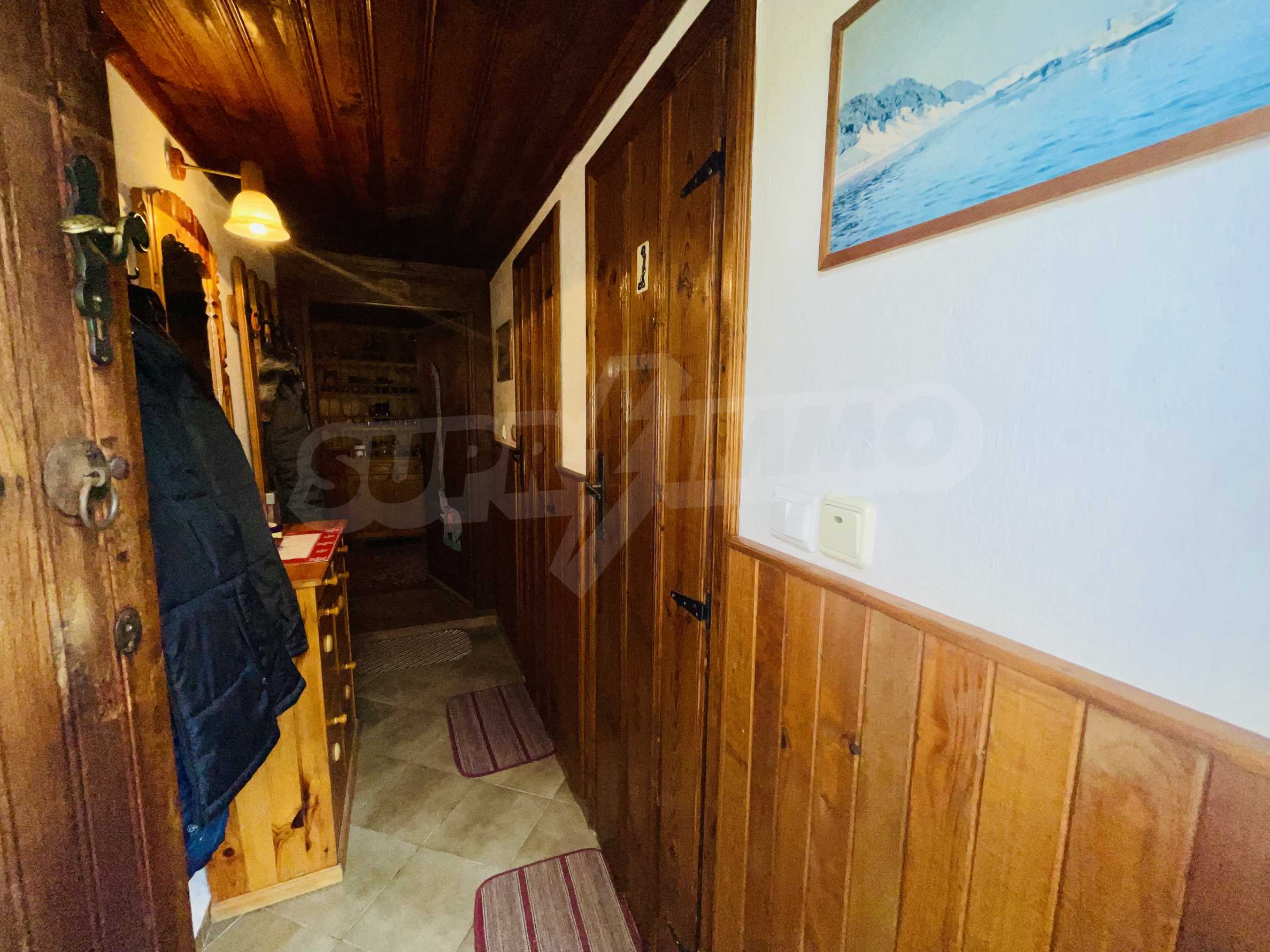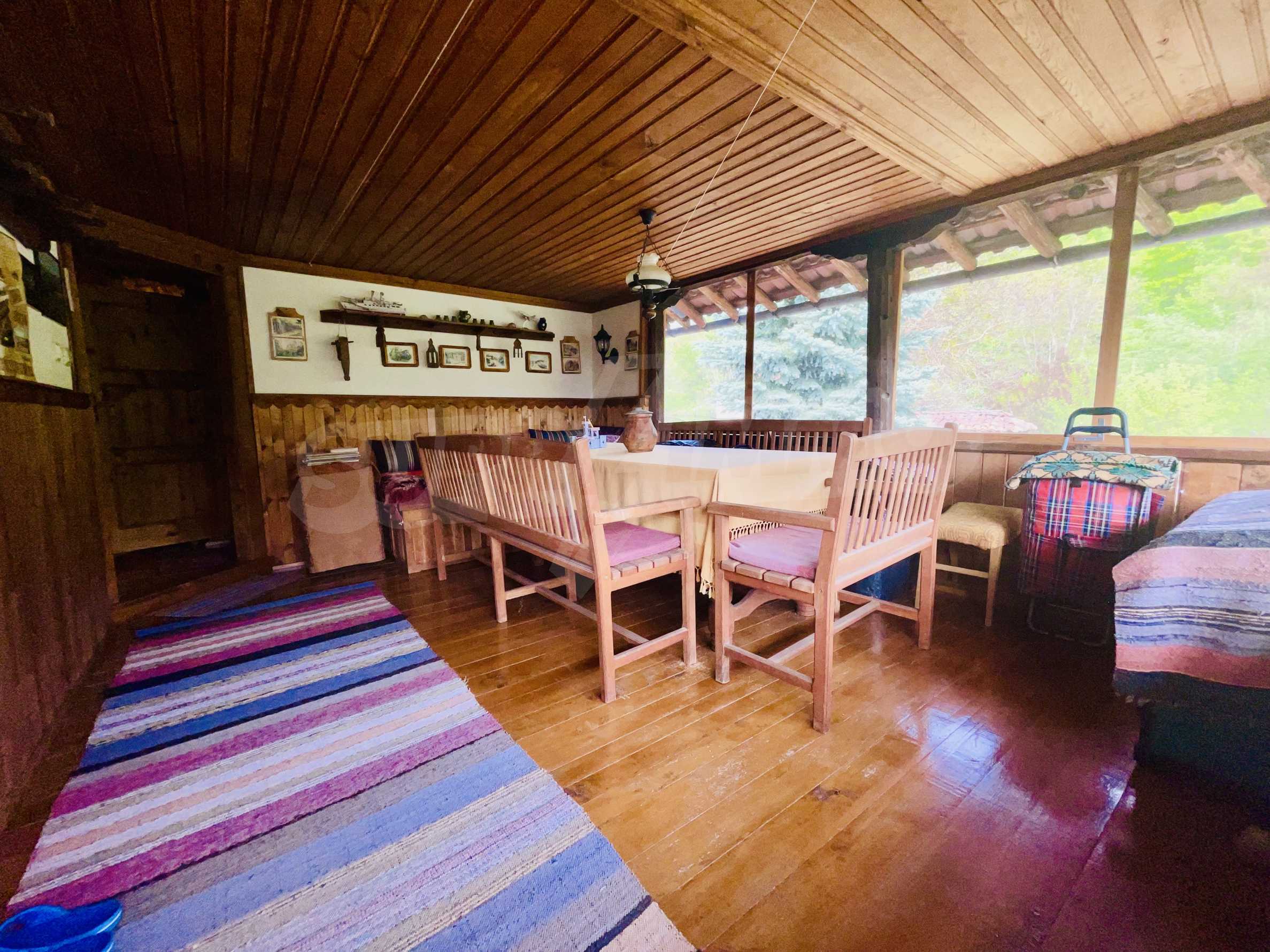 Къщата е на два етажа, обзаведена по поръчка в битов стил, с РЗП 168 кв.м. Къщата се състои от три спални, кухня , две общи стаи, голям чардак, складово помещение,три тоалетни, баня (душ), ток, вода,телефон, сателитна ТВ, интернет, СОТ. Целогодишен достъп. Парцелът е с големина от 1000 кв.м. Цветна и овощна градини. Барбекю, гараж, помощни постройки. Отопление с ток и твърдо гориво. Долният етаж е теракот върху бетонна плоча с подово отопление. Имотът се намира на брега на река. Продава се с обзавеждането.