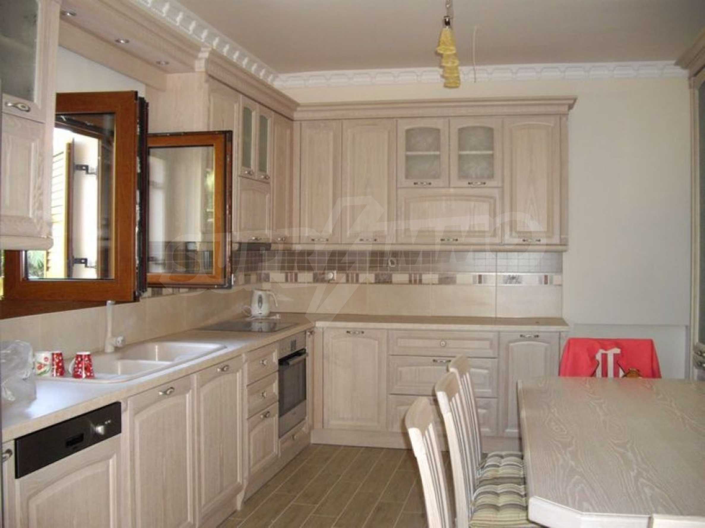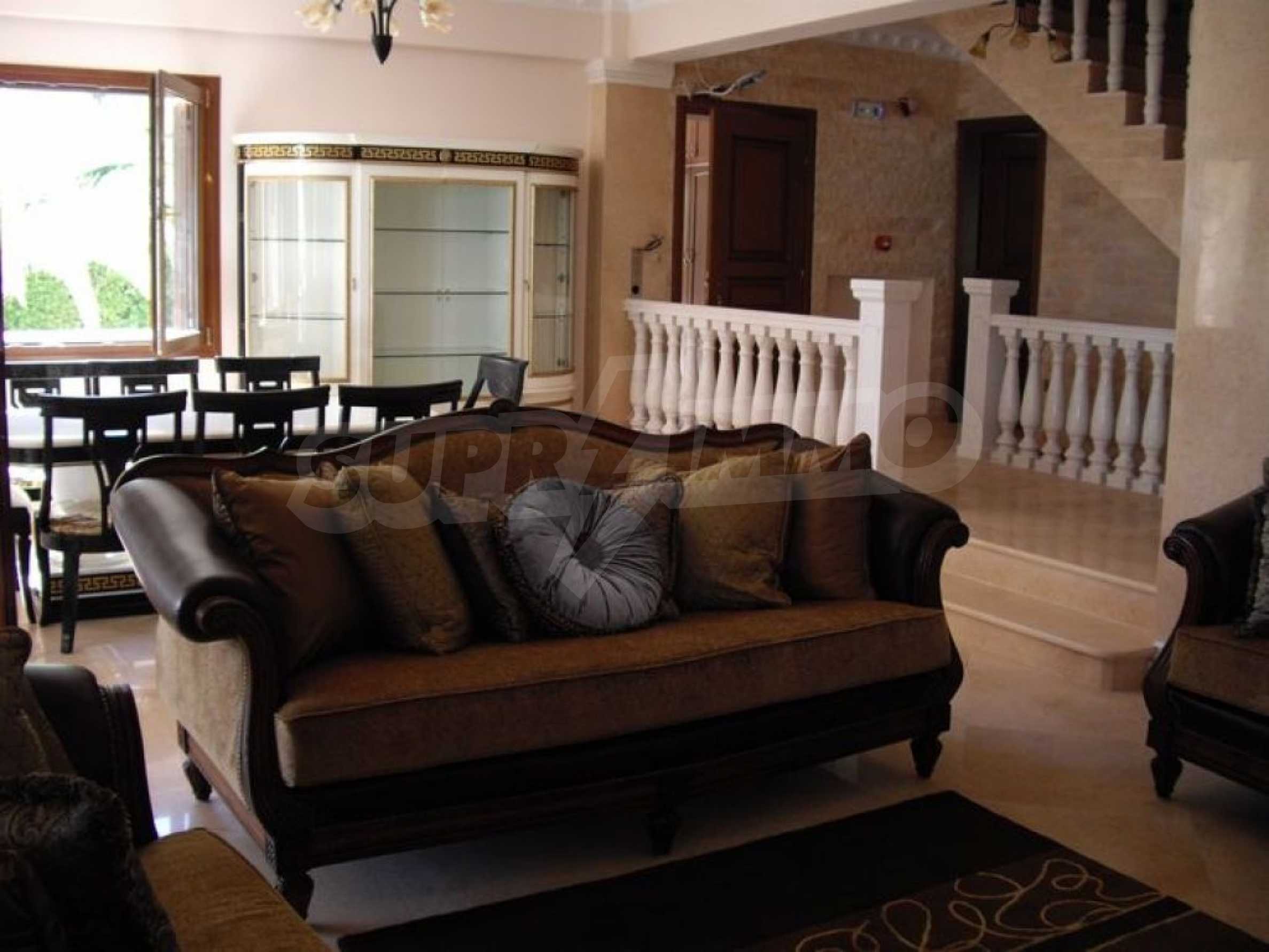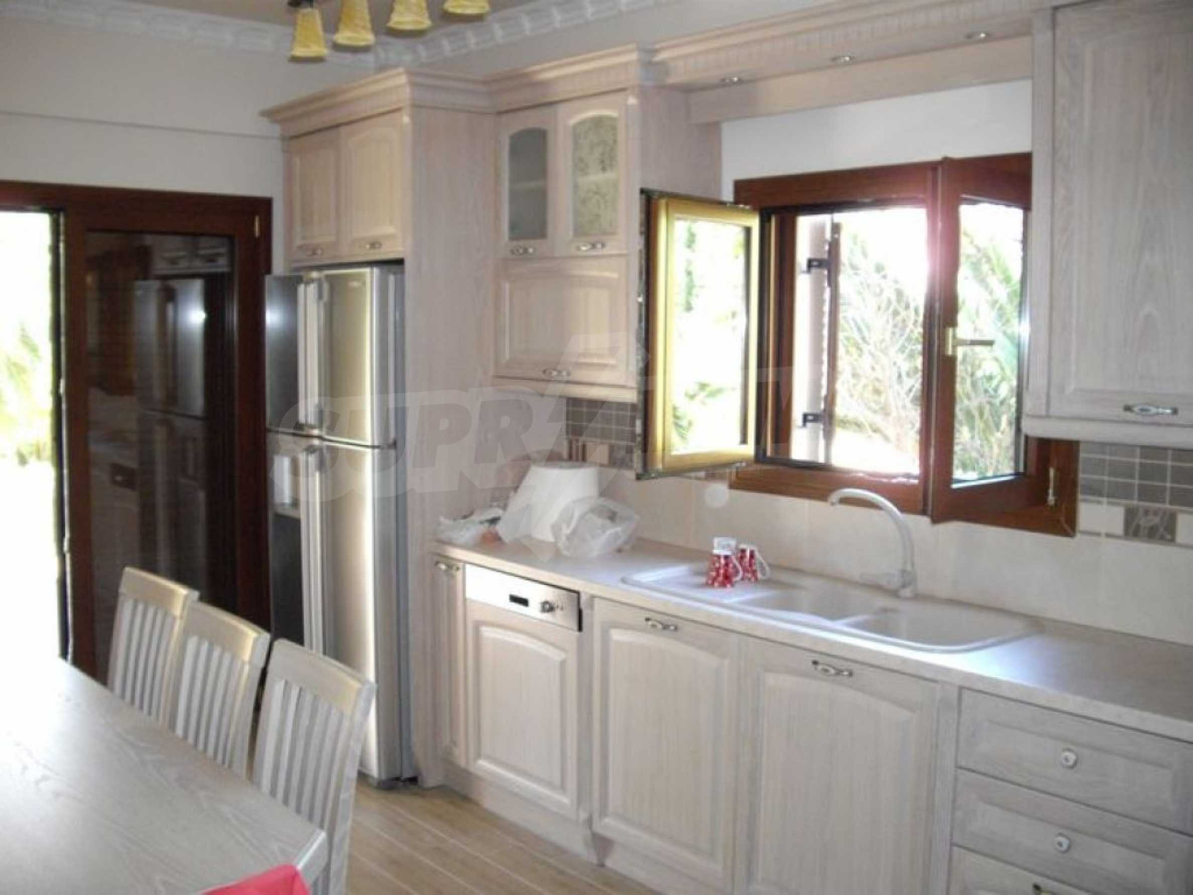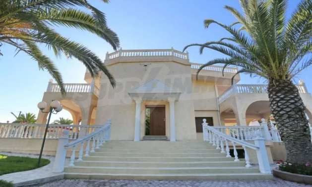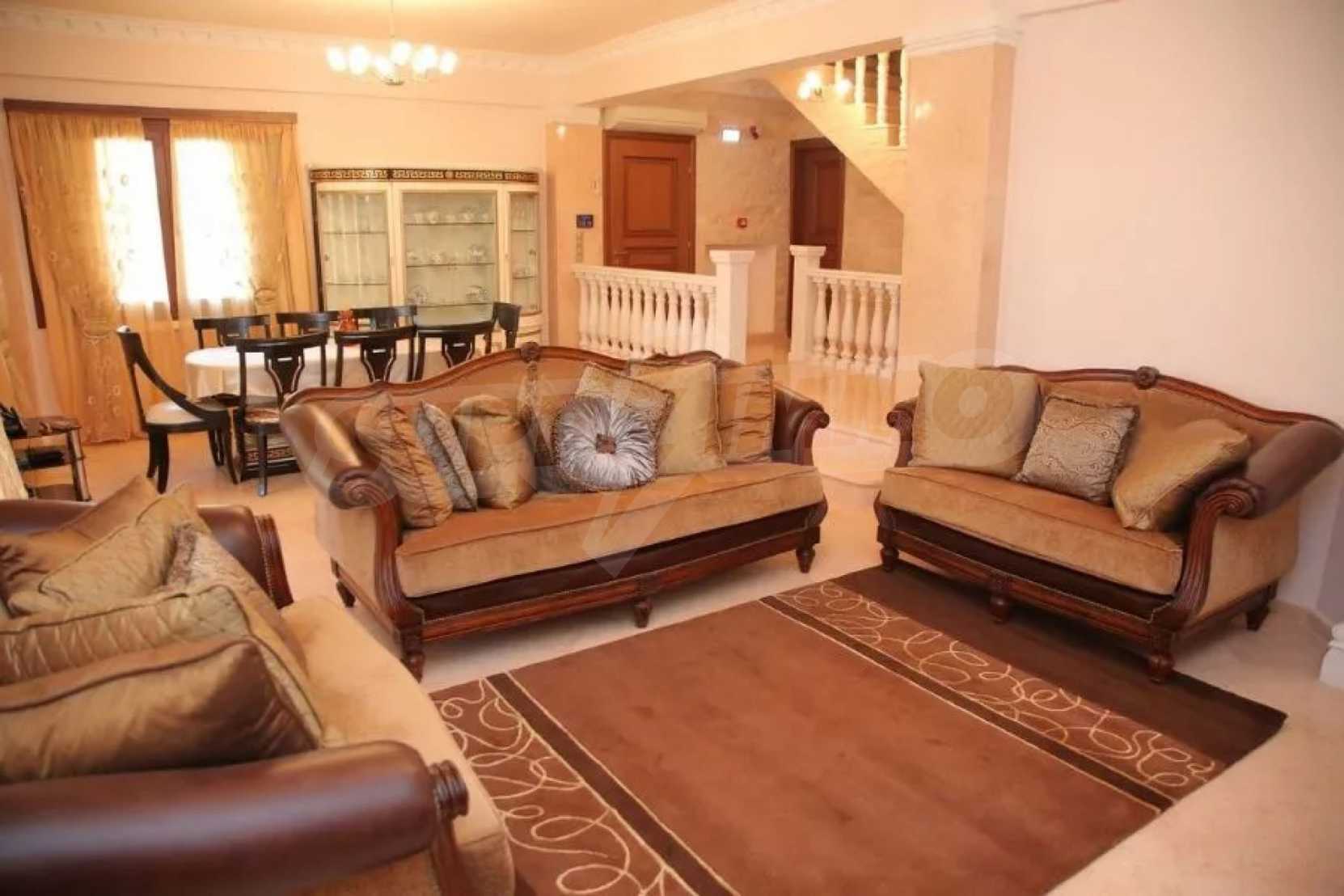 Предлагаме на вашето внимание вилa с площ 350 кв.м. Година на строителство: 2006. Отоплението се осъществява посредством камина, локално парно и слънчеви колектори. Има климатизация. Имотът се предлага със следната степен на завършеност: алуминиева дограма и блиндирана входна врата. Имотът е снабден с канализация. Важно е да се отбележи, че имотът разполага с: балкон, баня с тоалетна, гараж, килер, паркинг, джакузи и сот. От имота се разкрива гледка към морето.