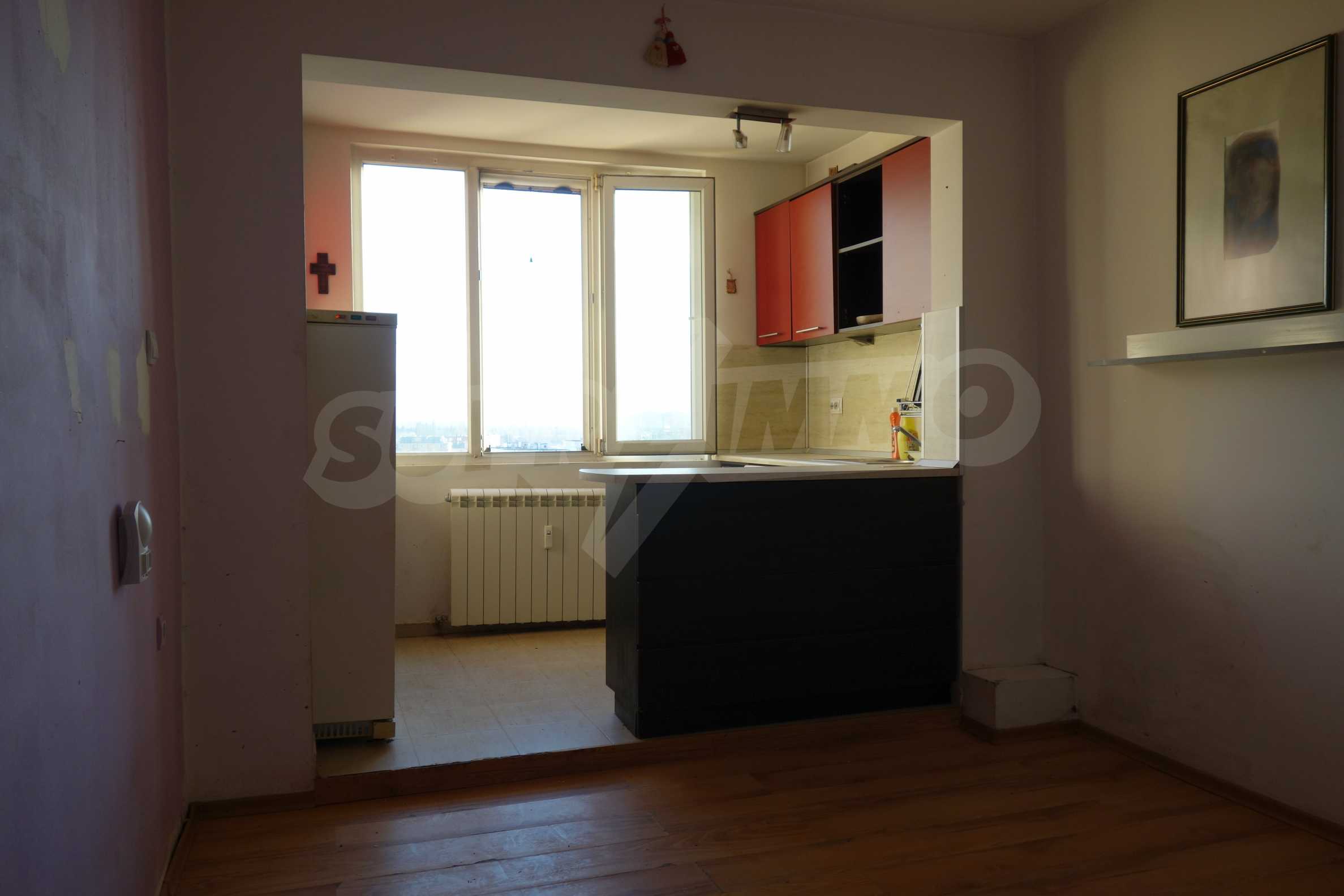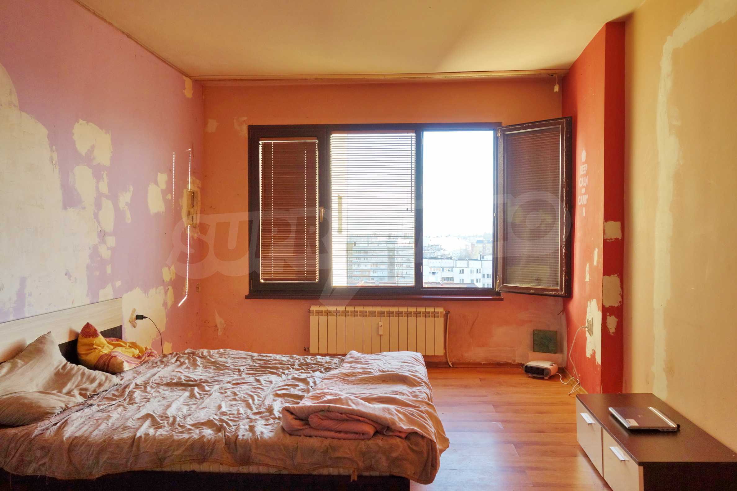 Жилището (53 кв.м.) със слънчево южно изложение се намира на 12/12 етаж в сграда, строена през 80-те години, с просторна гледка към столицата София и към планината. Апартаментът се състои от една голяма спалня/хол, която може да се ползва и за всекидневна и кухня с трапезария, антре, баня с тоалетна. Включва и мазе. Отоплението е с ТЕЦ. Препоръчваме освежителен ремонт и подходящо обзавеждане.