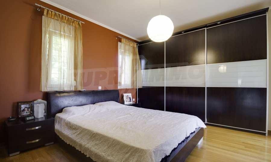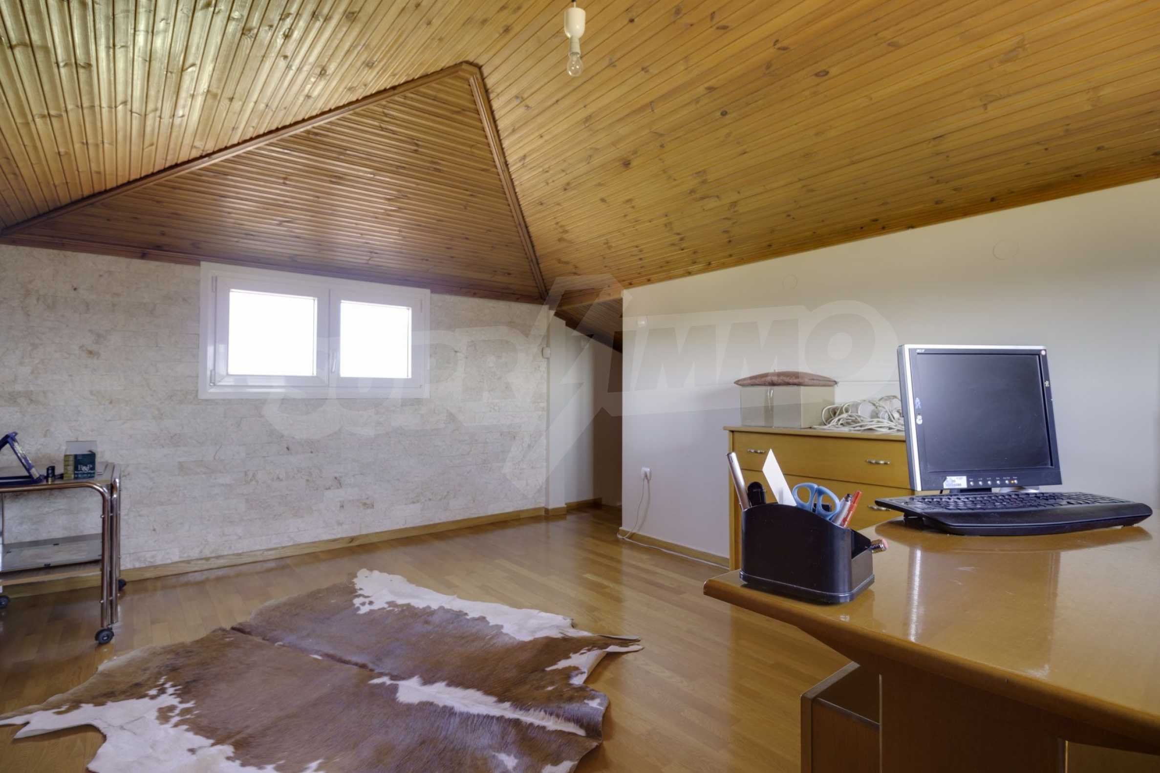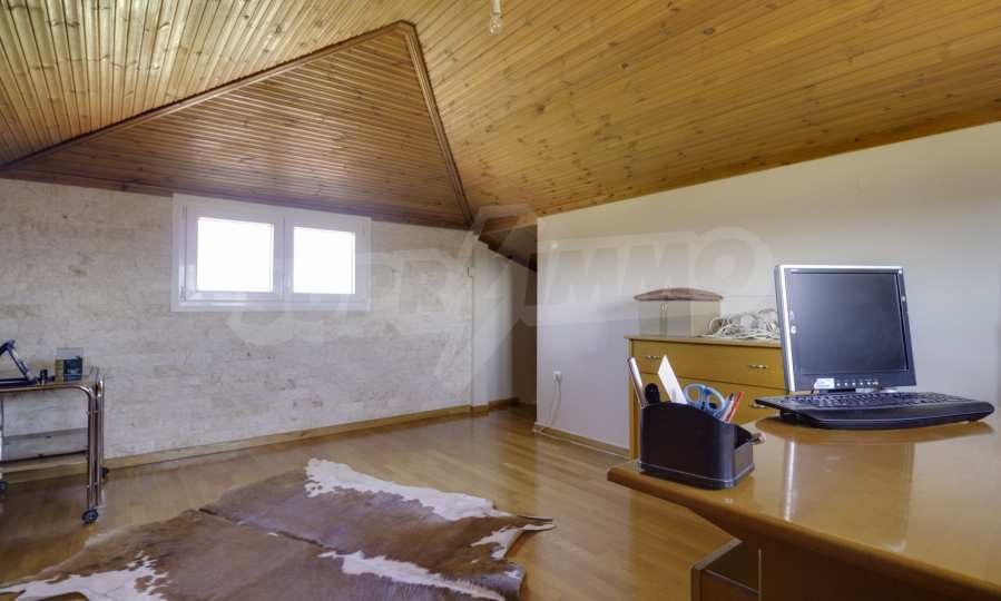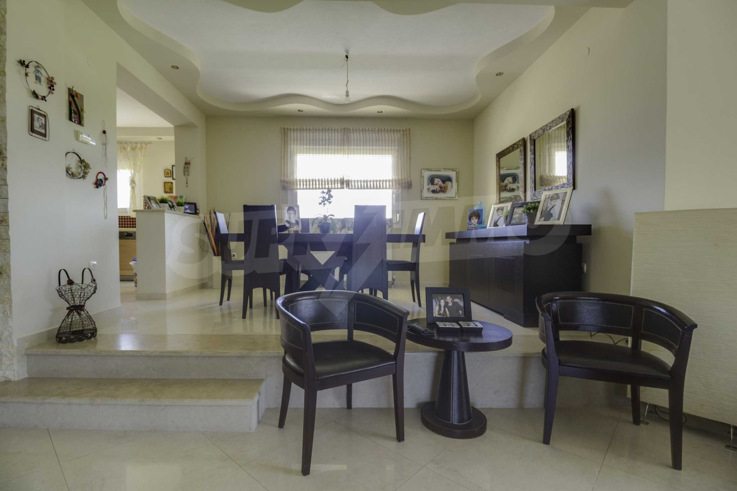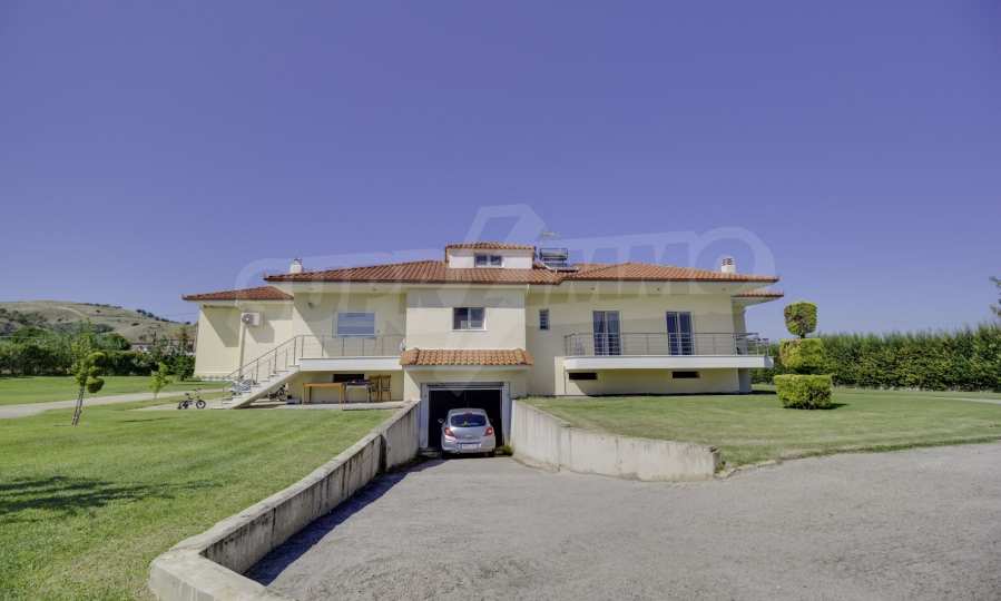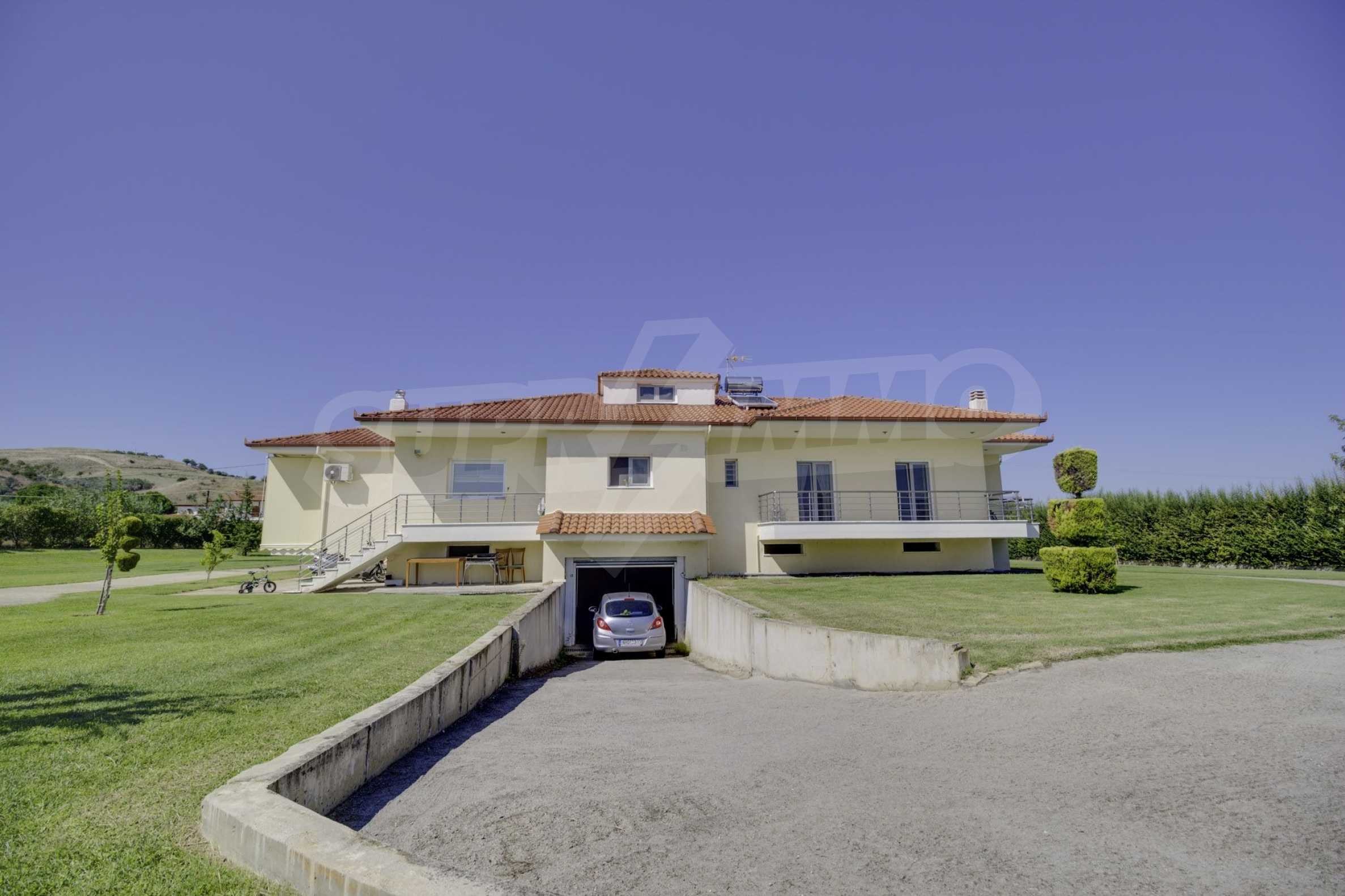 Предлагаме на вашето внимание къща с площ 375 кв.м. Година на строителство: 2006. Отоплението се осъществява посредством камина, локално парно и слънчеви колектори. Има климатизация. Имотът се предлага със следната степен на завършеност: блиндирана входна врата и подове с дюшеме. Имотът е снабден с собствен водоизточник и септична яма. Важно е да се отбележи, че имотът разполага с: балкон, баня с тоалетна, гараж, килер, мазе, паркинг, таванско помещение, джакузи и сот.