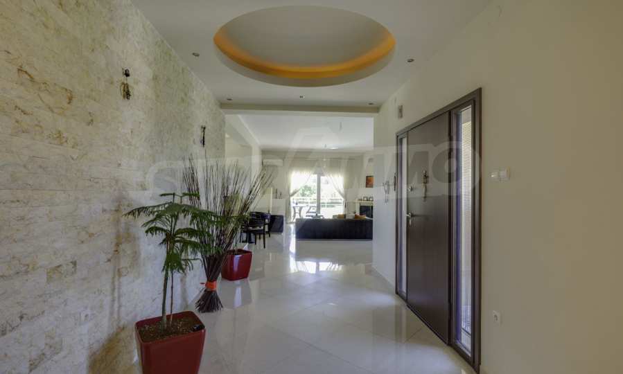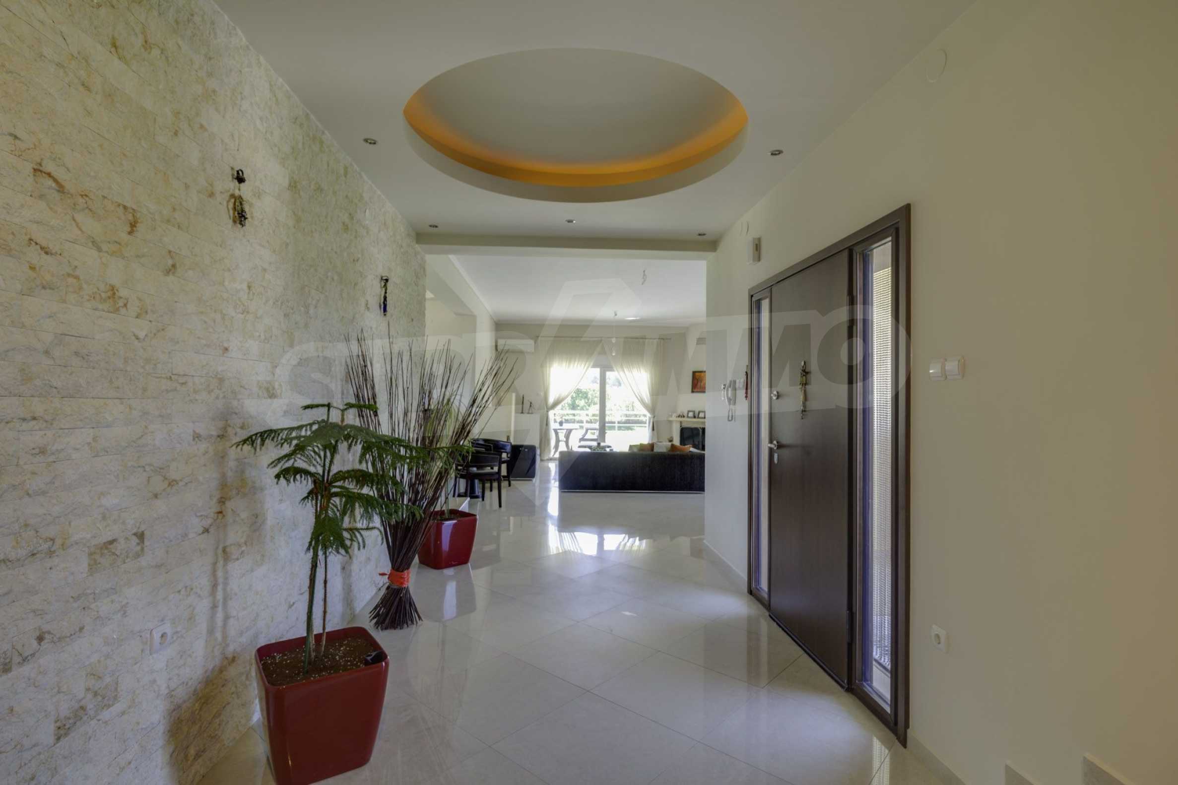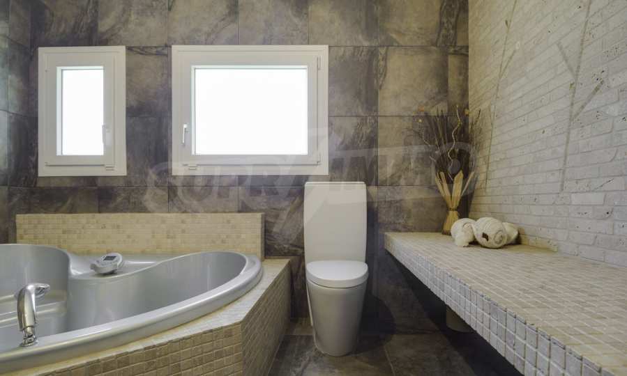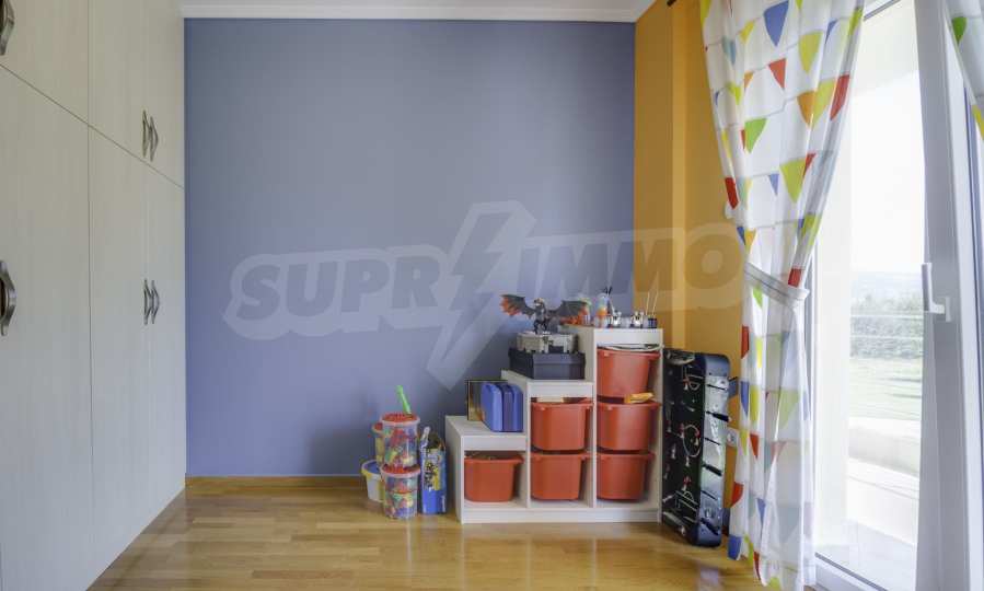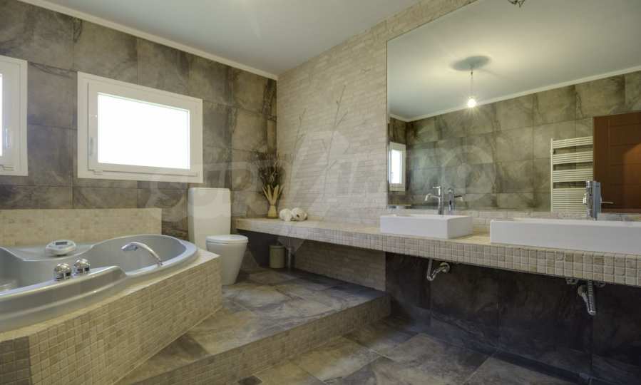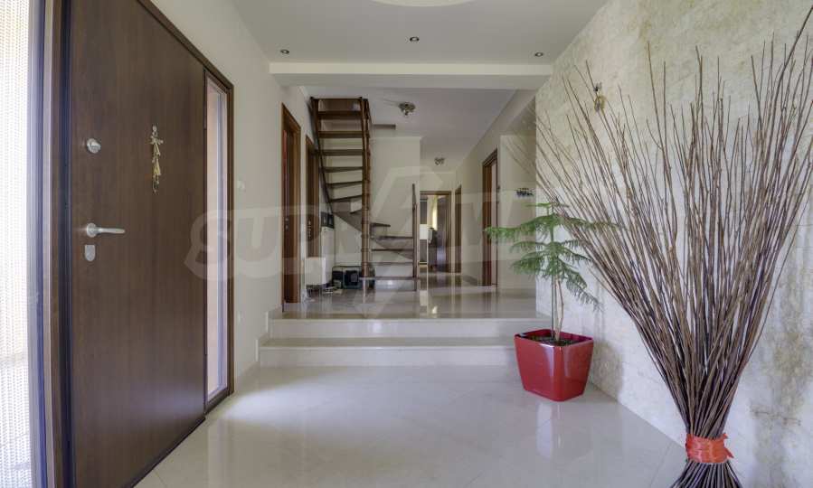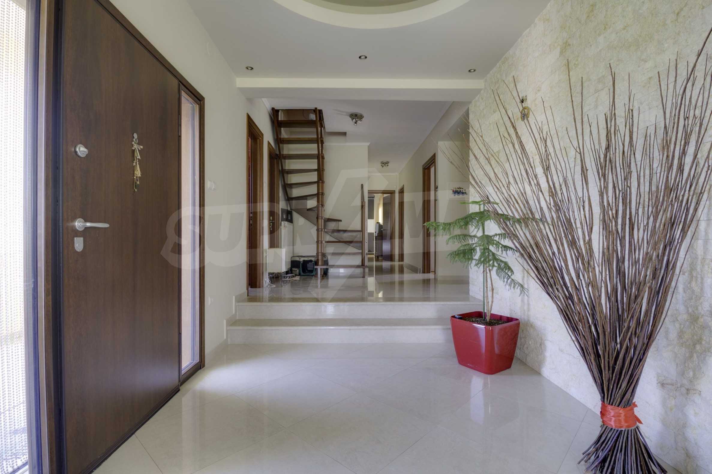 Предлагаме на вашето внимание къща с площ 375 кв.м. Година на строителство: 2006. Отоплението се осъществява посредством камина, локално парно и слънчеви колектори. Има климатизация. Имотът се предлага със следната степен на завършеност: блиндирана входна врата и подове с дюшеме. Имотът е снабден с собствен водоизточник и септична яма. Важно е да се отбележи, че имотът разполага с: балкон, баня с тоалетна, гараж, килер, мазе, паркинг, таванско помещение, джакузи и сот.