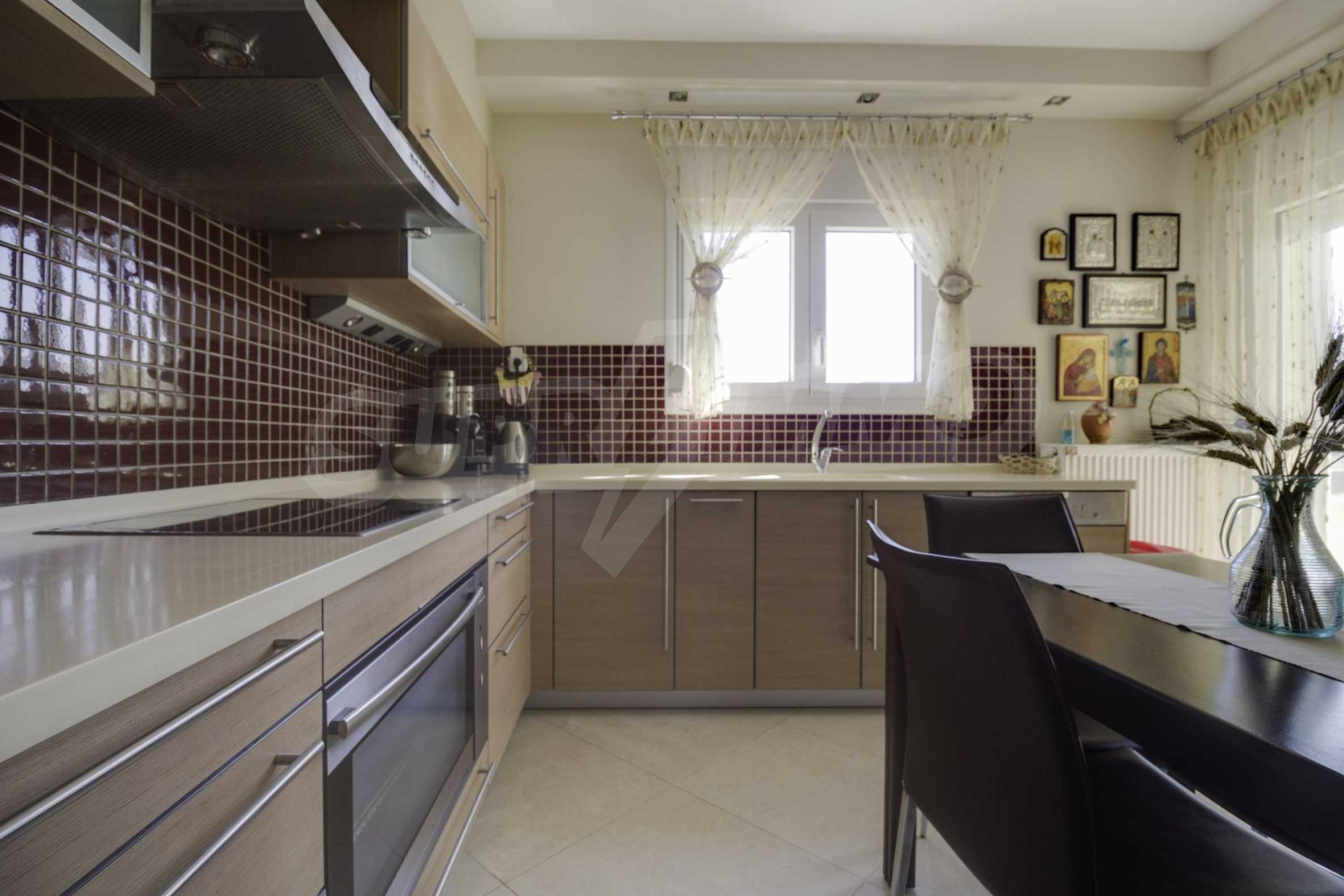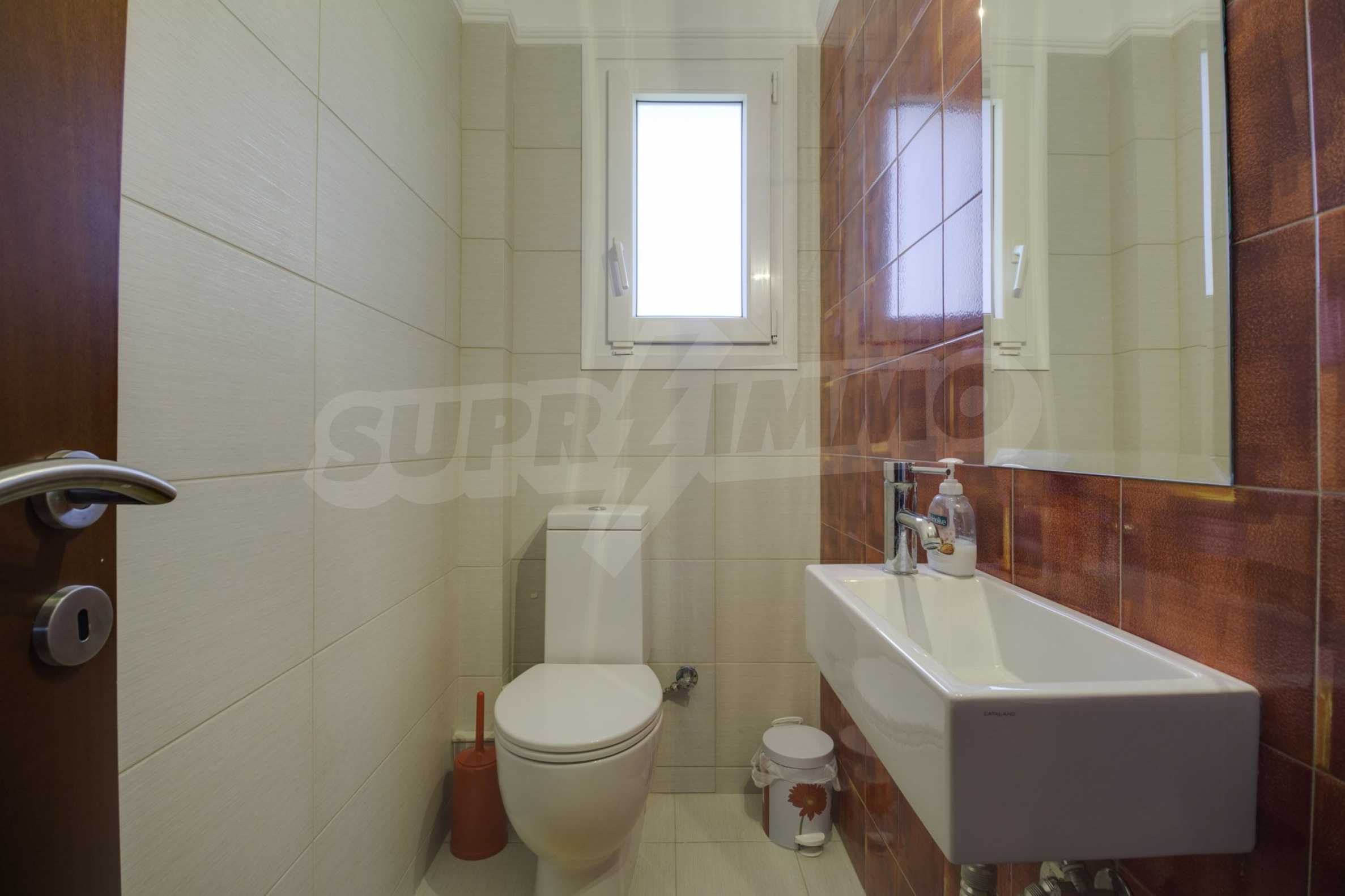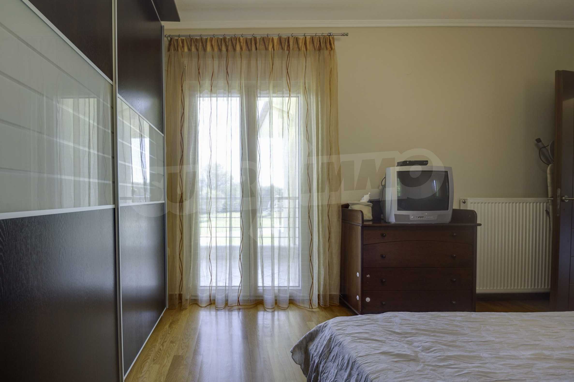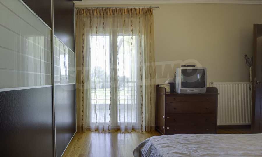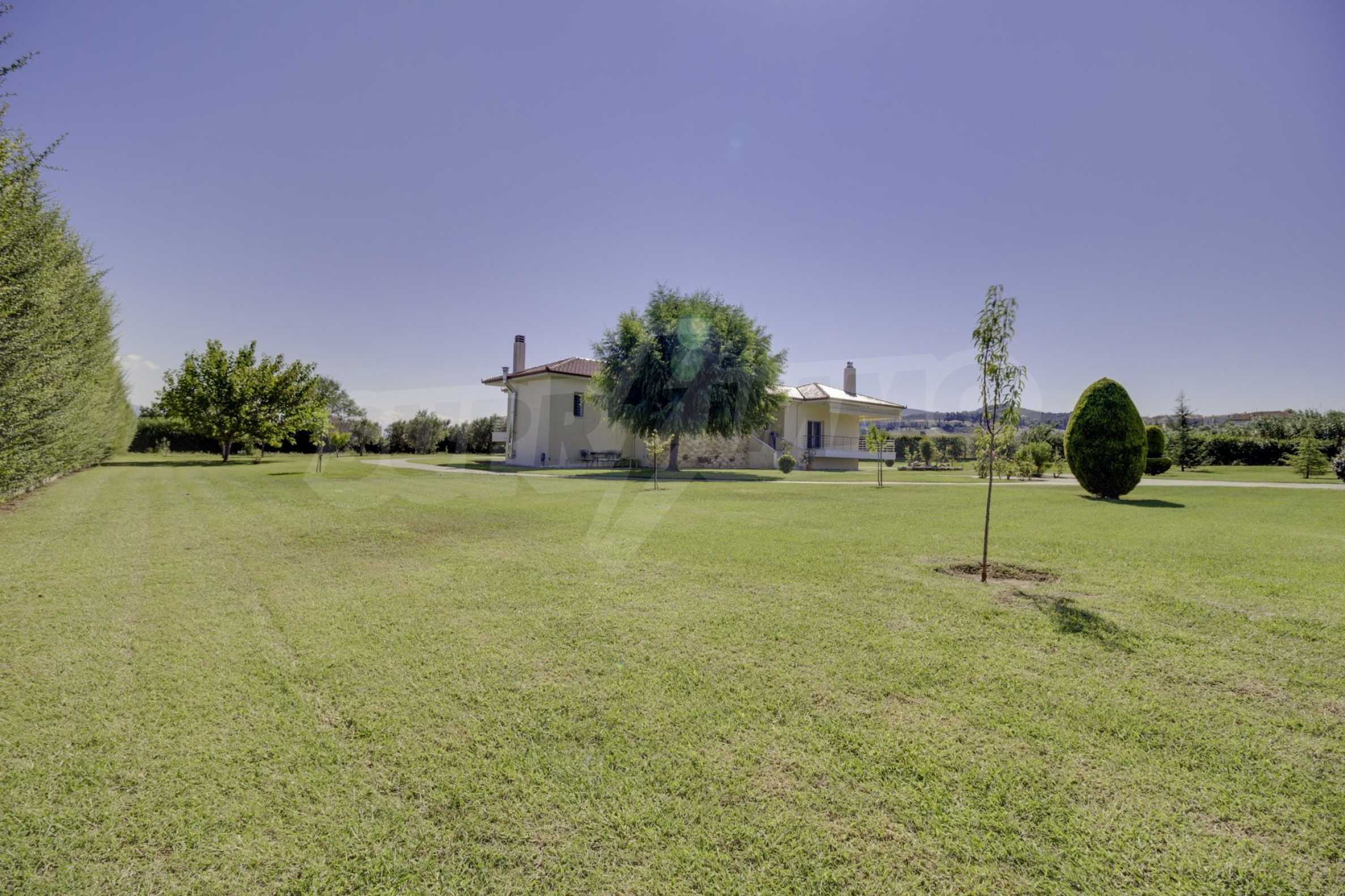 Предлагаме на вашето внимание къща с площ 375 кв.м. Година на строителство: 2006. Отоплението се осъществява посредством камина, локално парно и слънчеви колектори. Има климатизация. Имотът се предлага със следната степен на завършеност: блиндирана входна врата и подове с дюшеме. Имотът е снабден с собствен водоизточник и септична яма. Важно е да се отбележи, че имотът разполага с: балкон, баня с тоалетна, гараж, килер, мазе, паркинг, таванско помещение, джакузи и сот.