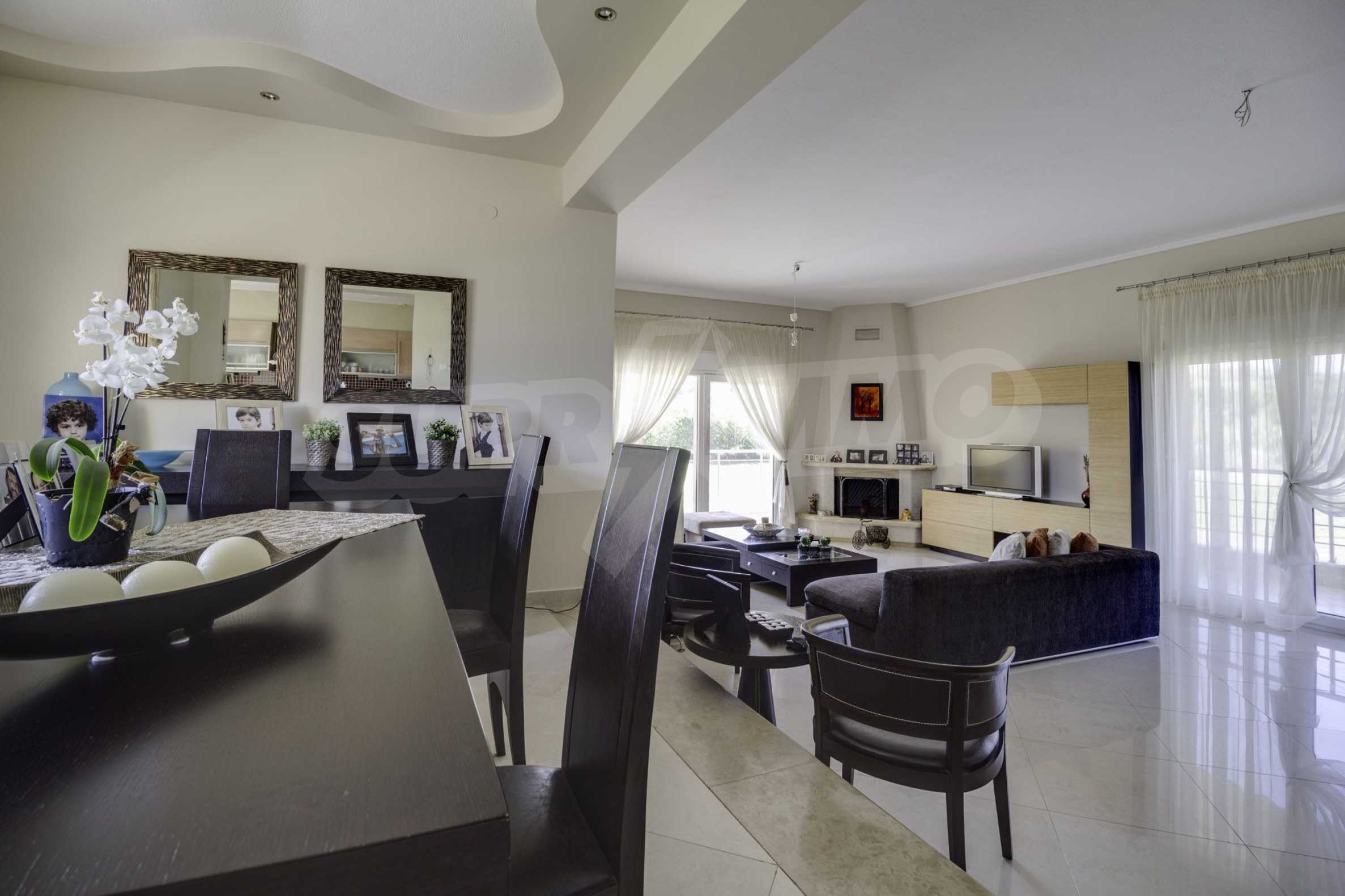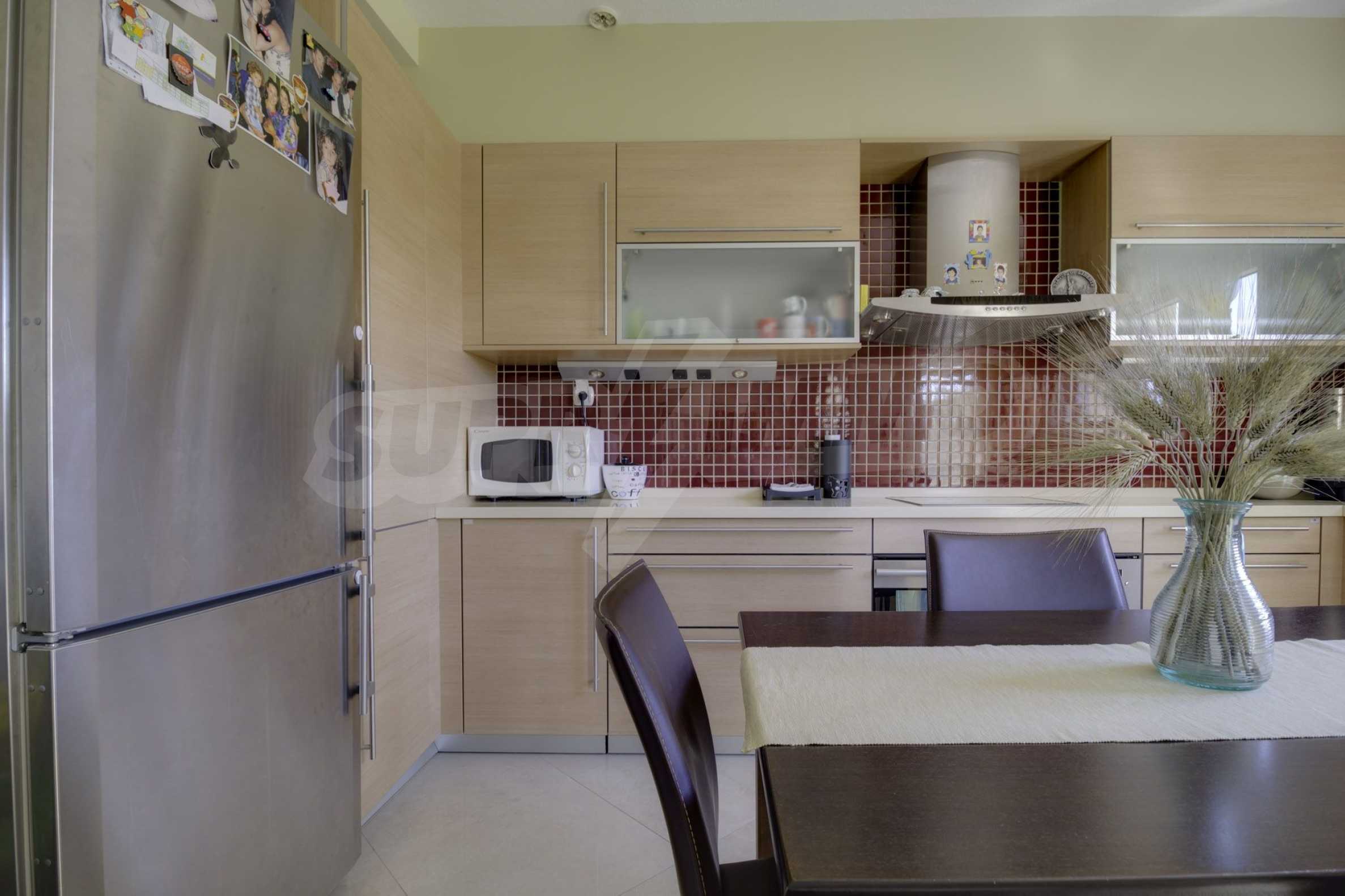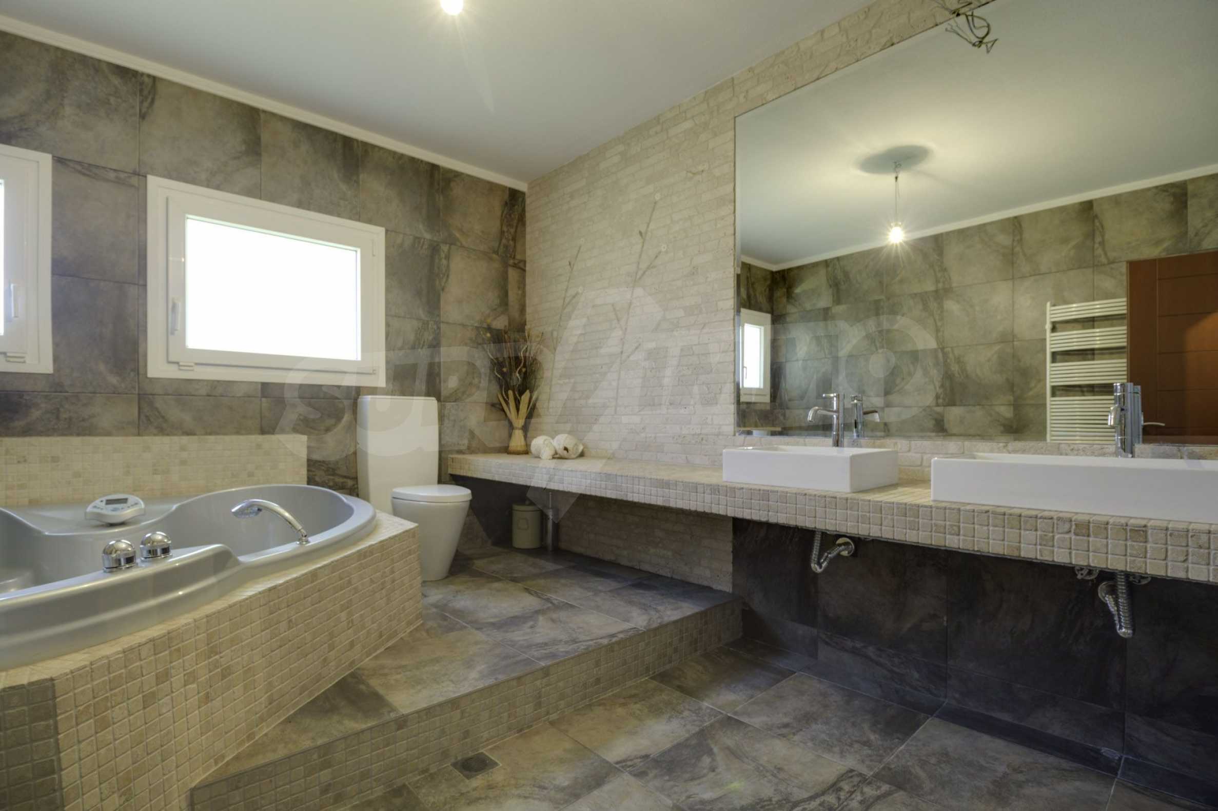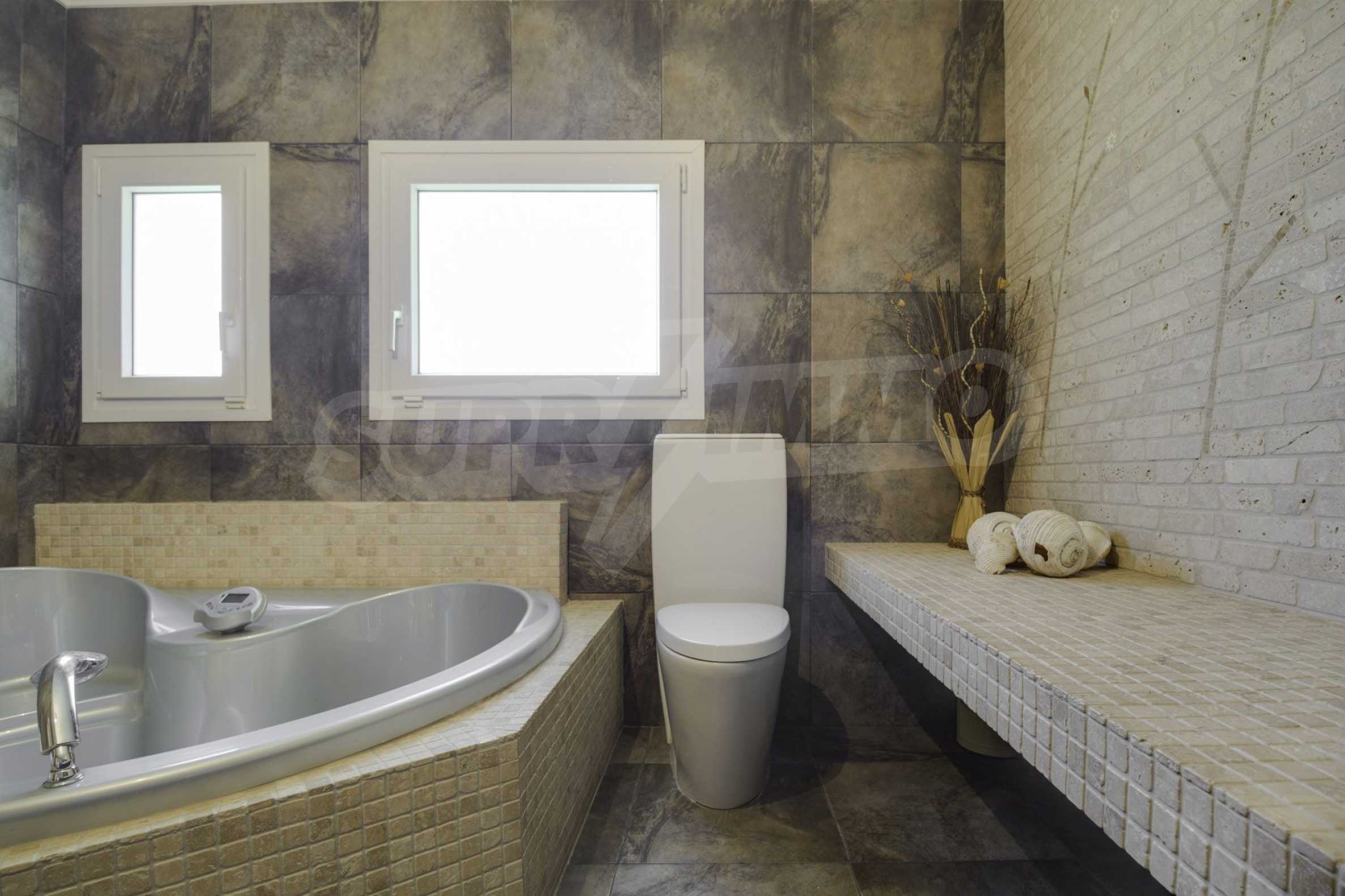 Предлагаме на вашето внимание къща с площ 375 кв.м. Година на строителство: 2006. Отоплението се осъществява посредством камина, локално парно и слънчеви колектори. Има климатизация. Имотът се предлага със следната степен на завършеност: блиндирана входна врата и подове с дюшеме. Имотът е снабден с собствен водоизточник и септична яма. Важно е да се отбележи, че имотът разполага с: балкон, баня с тоалетна, гараж, килер, мазе, паркинг, таванско помещение, джакузи и сот.