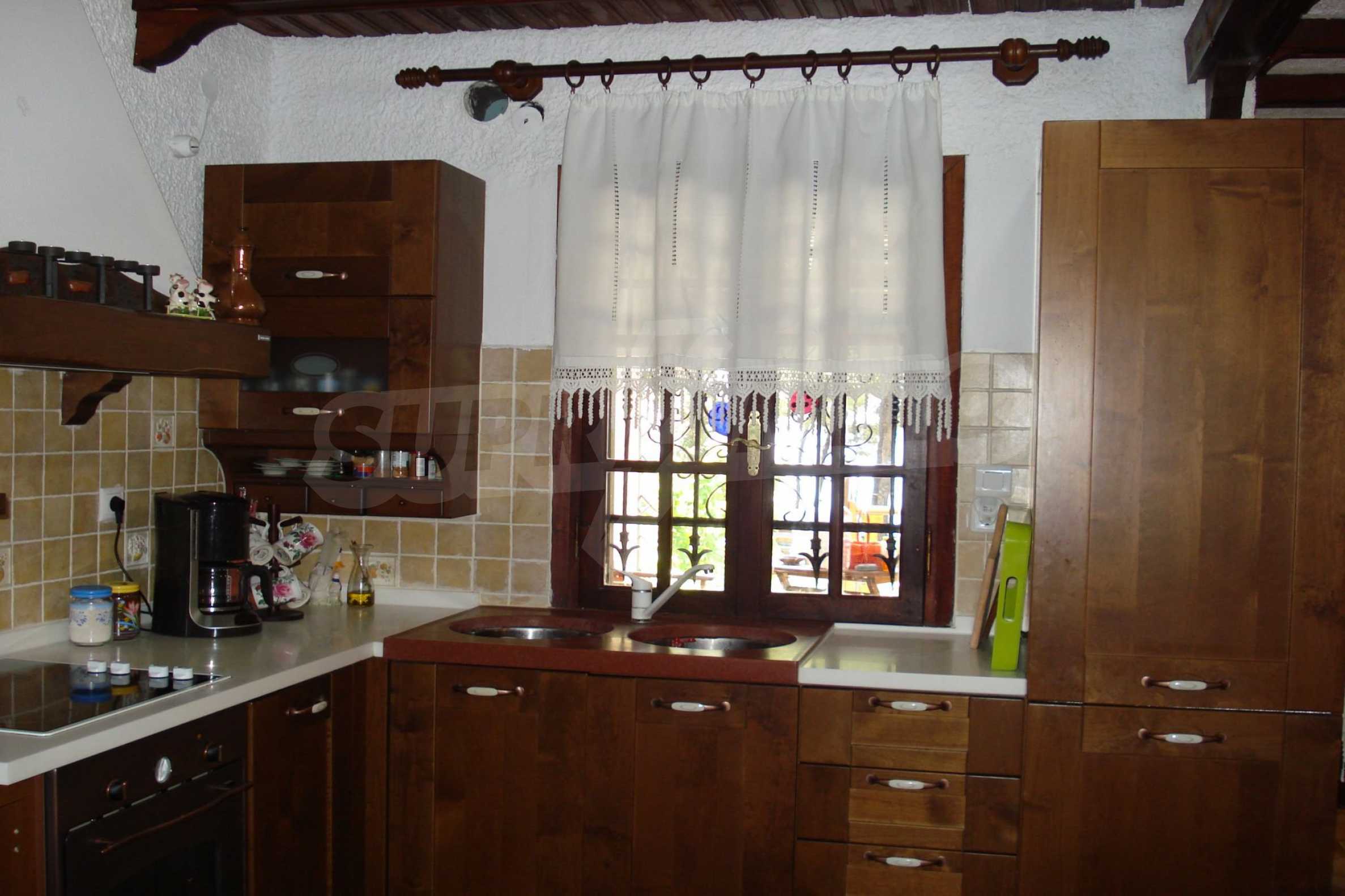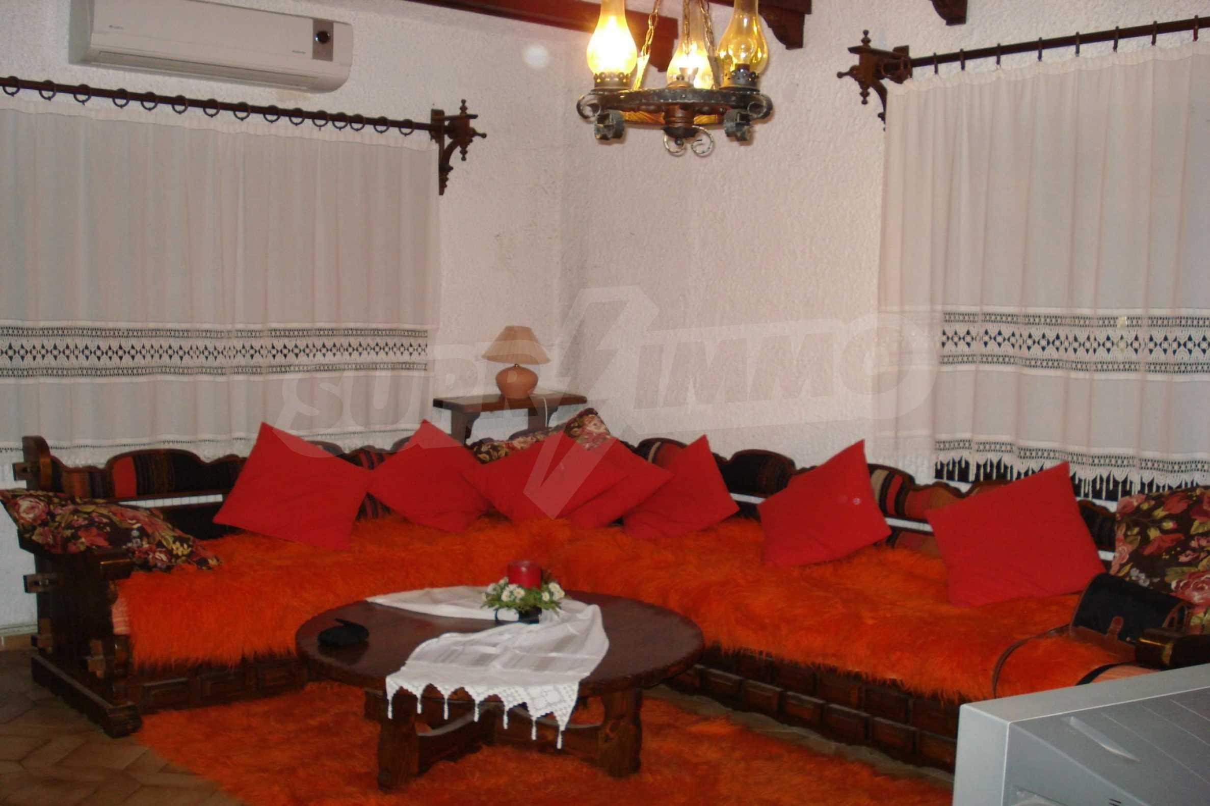 Предлагаме на вашето внимание къща с площ 140 кв.м. Година на строителство: 1982. Отоплението се осъществява посредством камина, локално парно и слънчеви колектори. Има климатизация. Имотът се предлага със следната степен на завършеност: дървена дограма. Имотът е снабден с септична яма. Важно е да се отбележи, че имотът разполага с: балкон, баня с тоалетна и паркинг. От имота се разкрива гледка към морето.
