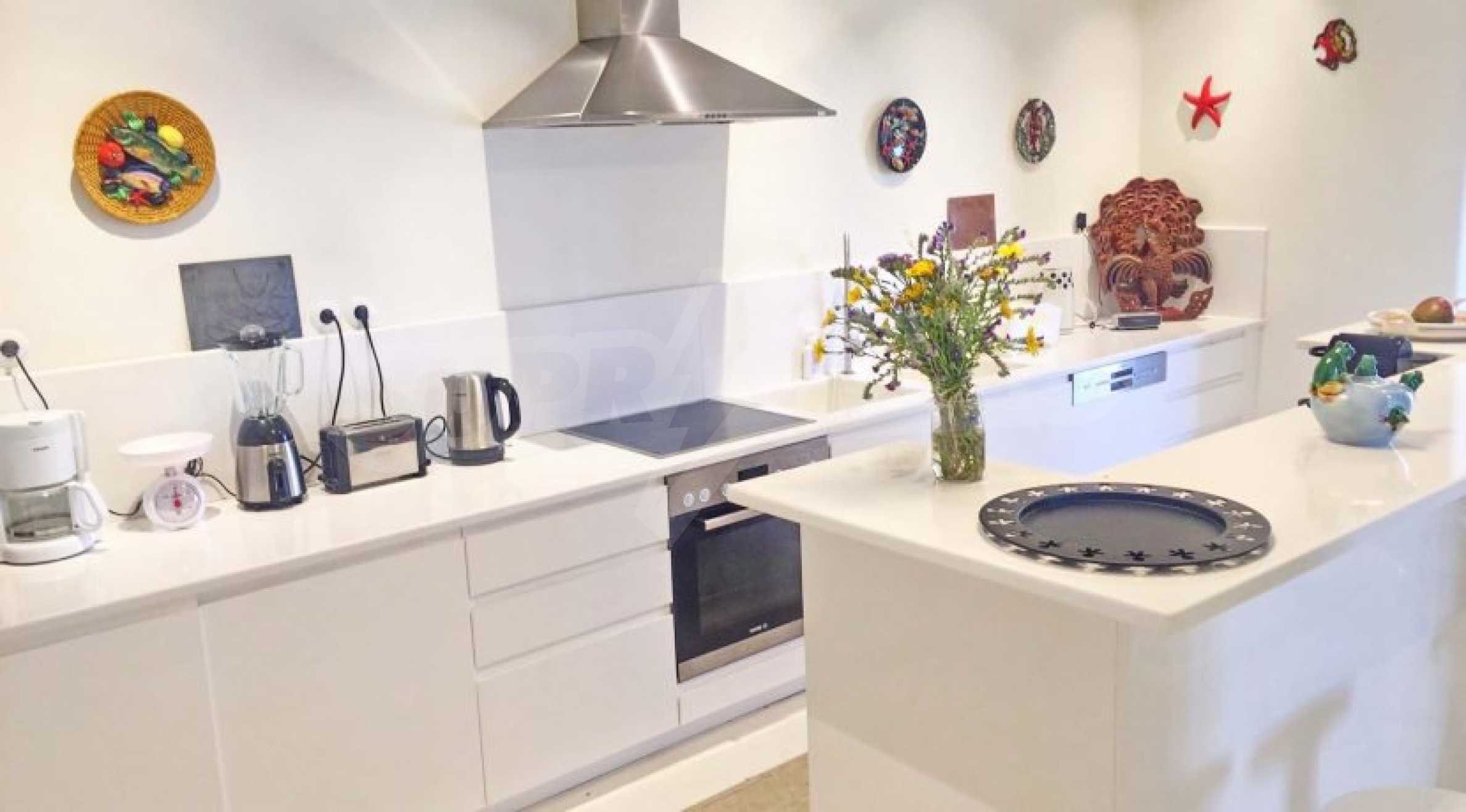 •Съвременна напълно оборудвана кухня, бар с морски изглед.