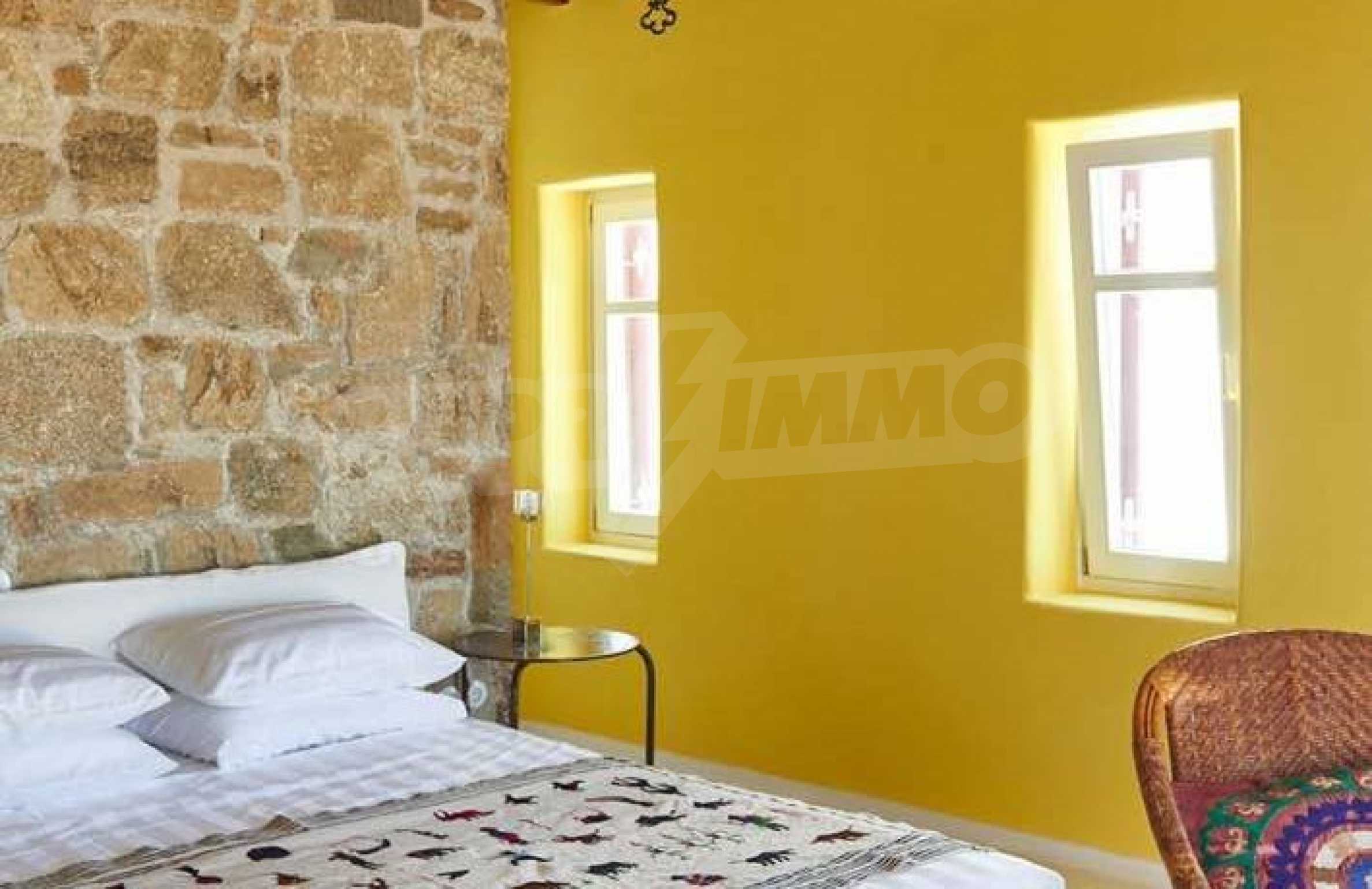 •СТАЯ 3: двойно легло 160 см, баня с душ кабина, камина, климатик, телевизор с плосък екран, изглед към морето, югоизточно изложение, самостоятелна тераса и градината.