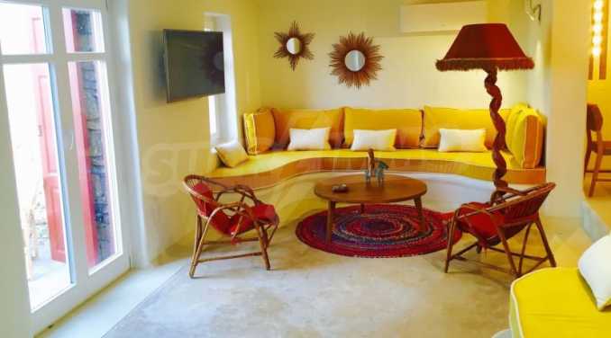 •СТАЯ 5: основна спалня, двойно легло king size 180 см, баня с вана, дневна, климатик, телевизор с плосък екран, изглед към морето, южно изложение, самостоятелна тераса.