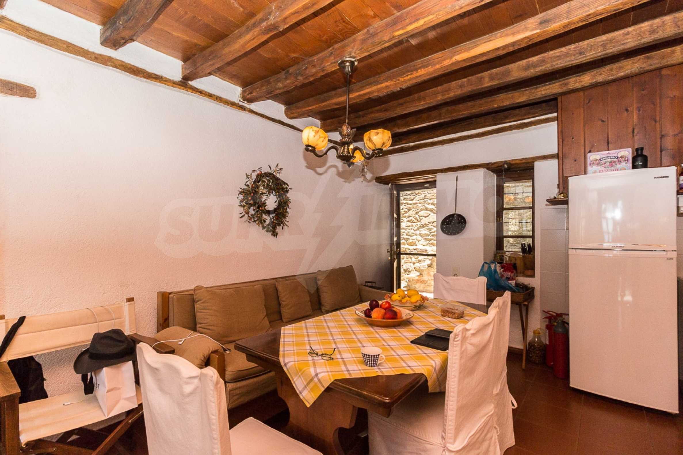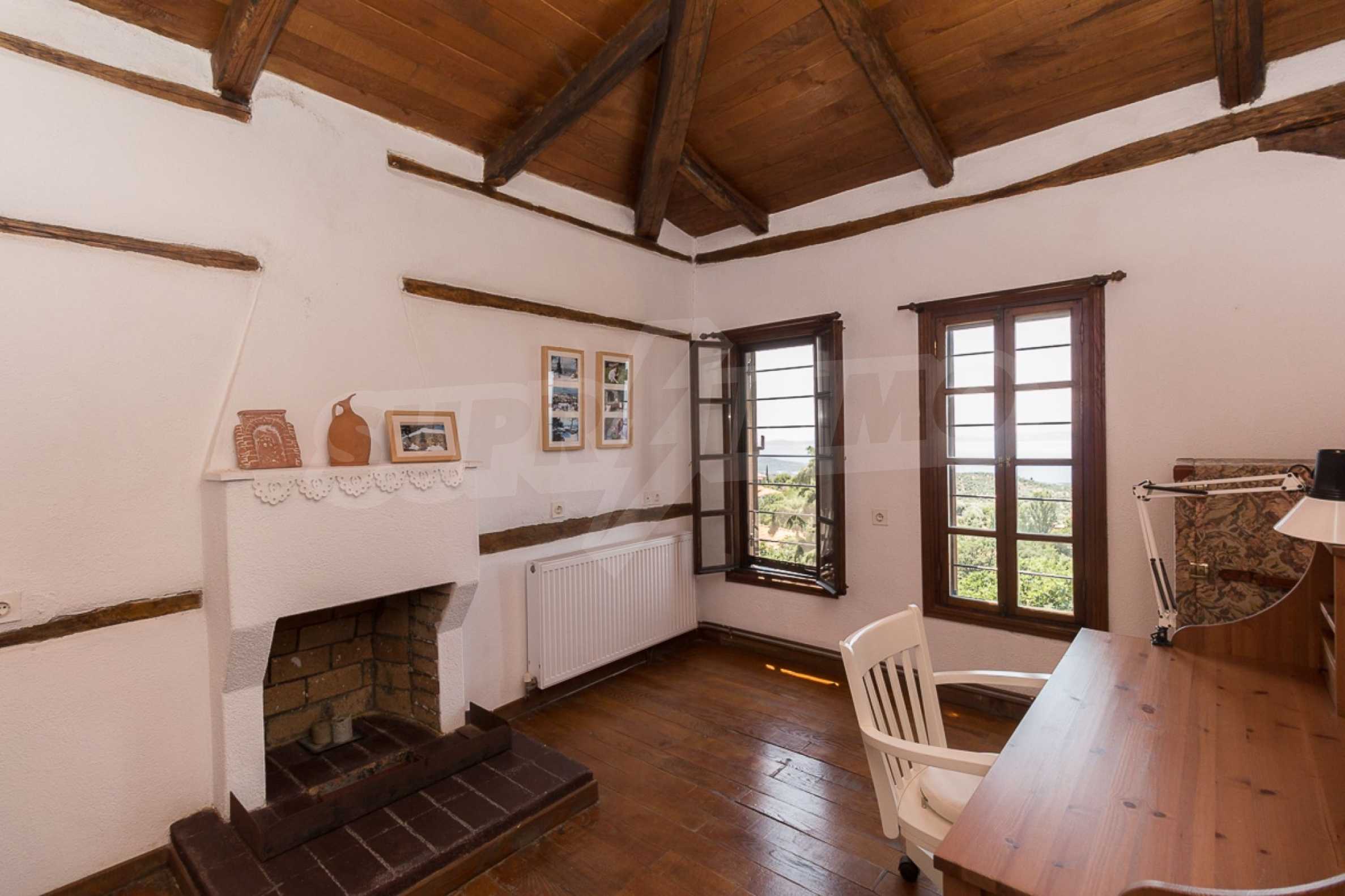 Предлагаме на вашето внимание къща с площ 400 кв.м. Година на строителство: 1977. Отоплението се осъществява посредством камина и локално парно. Има климатизация. Имотът се предлага със следната степен на завършеност: дървена дограма и подове с дюшеме. Имотът е снабден с септична яма. Важно е да се отбележи, че имотът разполага с: баня с тоалетна, килер и паркинг. От имота се разкрива гледка към морето.