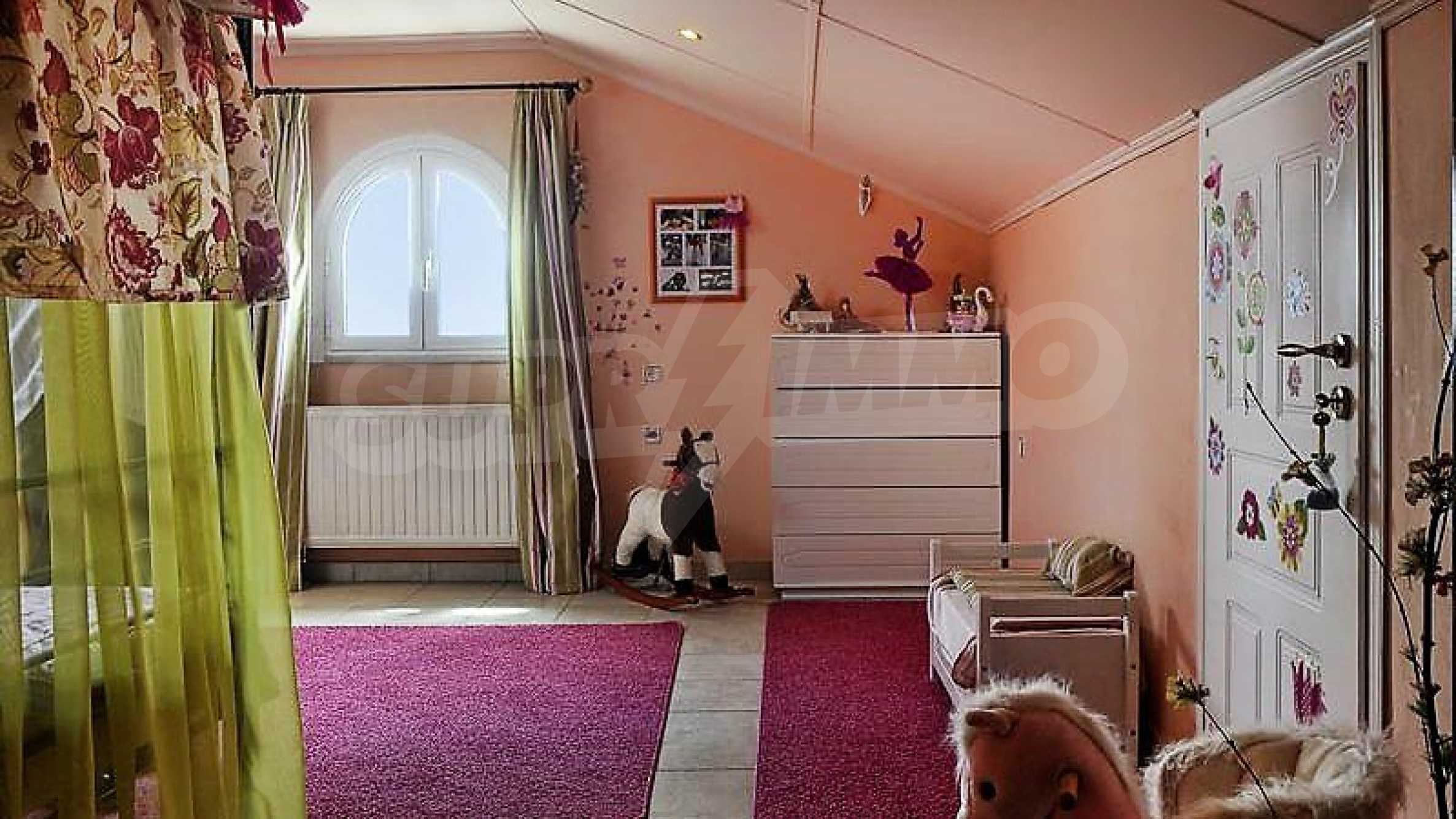 Обширен дом на две нива с площ 605 кв.м! С веранда и градина, прекрасно място за вечери на открито, барбекю парти и слънчеви бани. Всички стаи имат изобилие от пространство и гледка към градината.