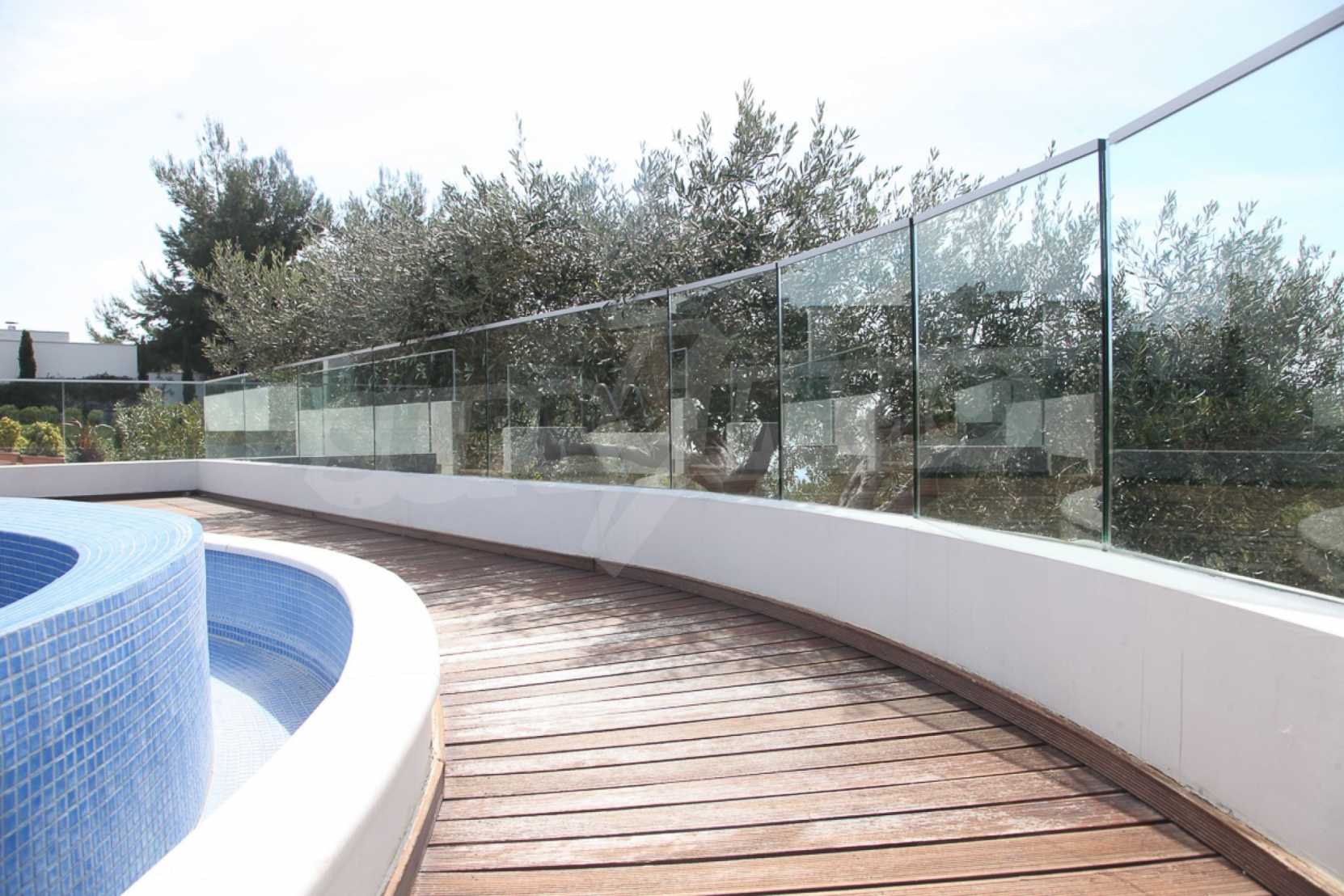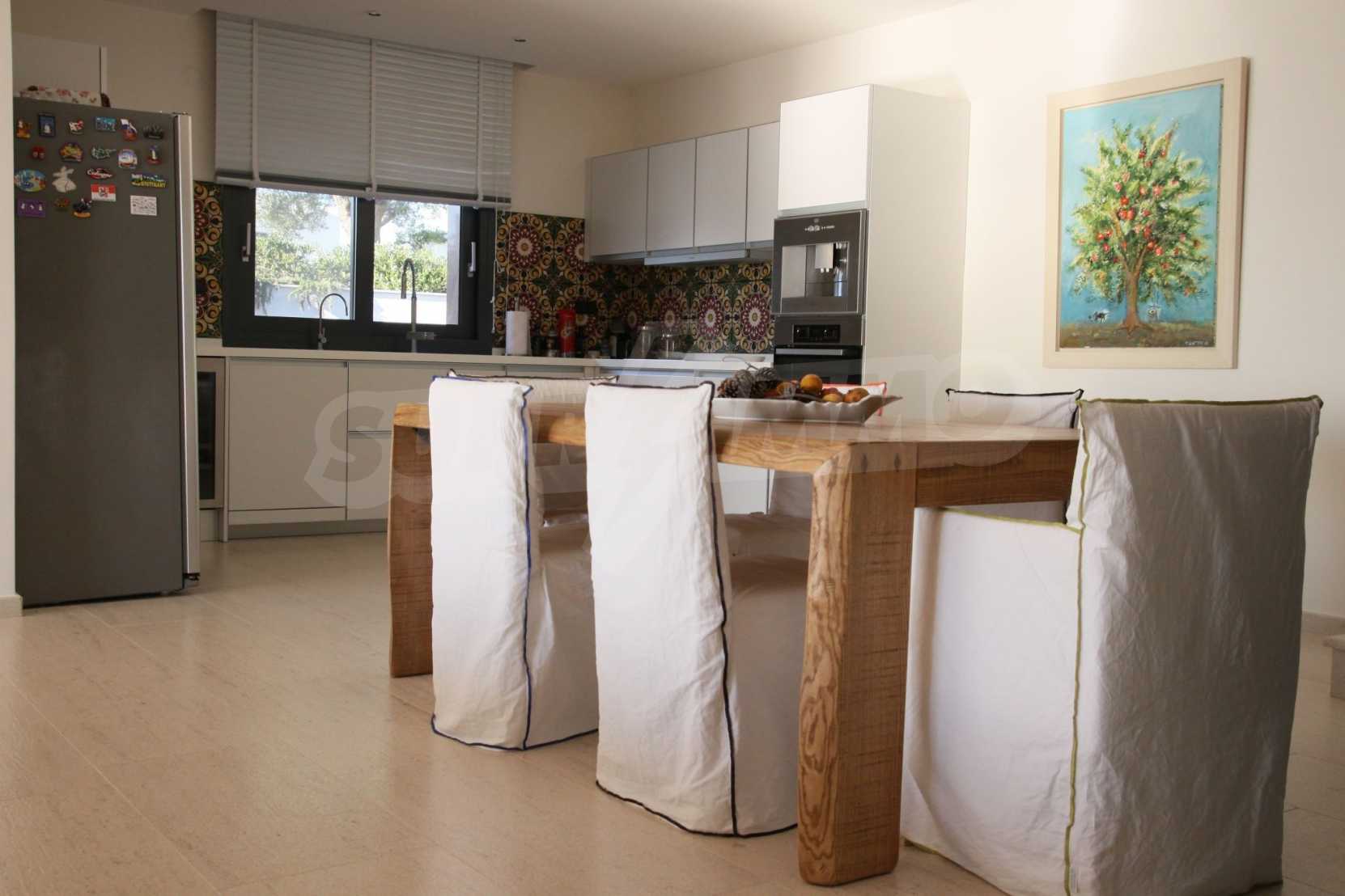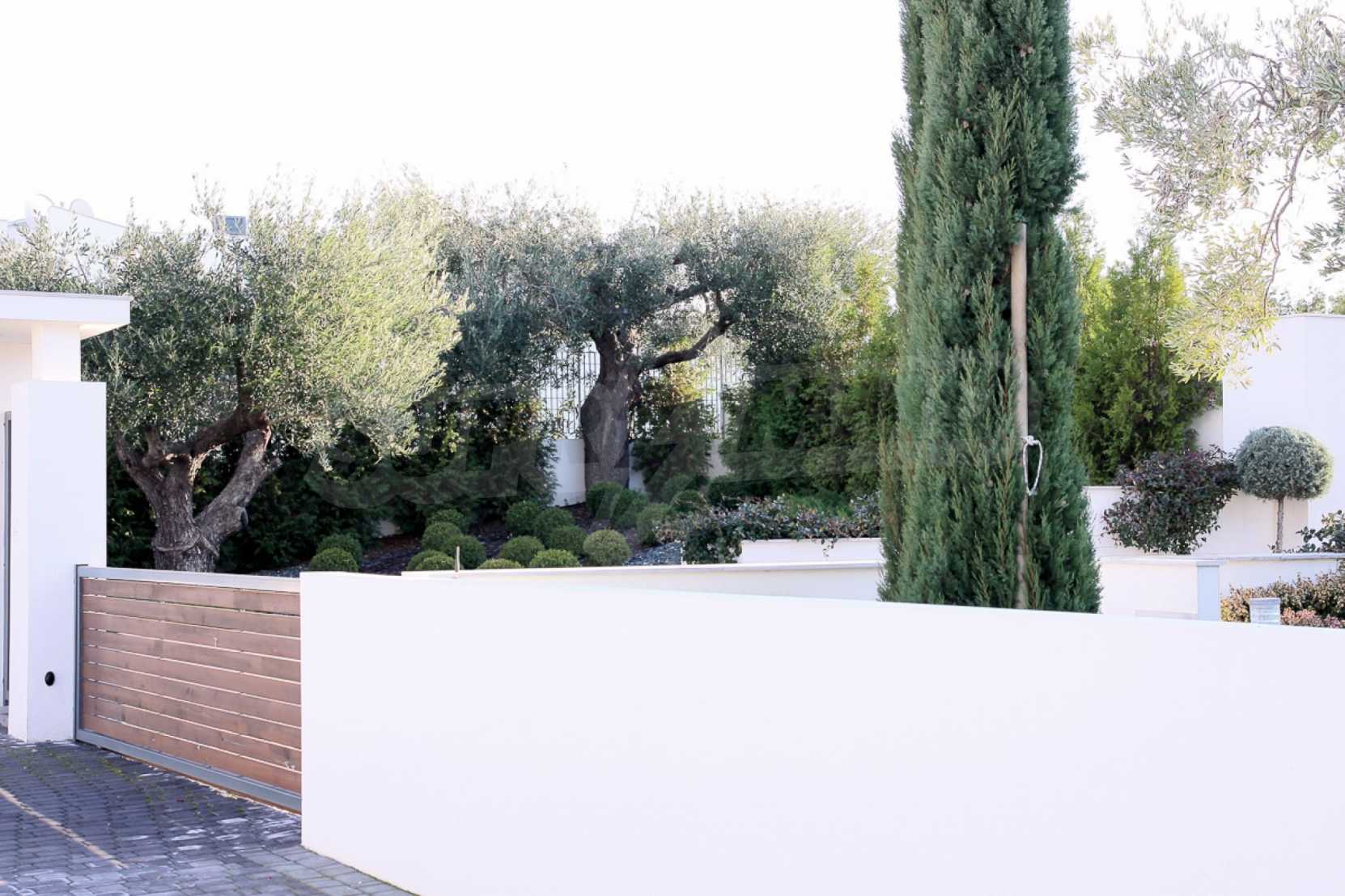 Предлагаме на вашето внимание вилa с площ 300 кв.м. Година на строителство: 2017. Отоплението се осъществява посредством локално парно. Имотът се предлага със следната степен на завършеност: алуминиева дограма. Имотът е снабден с канализация. Важно е да се отбележи, че имотът разполага с: баня с тоалетна, гараж, килер, мазе, паркинг и басейн. От имота се разкрива гледка към морето.