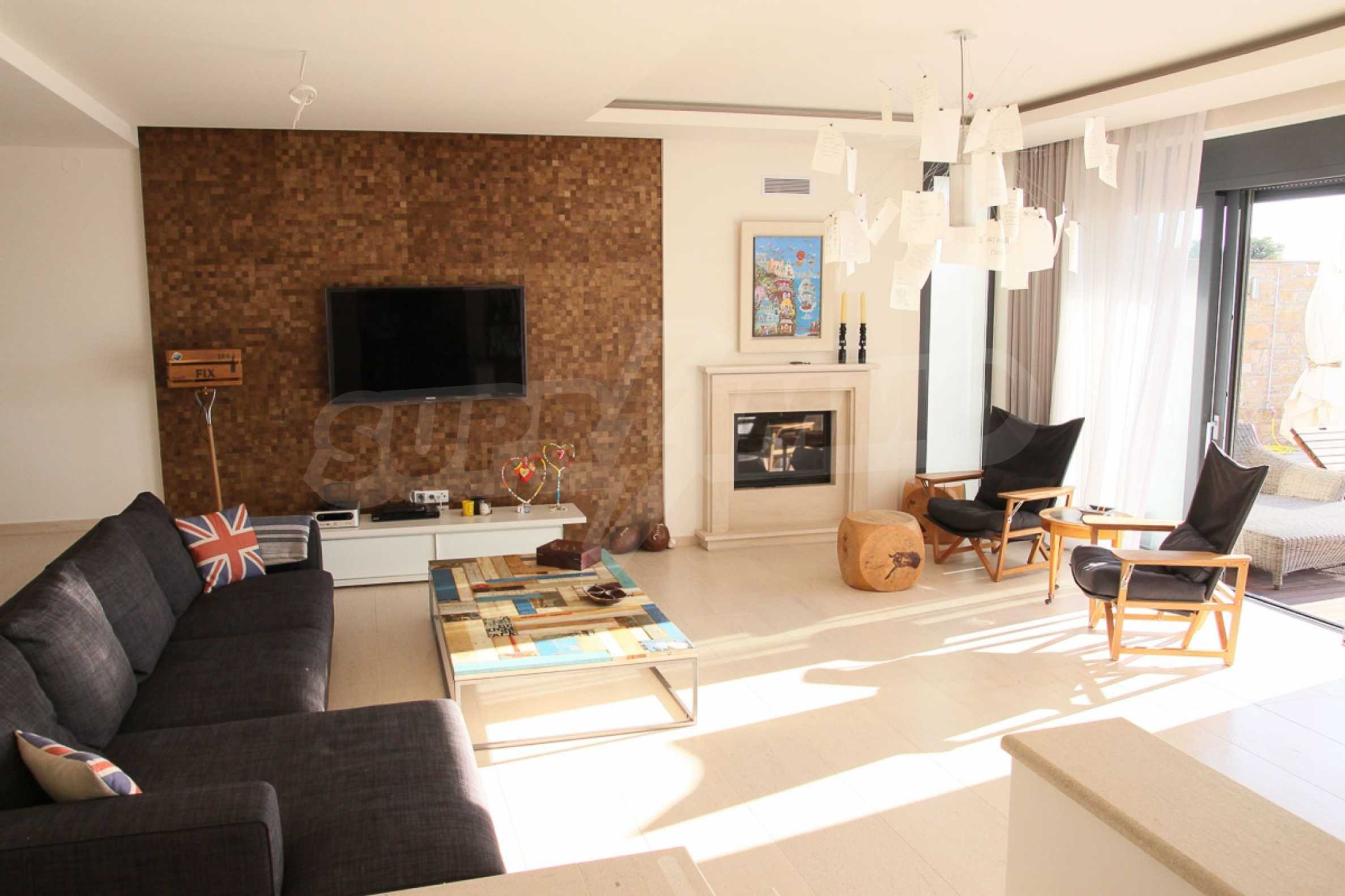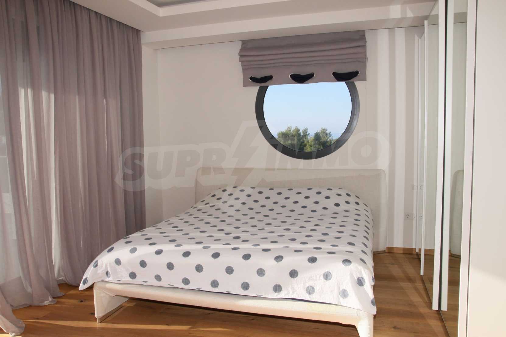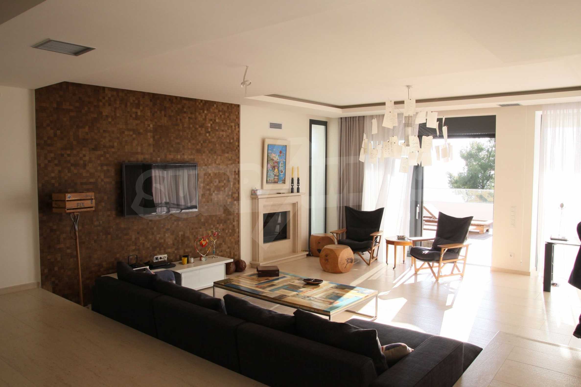 Предлагаме на вашето внимание вилa с площ 300 кв.м. Година на строителство: 2017. Отоплението се осъществява посредством локално парно. Имотът се предлага със следната степен на завършеност: алуминиева дограма. Имотът е снабден с канализация. Важно е да се отбележи, че имотът разполага с: баня с тоалетна, гараж, килер, мазе, паркинг и басейн. От имота се разкрива гледка към морето.